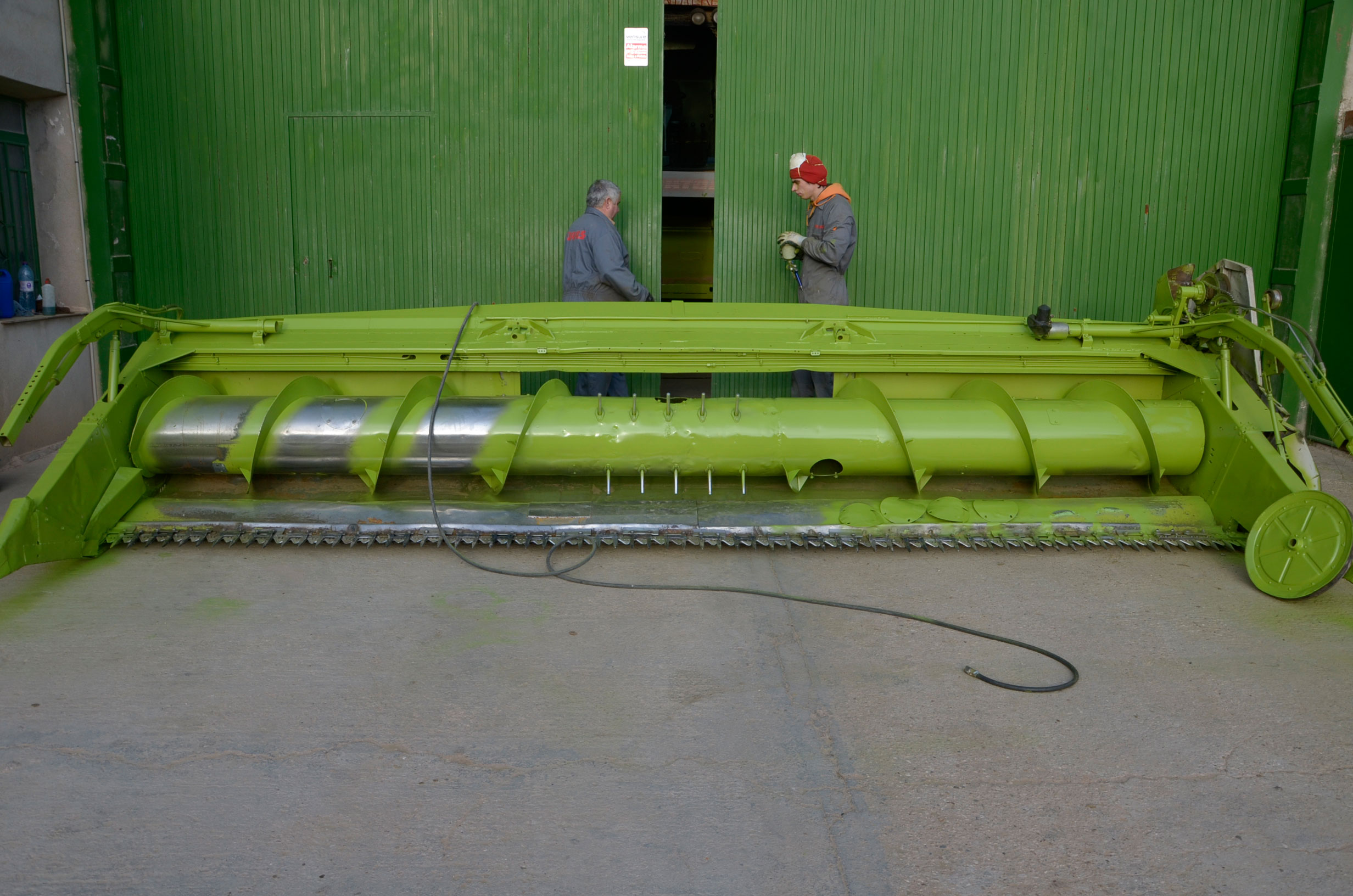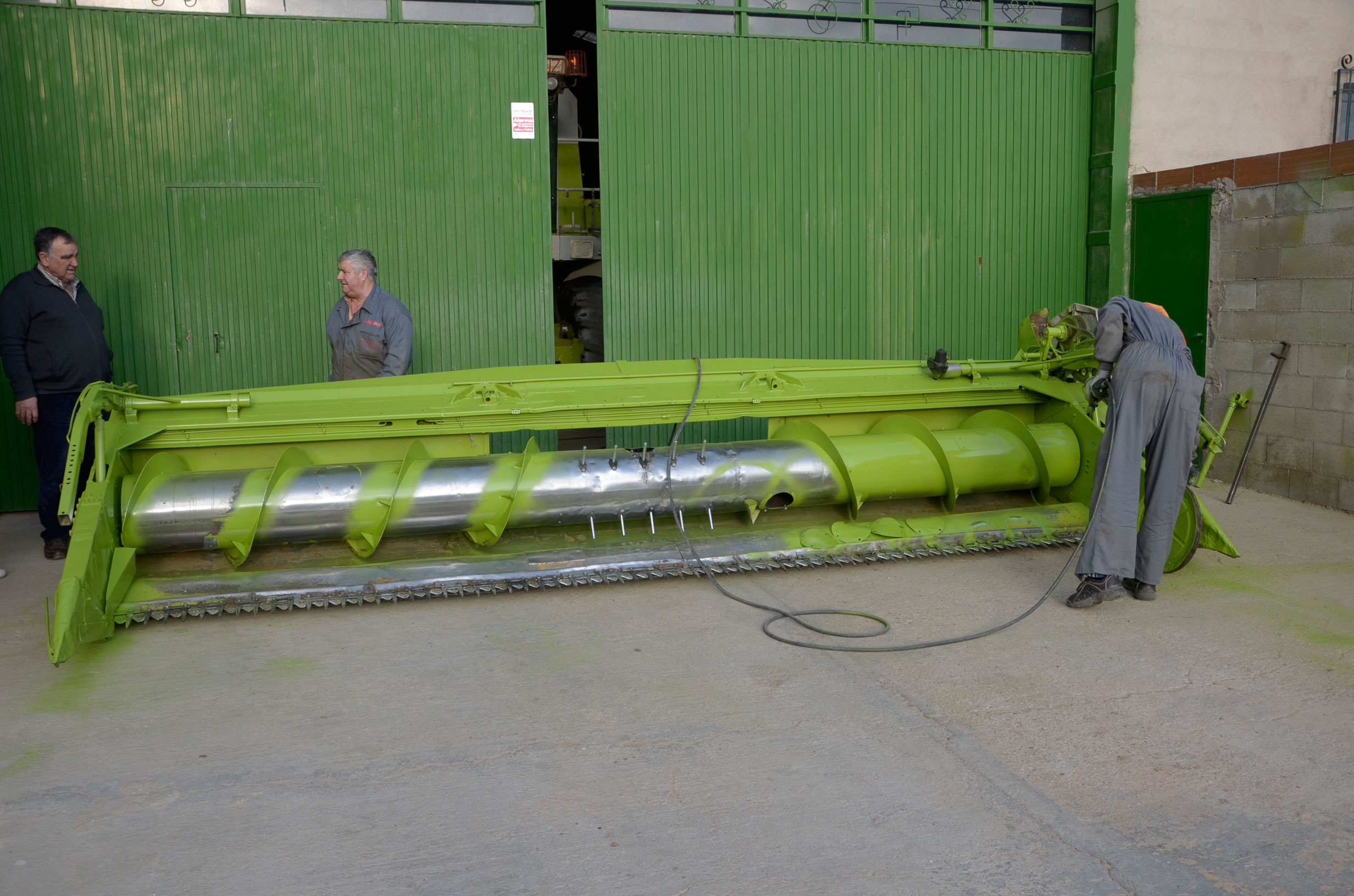 Después de unos días de trabajos de lijado y unos cuantos kilos de pintura, la máquina parece completamente nueva… esta campaña trabajará guapísima!! Nosotros no tenemos cosechadora, pero sin duda, si tuviésemos que comprar una, sería una Claas.