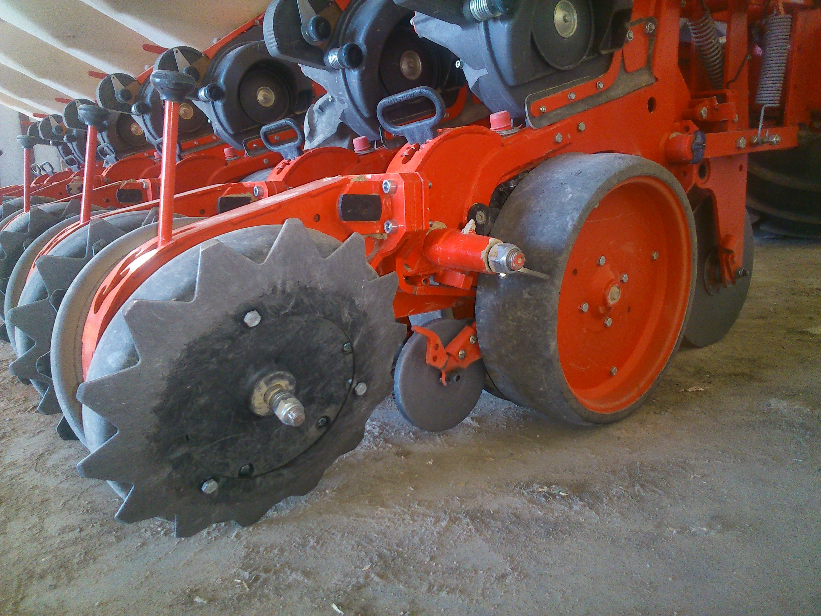 Esas ruedas pisadoras o tapadoras tienen un problema cuando trabajan en terreno con mucha piedra o mucho terrón, que han solucionado al poner los platos estrellados. Al tener poco diámetro, cuando pillan un terrón duro o una piedra, el plato no gira y arrastra hasta que se quita la piedra, problema típico en las monosem y otras marcas, por lo menos en mi zona que tenemos muchísima piedra. Ahora, si el terreno está perfecto preparado, no hay terrones o has pasado delante el rotavator queda perfecto.
