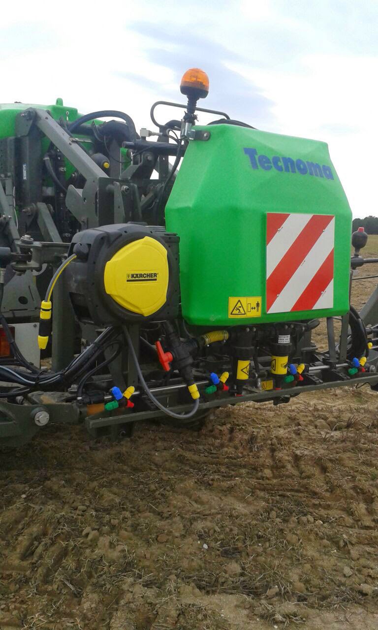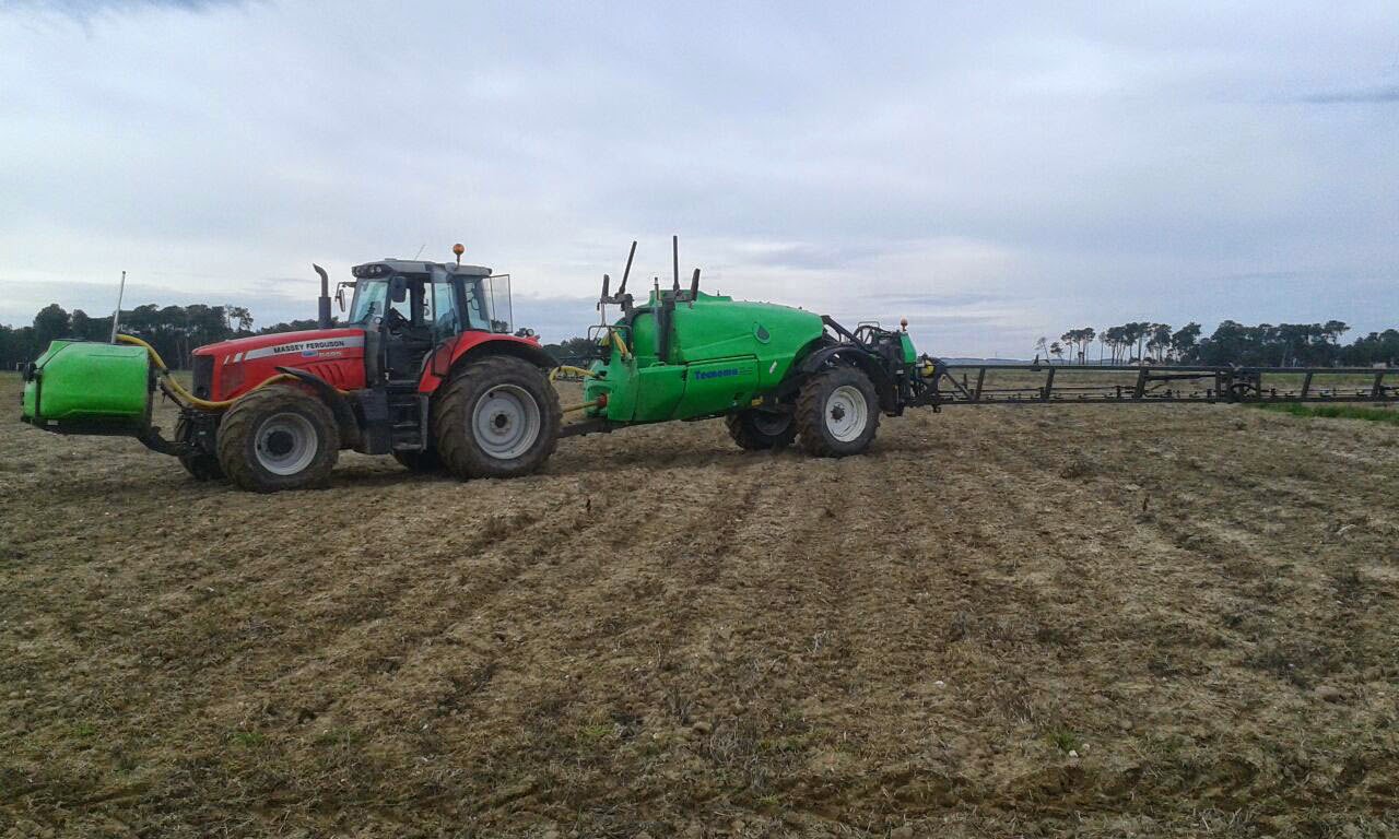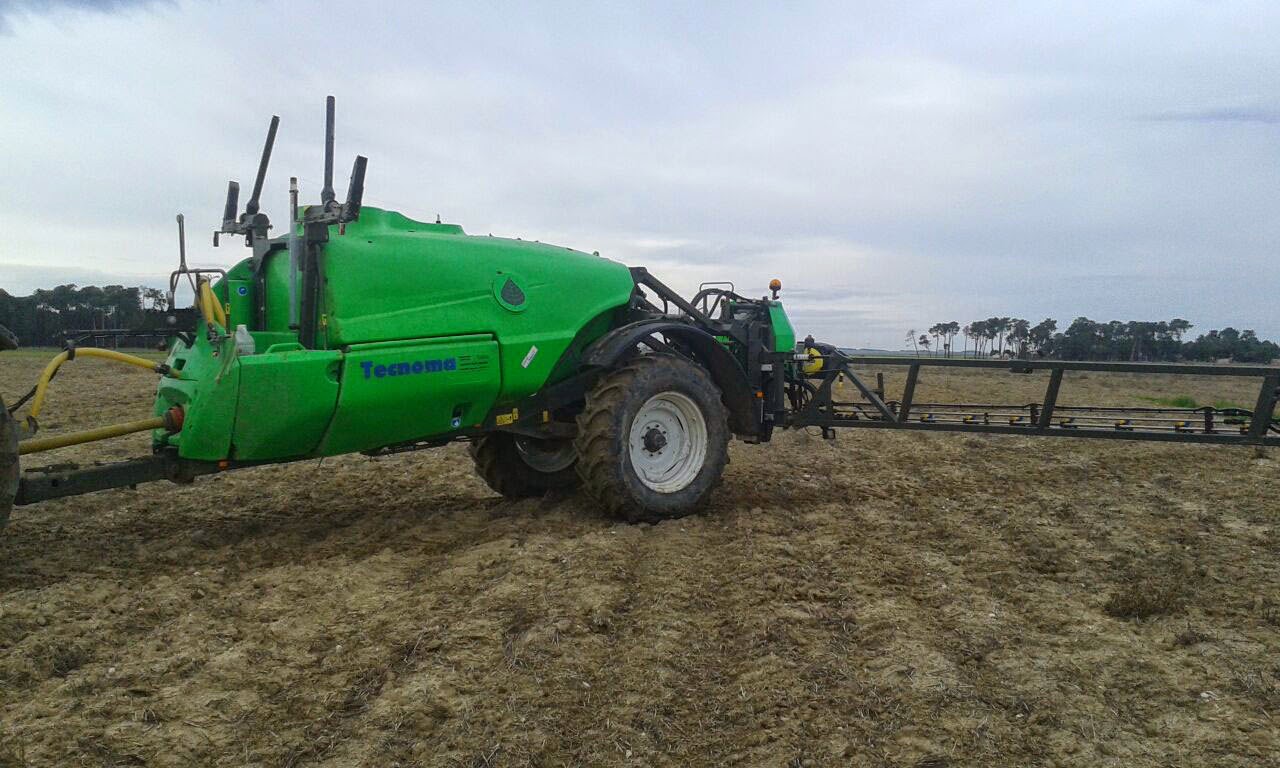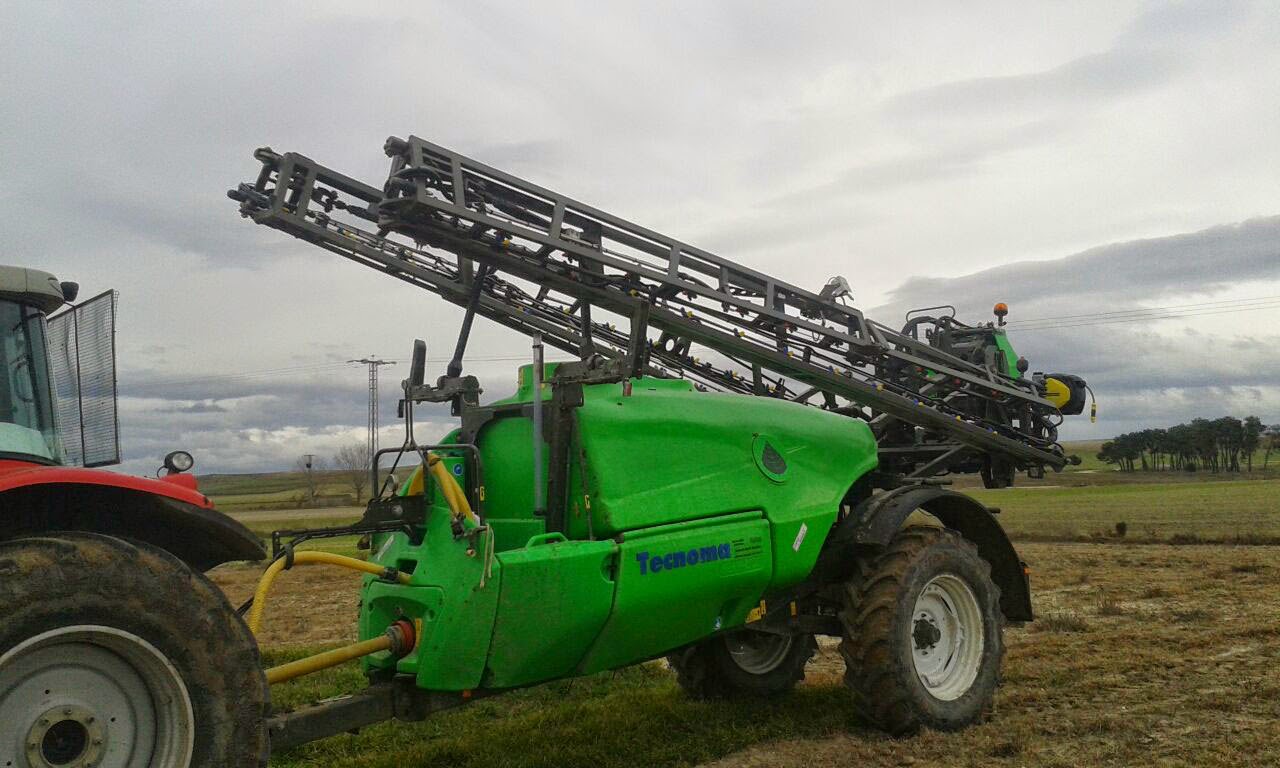 El año pasado publicamos un post sobre los trabajos a terceros que realizan los hermanos gemelos César y Raúl en tareas de abonado y escarda. En esta ocasión nos envían fotos de su nuevo pulverizador Tecnoma Tecnis 4500. Con un ancho de trabajo de 28 metros y completamente gestionado mediante ordenador y sistema GPS, el equipo de pulverizador que tienen es impresionante.