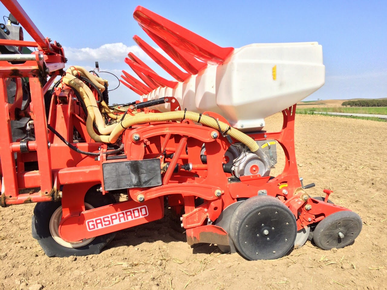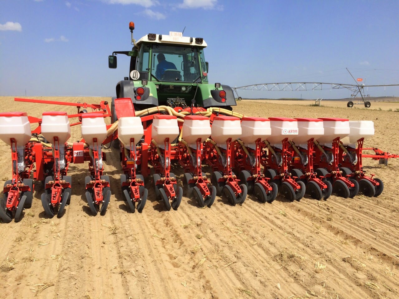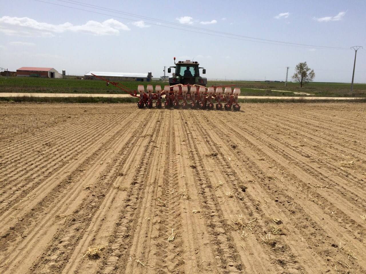 Por esa zona, es habitual que los agricultores dispongan de sembradoras Monosem o Solá de como máximo 7 surcos… esta empresa tiene una de 12 surcos, que les permite sembrar unas 20 ha por día (la velocidad de trabajo está en torno a 4.5km/h). Las sembradoras de precisión monograno suelen ser caras, por lo que la amortización de esa maquinaria tiene que estar presente en los agricultores. Por otro lado, esta empresa solo cobra 45 €/ha por este trabajo… ¿qué opción es mejor para ti?