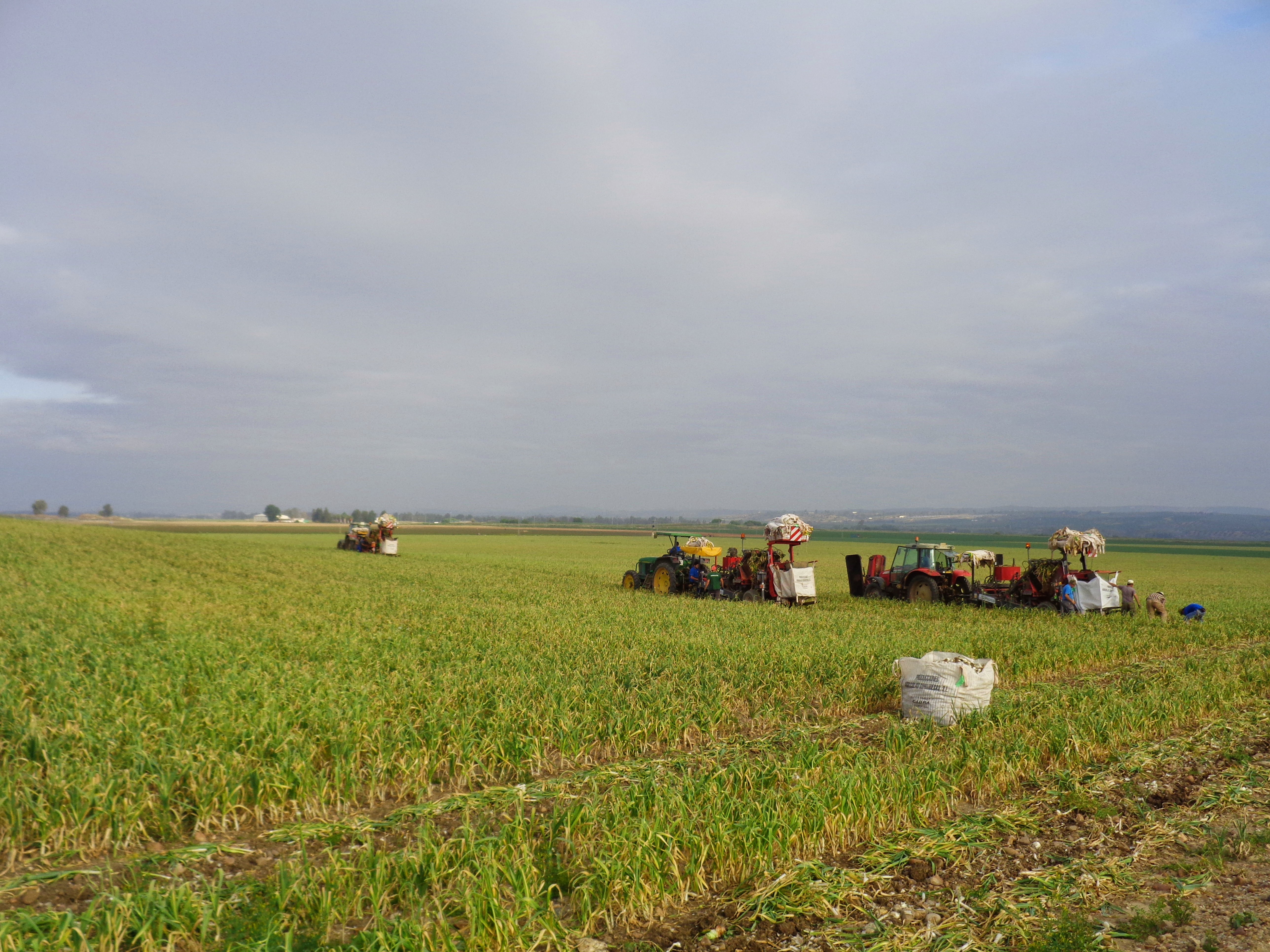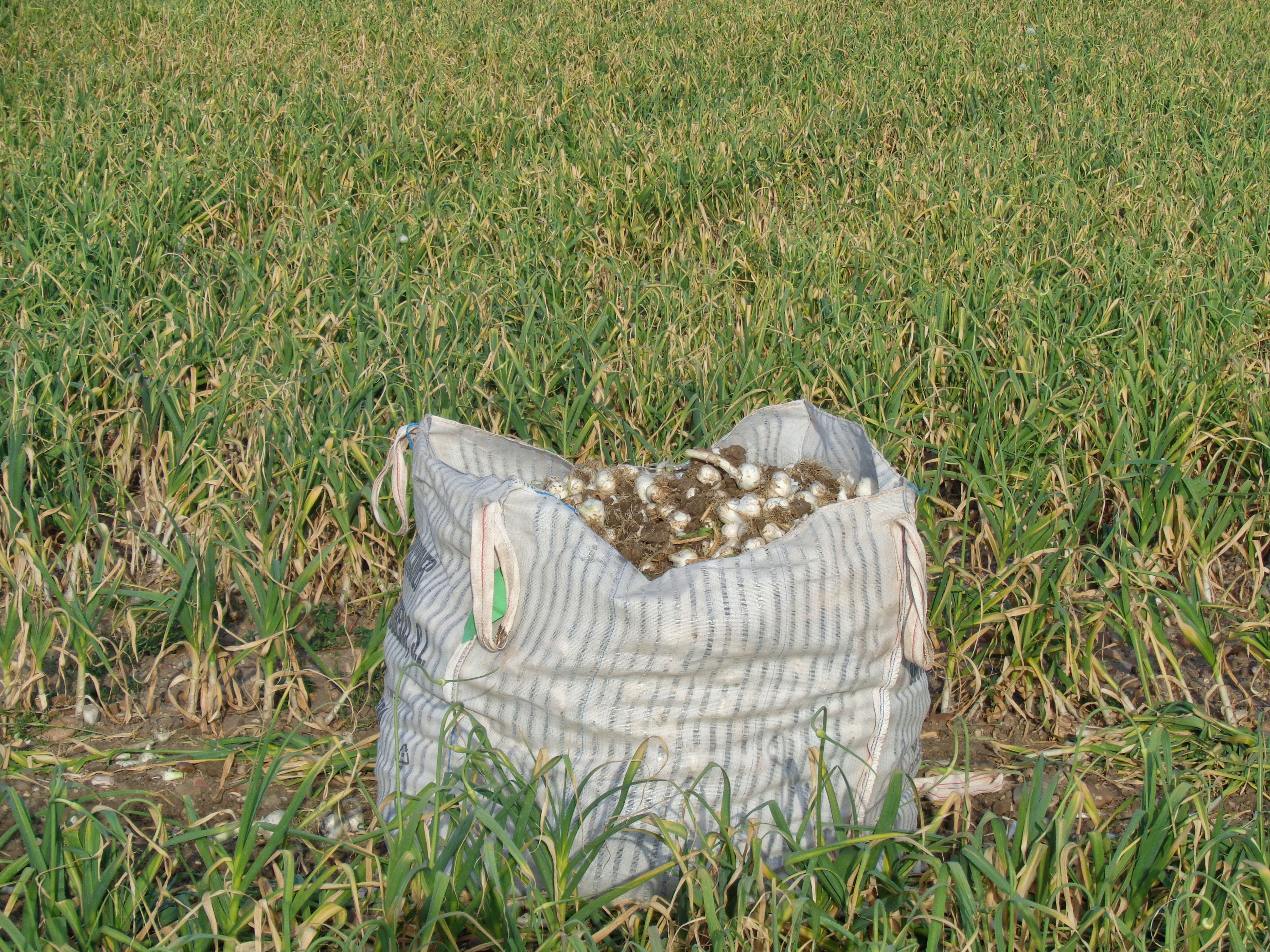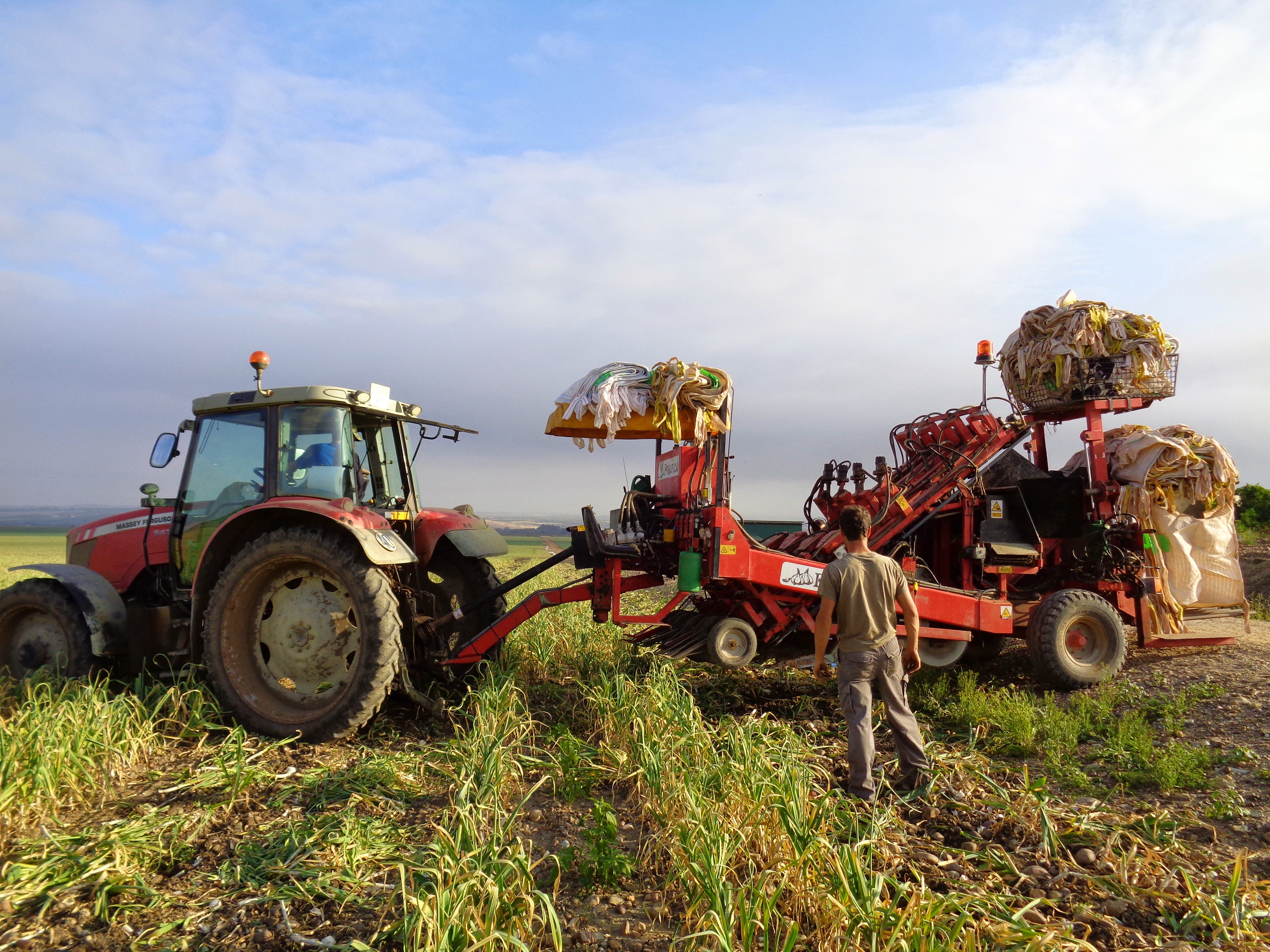 Cierto, es lo primero que pensamos cuando vimos las fotos. Varias máquinas de cuatro surcos trabajando todo el día generá una cantidad de sacas impresionante. Suponemos que lo tendrán todo pensado para poder ir sacando las sacas del campo e ir secando los ajos.