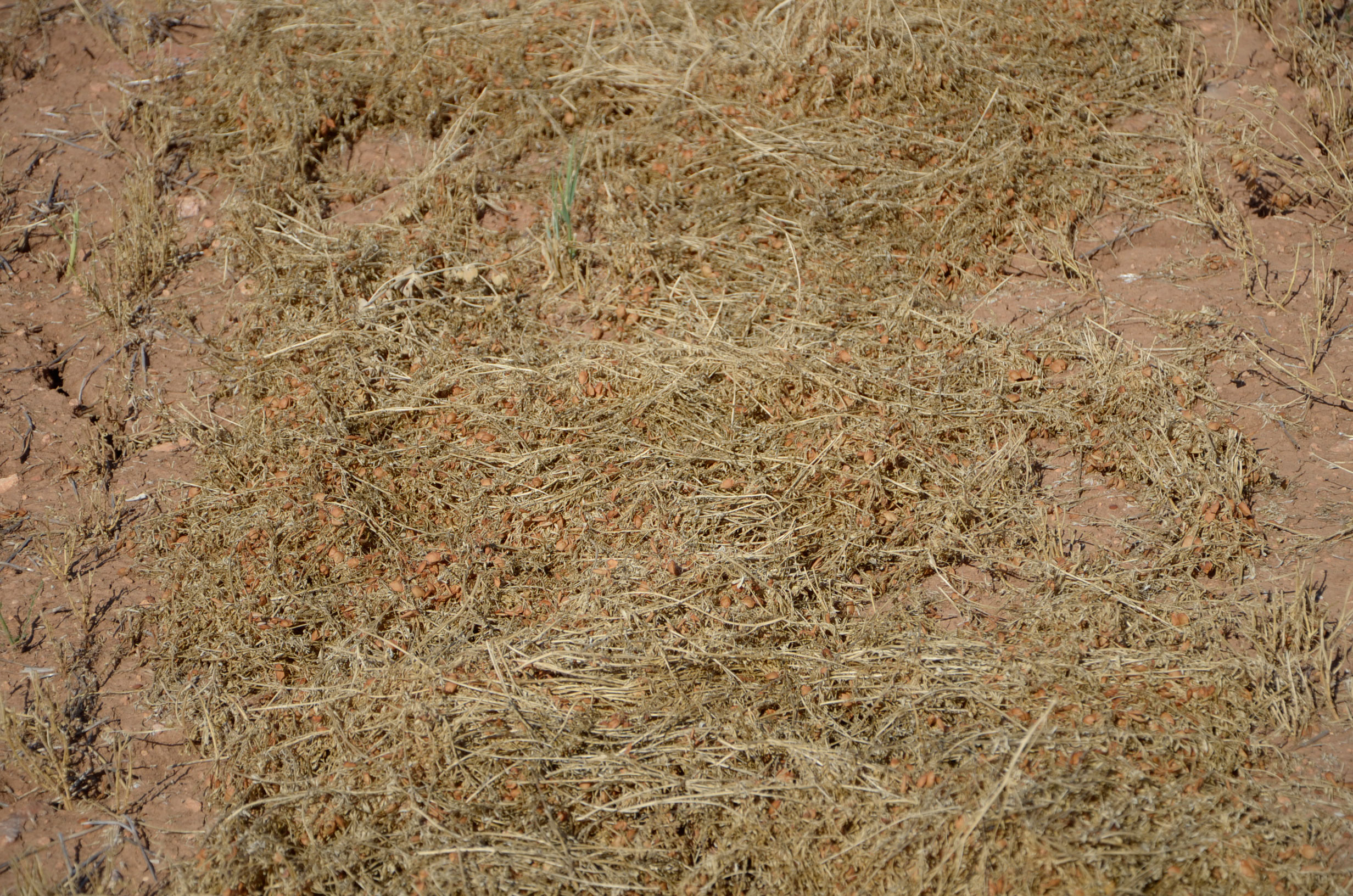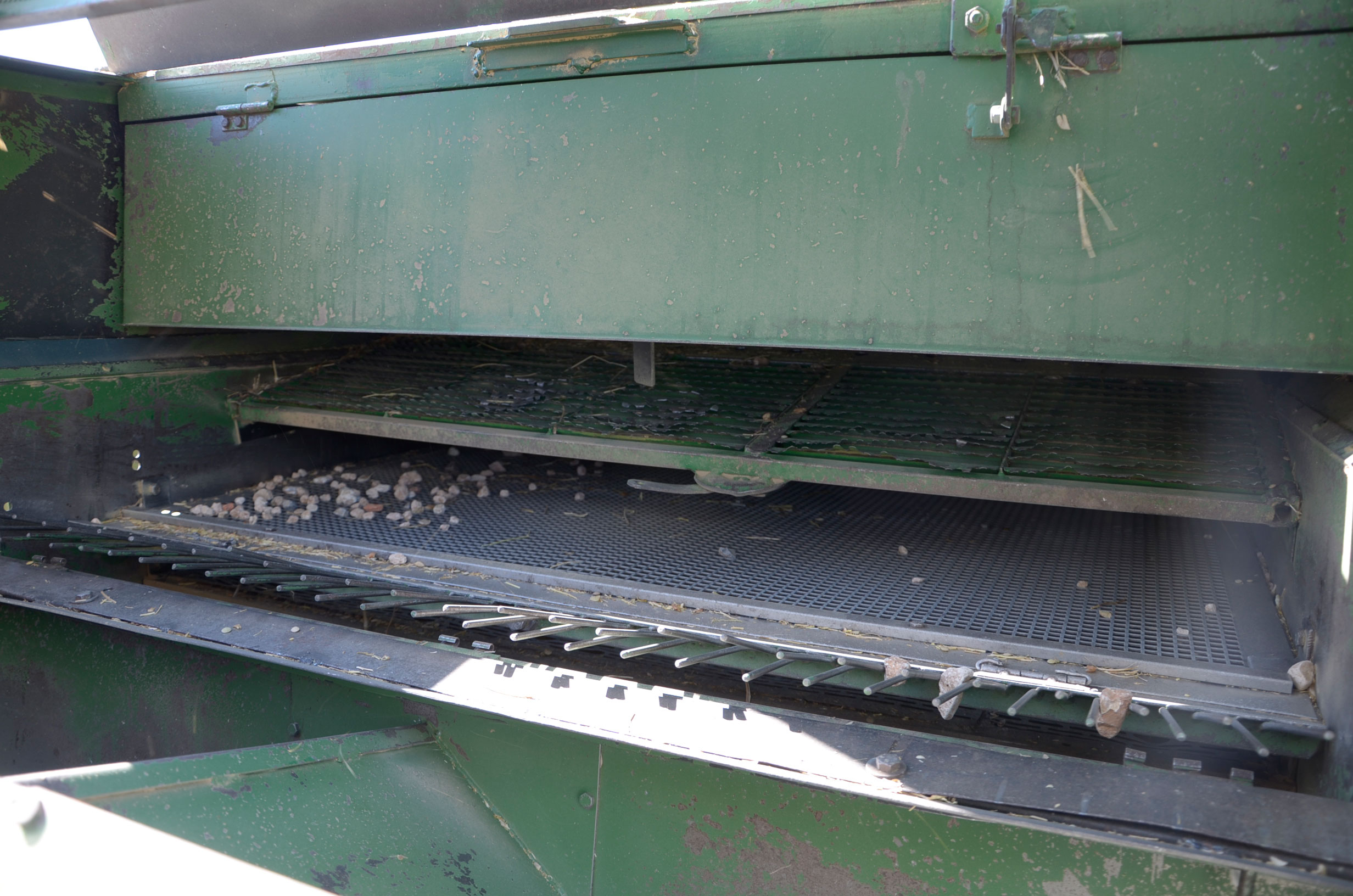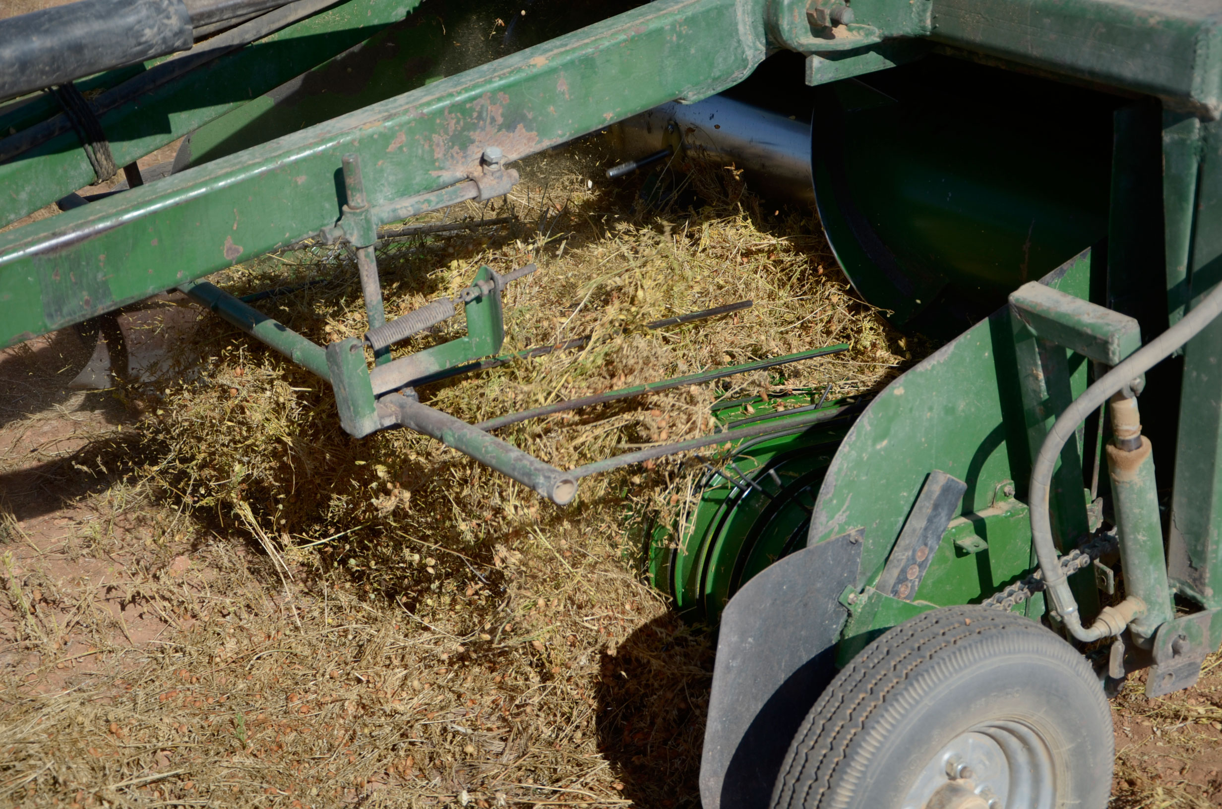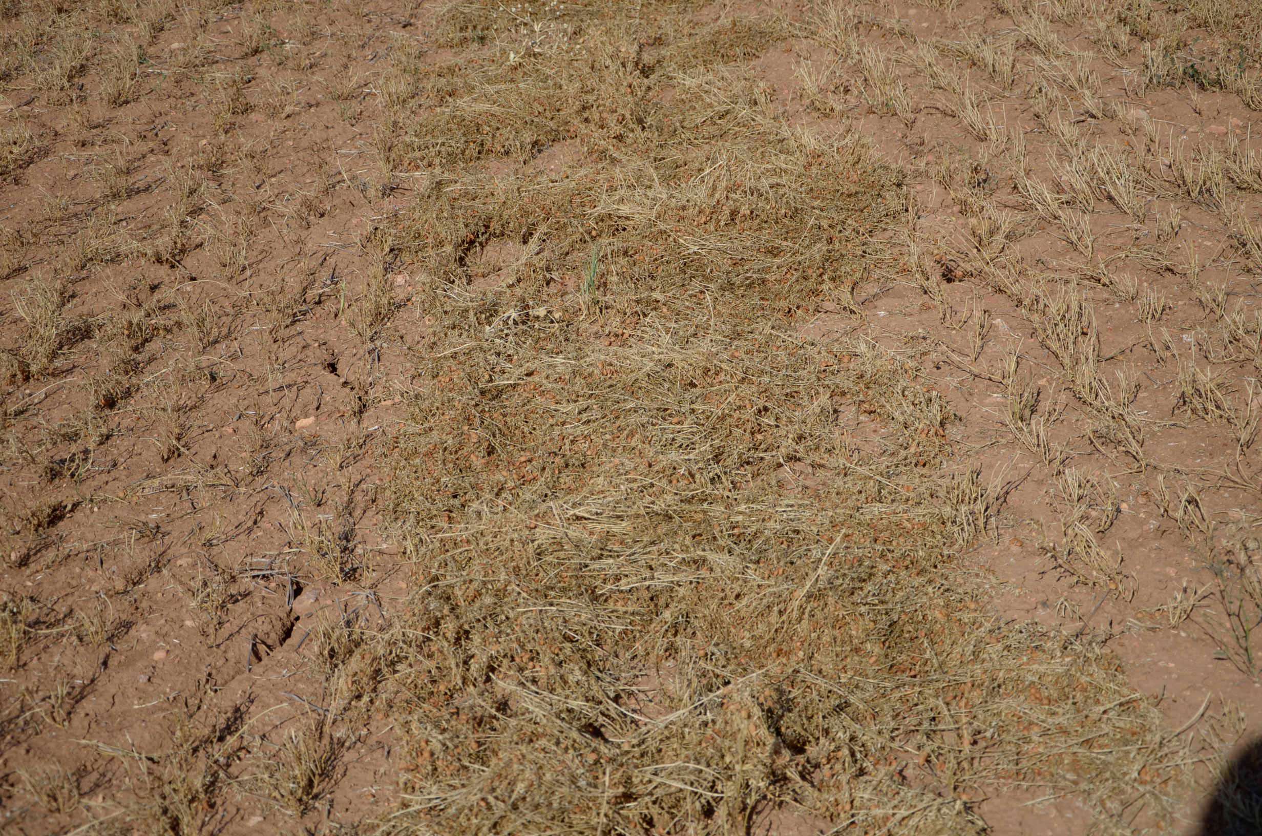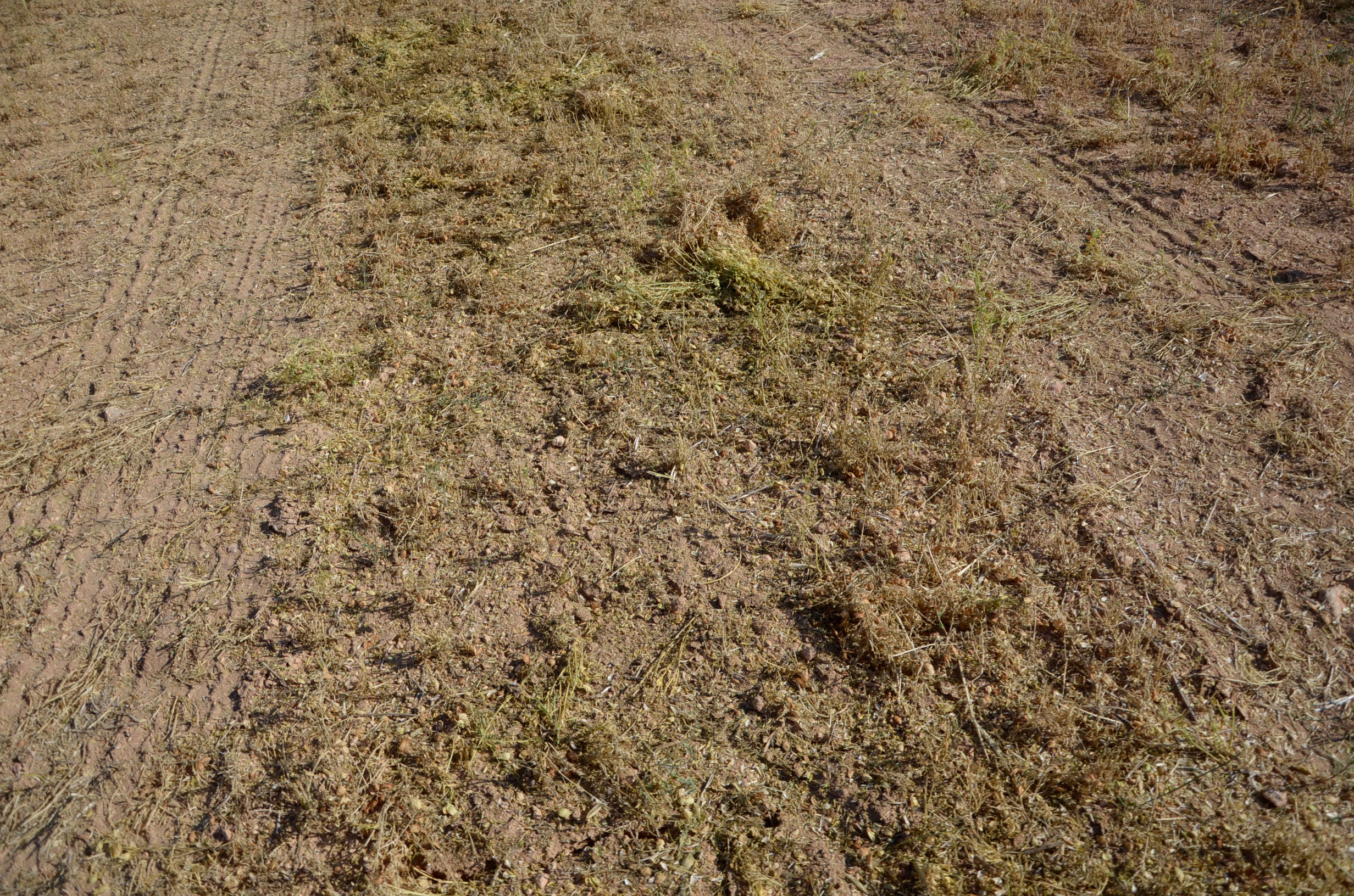 Como hemos comentado, muy pocos agricultores continúan cultivando lentejas. Es un cultivo muy delicado y que varía mucho el precio. Nuestro amigo Timo Alcañiz es uno de los que aún saca rentabilidad a este cultivo. Hoy en día, todas las tareas están mecanizadas, por lo que él realiza estos trabajos sin problemas. Está muy especializado en este cultivo y por tanto dispone de todas las herramientas necesarias. Según nos comentaba Timo cuando lo visitamos en sus tareas de trilla, este año las lluvias de junio le han producido una pérdida de un 30% de la producción. Como podéis ver en las fotos, hay muchas lentejas que se quedan en el suelo ya que al mojarse el cascabillo se abre y el fruto se cae al suelo.
