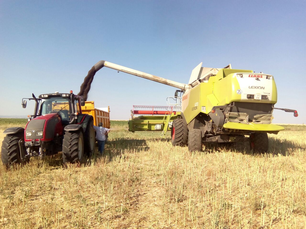 La semana pasada leyendo la revista Campo (del portal www.campocyl.es) de la que recibimos su newsletter semanalmente vimos un artículo muy interesante sobre el cultivo de la colza en Castilla y León (zona con más de 26.000 hectáreas sembradas de colza). Según comentan en el artículo, es un cultivo importante en esa zona de España, siendo muy valido para hacer rotaciones de cultivos. Nuestro amigo Alberto (de Turégano) y Espejo (de Chinchón) nos han enviado algunas fotos que podéis ver a continuación. Alberto es el primer año que siembra colza y volverá a repetir la próxima campaña… ha tenido una producción de 2.130kg/ha. Según nos comenta, es un cultivo que necesita que nazca bien (se siembra en septiembre). Si tiene lluvias en las primeras semanas después de sembrarse, el éxito está casi garantizado.