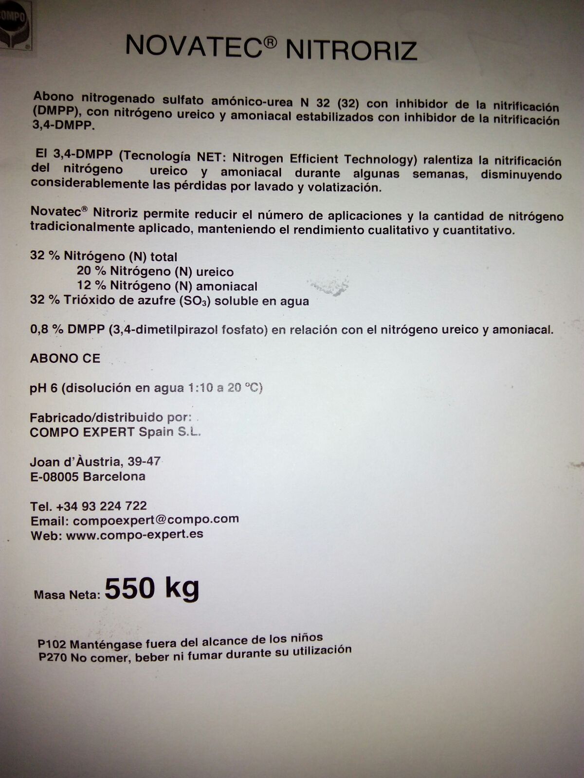 - Opción 4: Abonado de una sola vez: Compo Novatec Nitroriz (250kg/ha) en febrero.