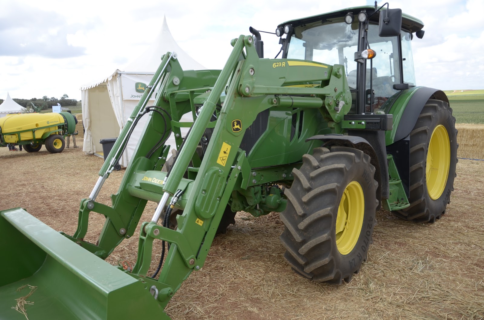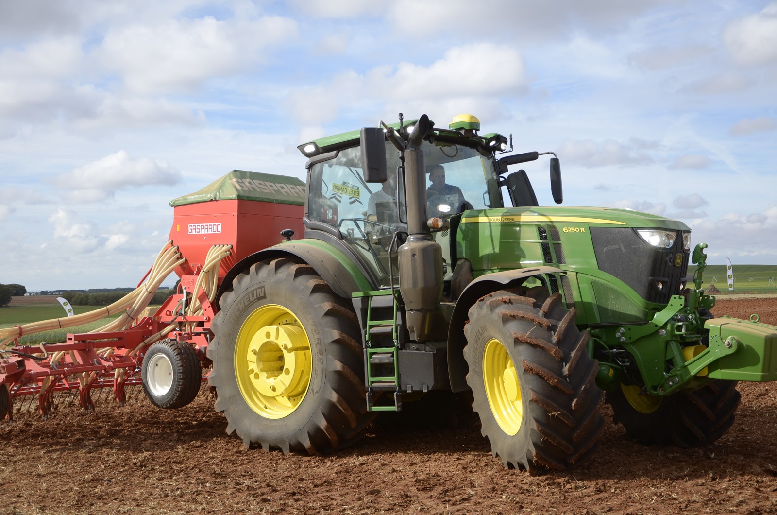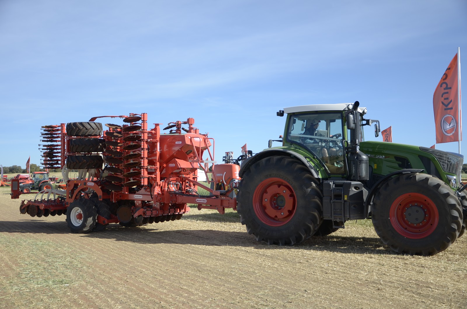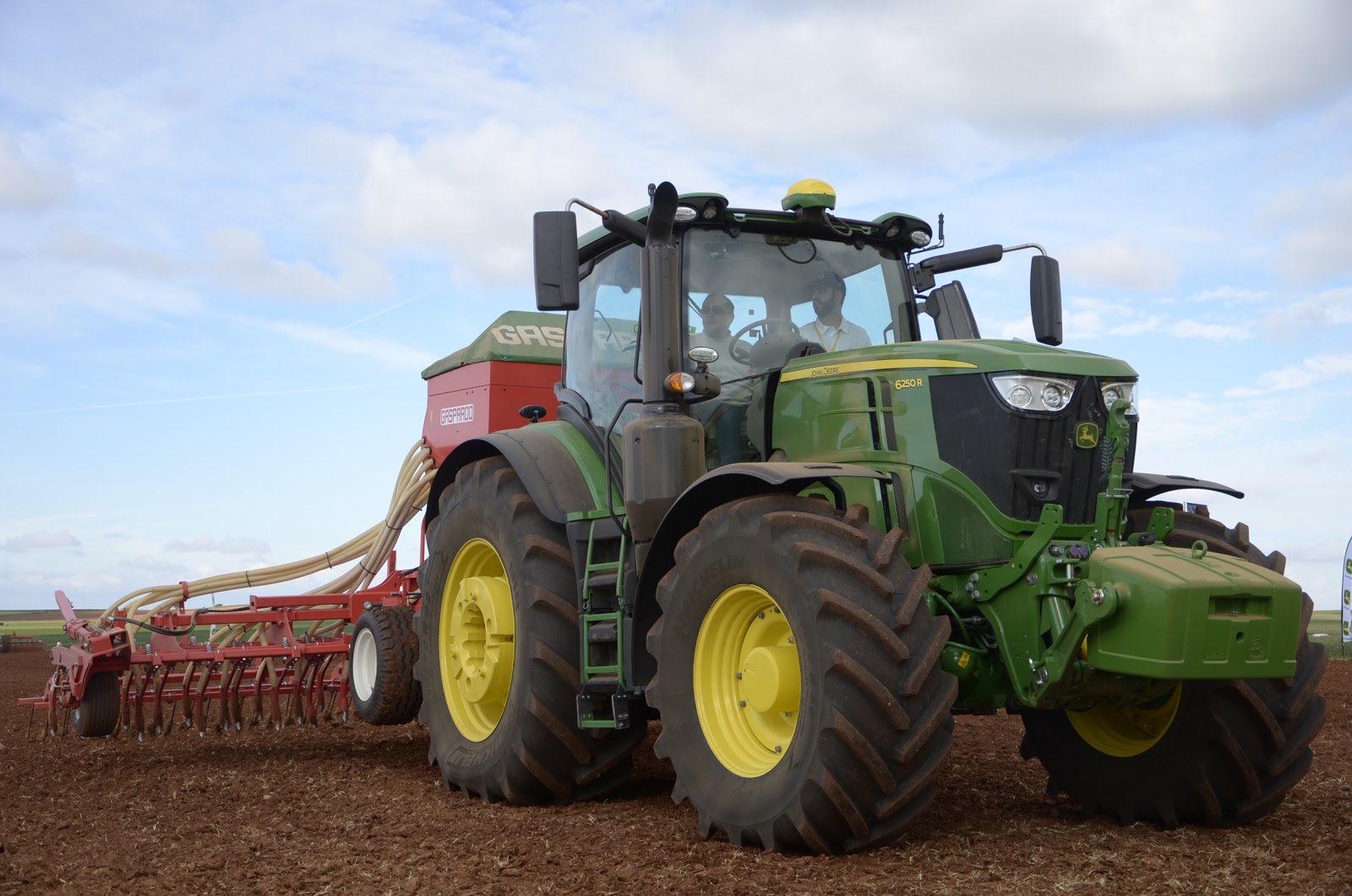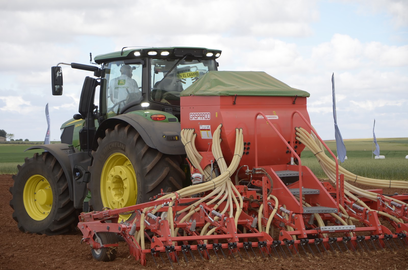 La parcela de John Deere siempre nos gusta porque destaca por el orden que tienen las cosas… rozando lo cuadriculado. Tenían un buen despliegue de casi toda la gama de tractores. Pudimos probar el nuevo 6250R con la sembradora Primavera de Maschio Gaspardo. Un monstruo que impresiona cuando trabajas con él. También pudimos probar el nuevo 5R. Estaba con una pala R y el conjunto hacían un tándem fantástico.