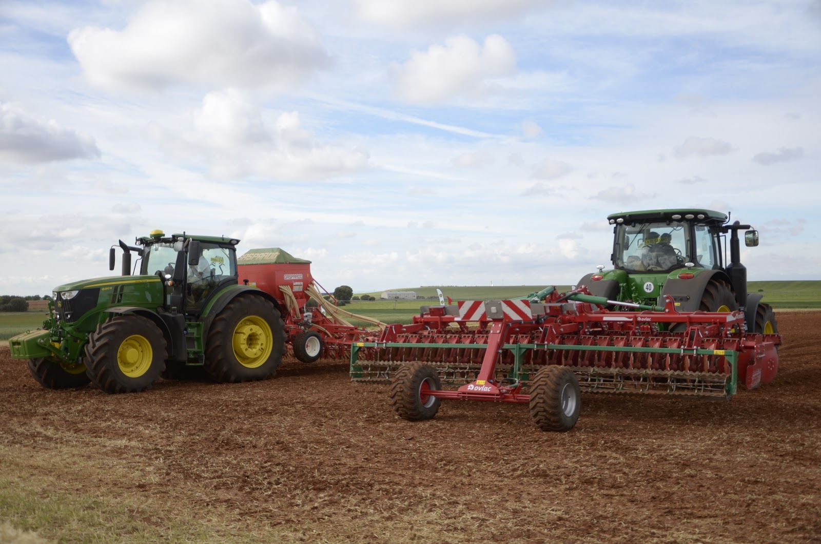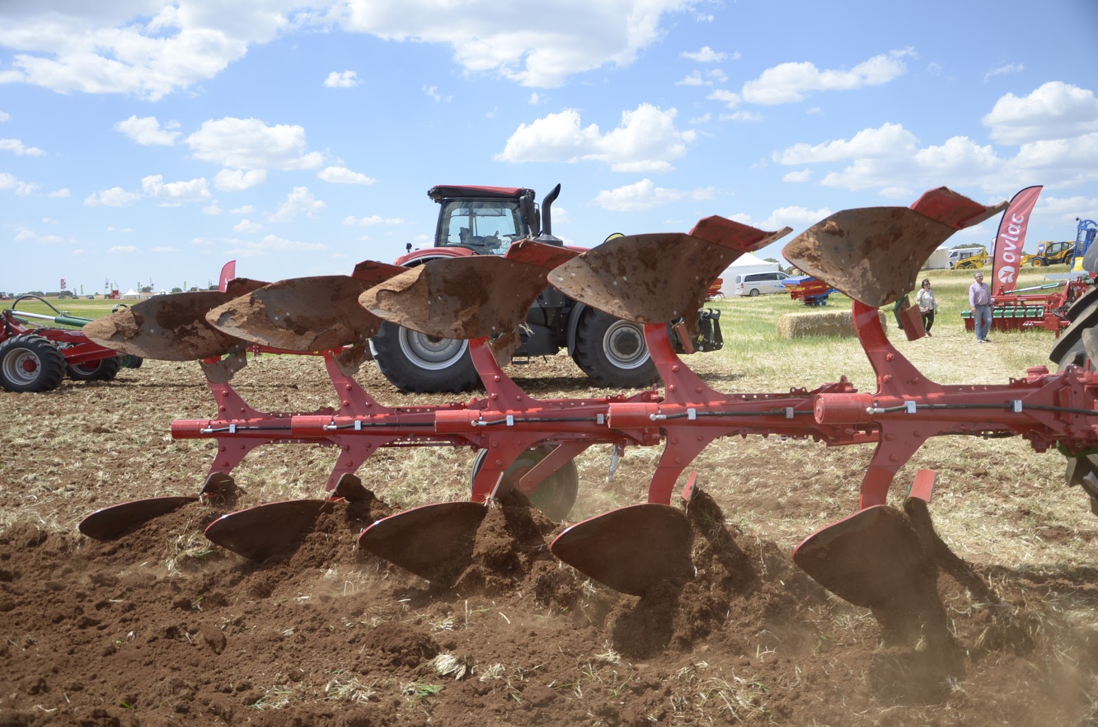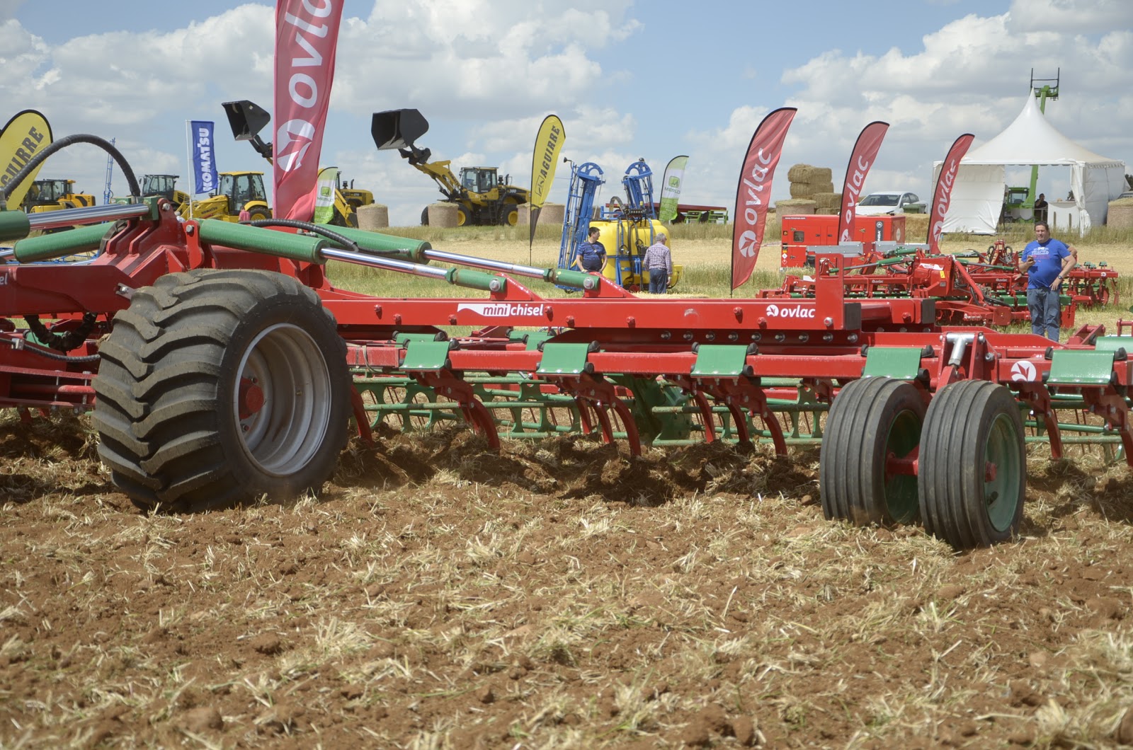 Jorge Calvo nos explicó con detalle la gama de aperos que Ovlac fabríca en sus instalaciones de Venta de Baños (Palencia)… aperos de muy alta calidad que compiten con las primeras marcas de preparación de suelo tanto en España como en el resto de Europa. Pudimos ver trabajar el chisel rastrojero Versatill (con sistema non stop por ballesta e hidroneumático), el minichisel arrastrado de 9 metros (fabrican hasta 10 metros) y el producto estrella, la vertedera pentasurco reversible.