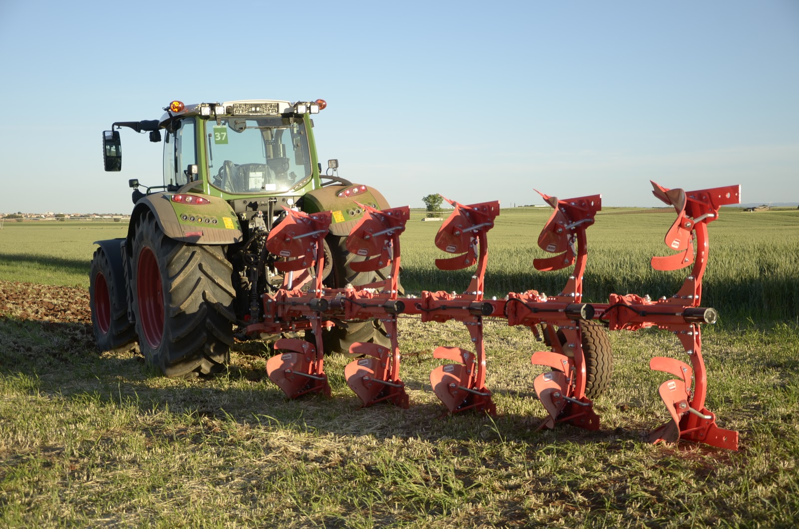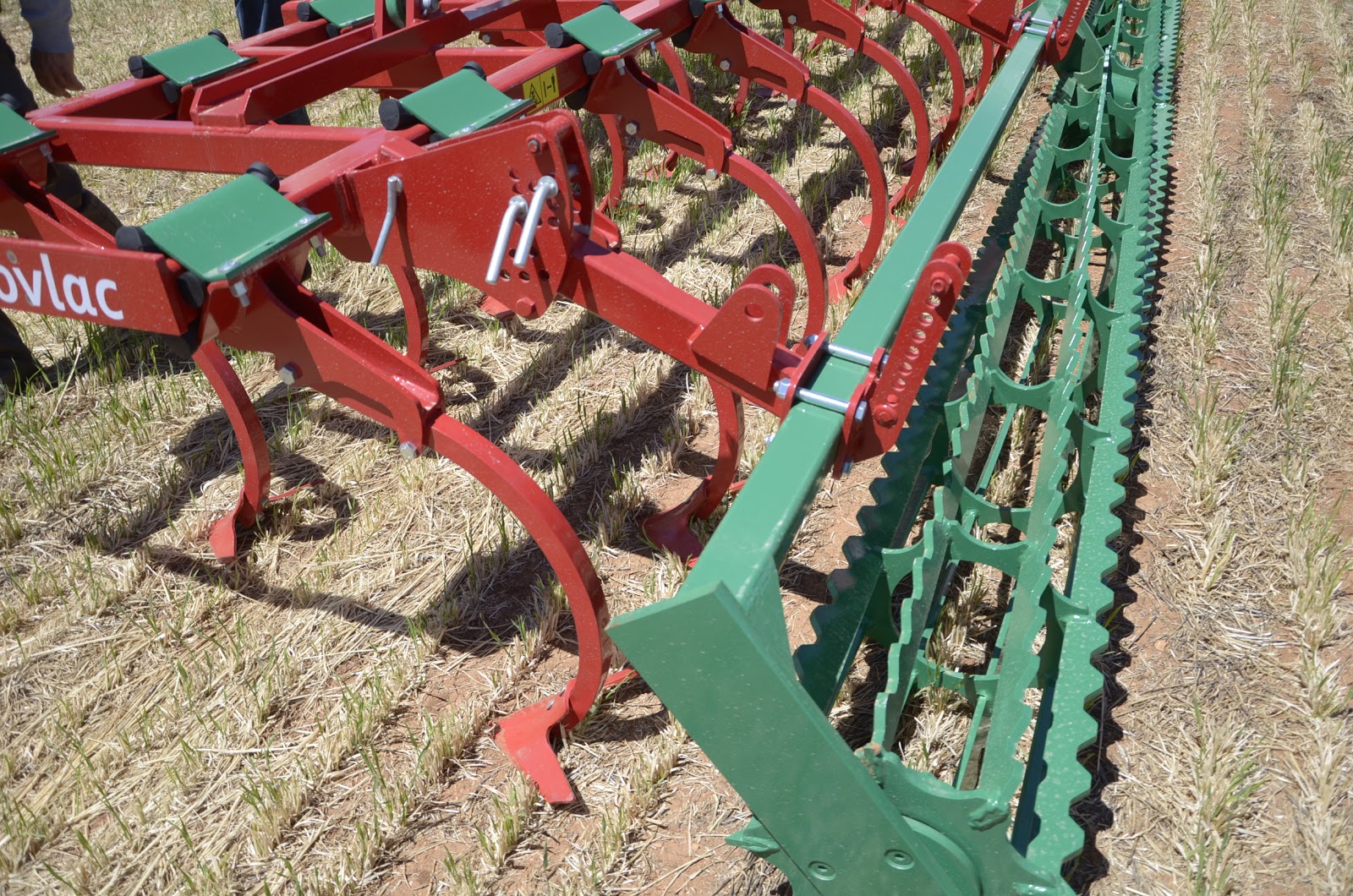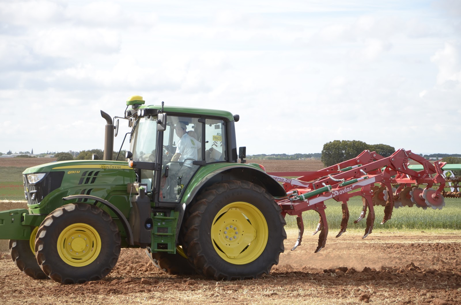Jorge Calvo nos explicó con detalle la gama de aperos que Ovlac fabríca en sus instalaciones de Venta de Baños (Palencia)… aperos de muy alta calidad que compiten con las primeras marcas de preparación de suelo tanto en España como en el resto de Europa. Pudimos ver trabajar el chisel rastrojero Versatill (con sistema non stop por ballesta e hidroneumático), el minichisel arrastrado de 9 metros (fabrican hasta 10 metros) y el producto estrella, la vertedera pentasurco reversible.