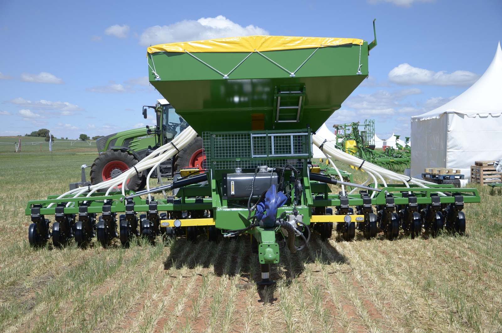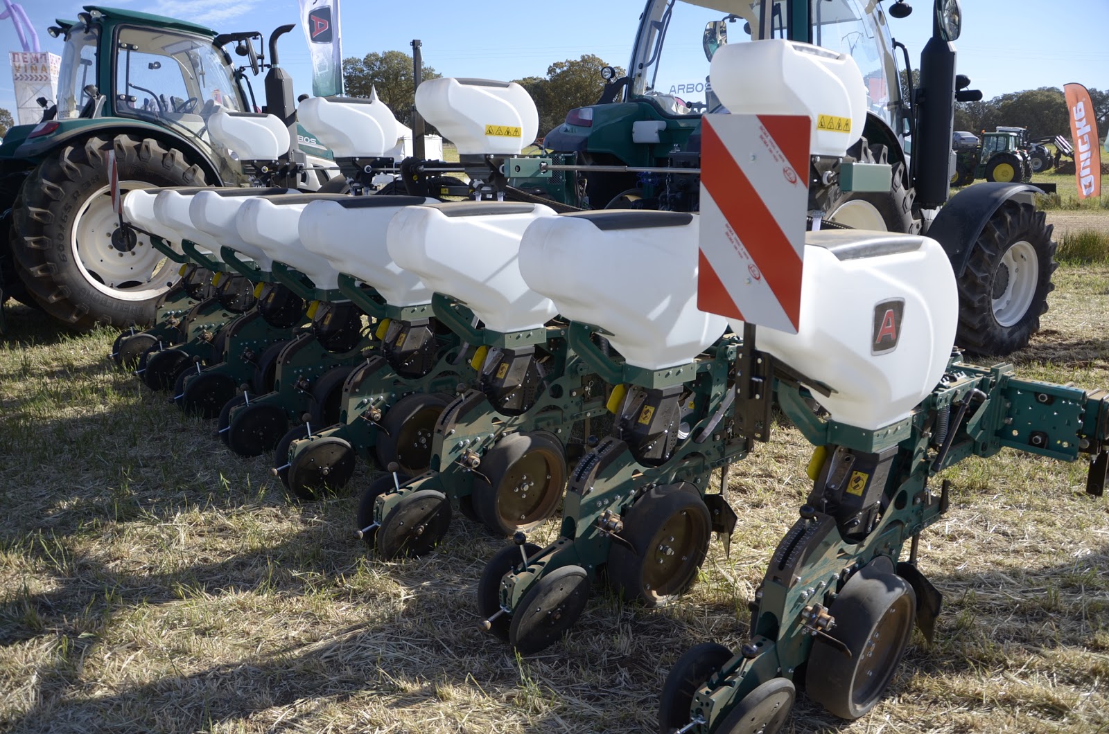Nicola Franco (Jefe de la filial en España) nos hizo un tour por todas las máquinas que tenían en su parcela. Al terminar, nuestra conclusión fue que son máquinas robustas de muy alta calidad. Sin duda alguna, la que más nos gustó fue la sembradora monograno.