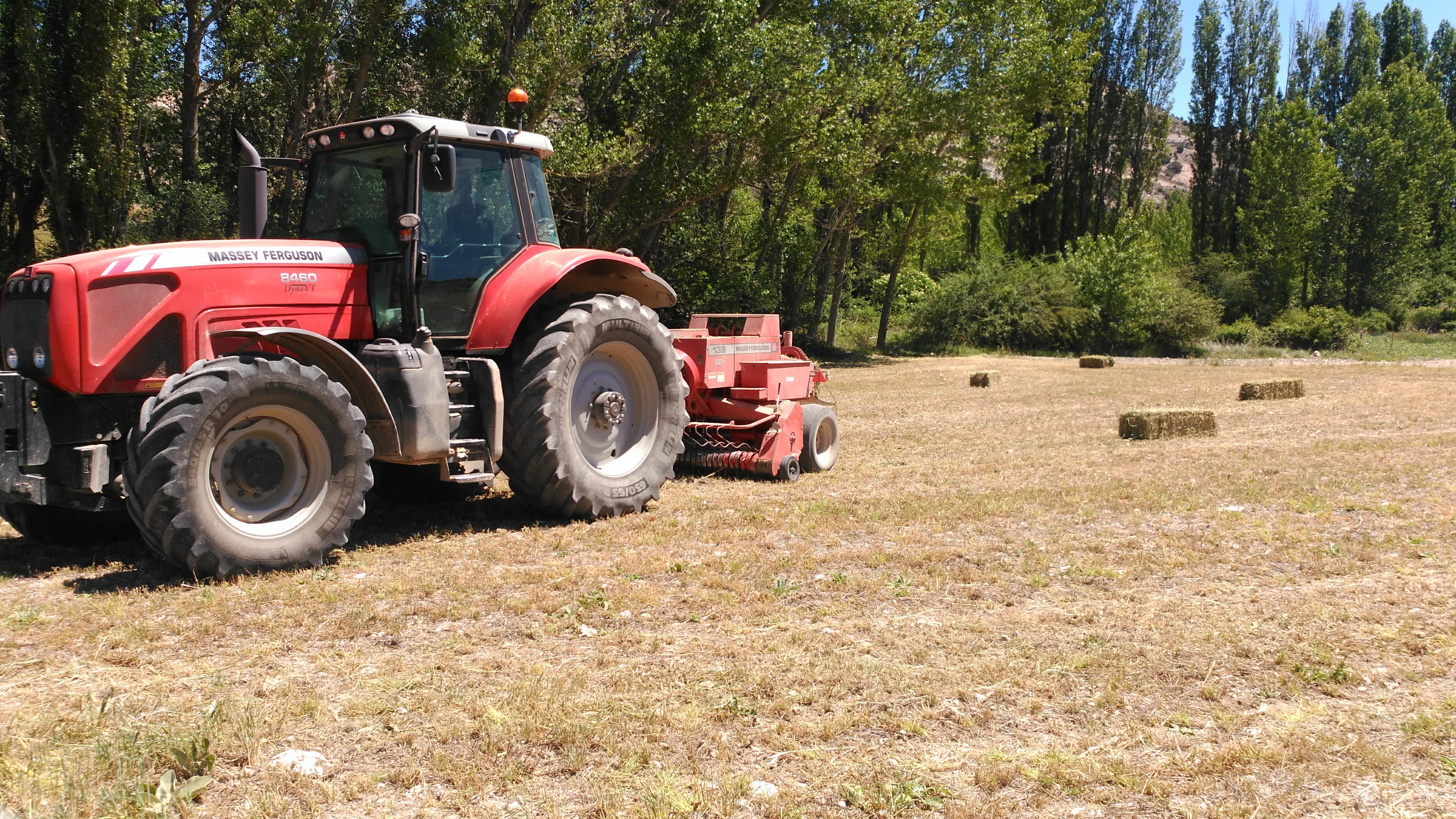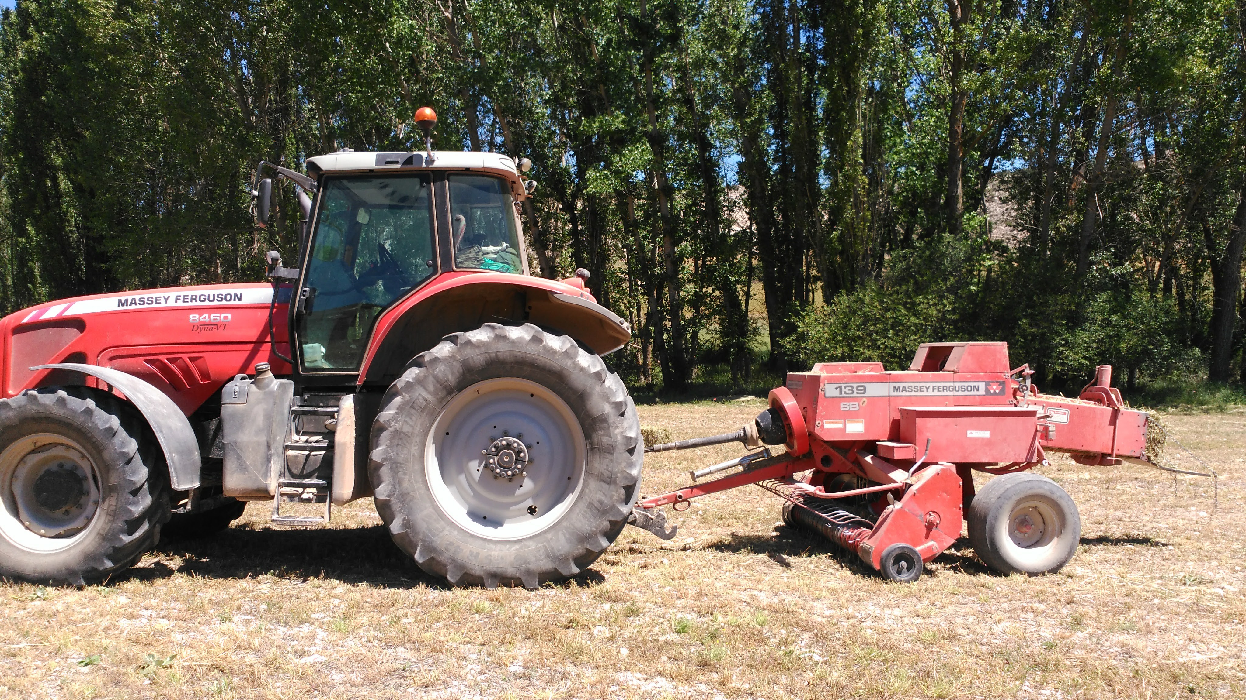Dentro del mundo globalizado donde estamos, donde el tener un año con baja producción en España no influye en el precio de las materias primas porque en otros países pueden tener buena cosecha, donde la maquinaria tiende a ser más y más grande, nos llamó la atención que José Enrique tenga una empacadora de pacas pequeñas… una fantástica Massey Ferguson 139 SB. Realmente en España no es muy común verlas ya trabajar. Además esta empacadora es la única del mercado con alimentación central y según Jose Enrique es una «gran» empacadora a pesar de hacer pacas pequeñas (356x457mm).