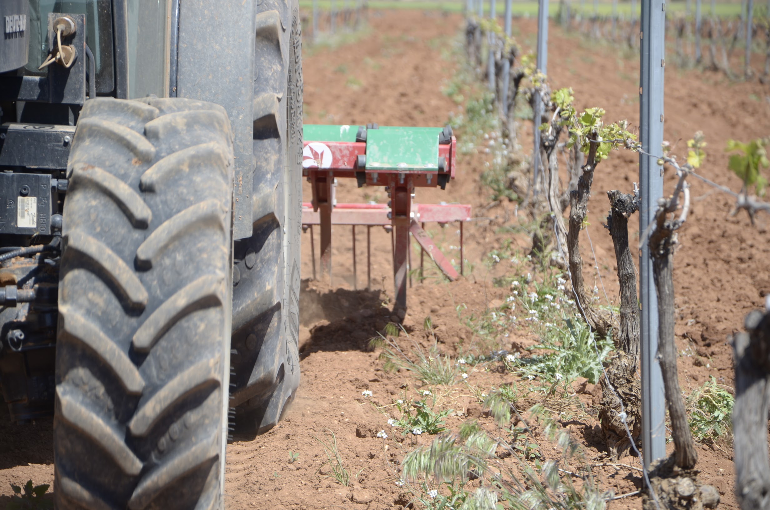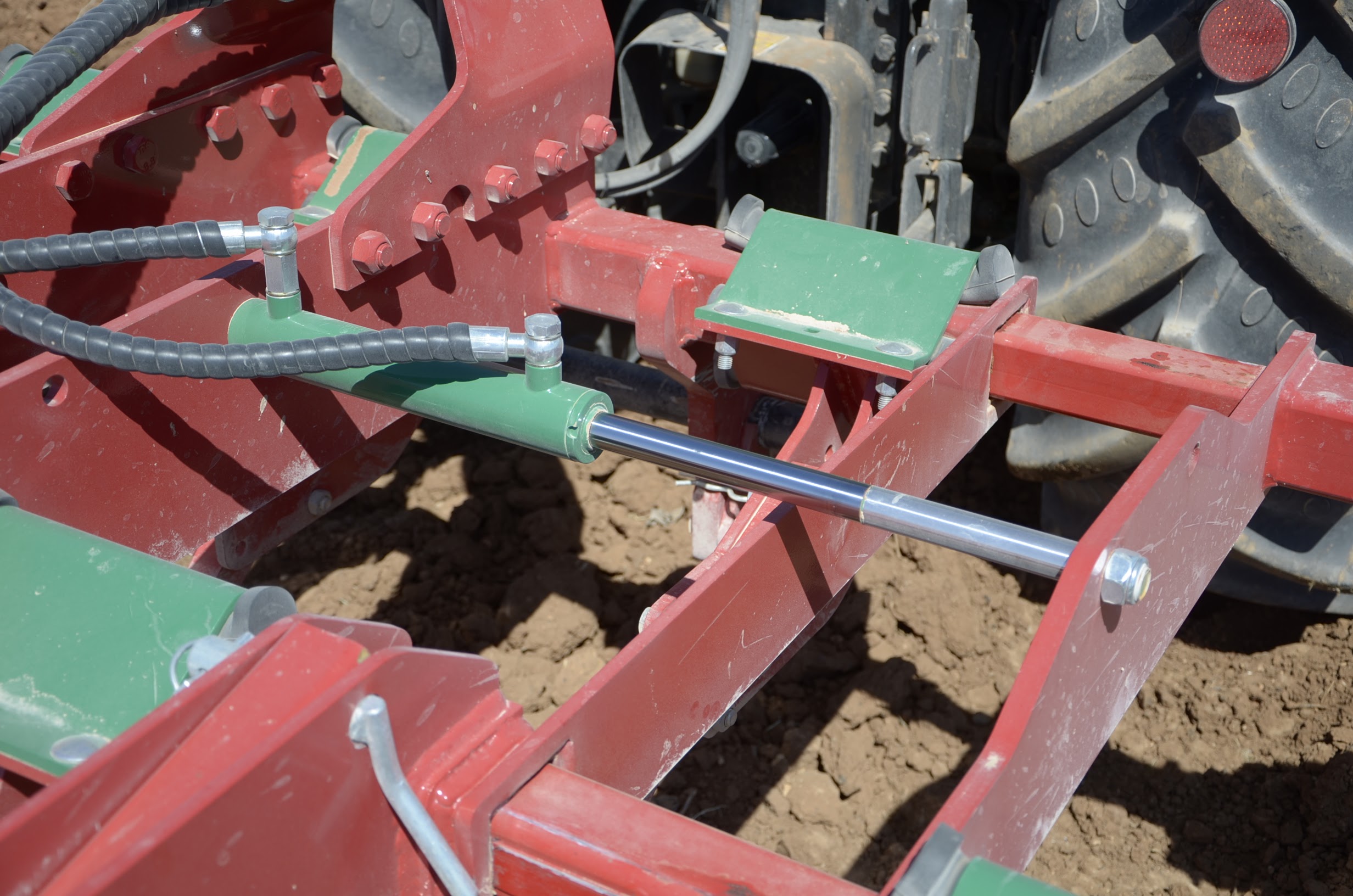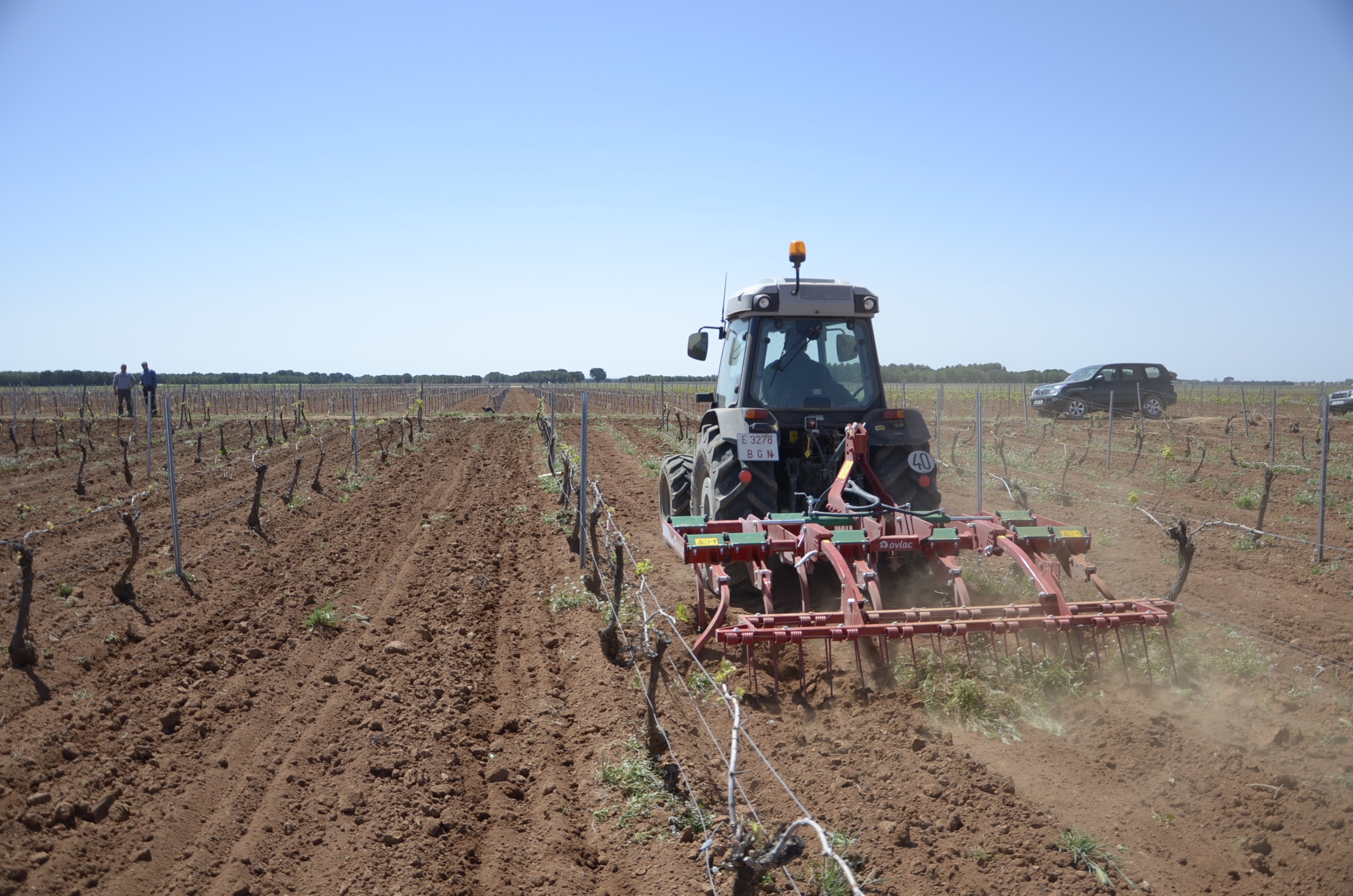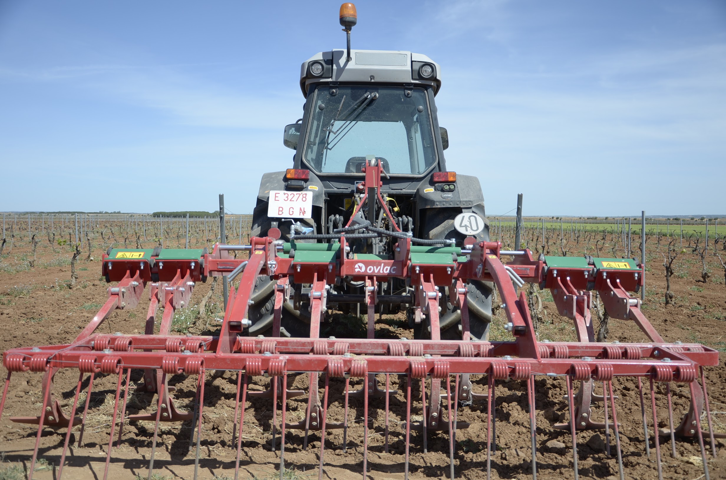 El viticultor puede elegir este apero con 7, 9 ó 11 brazos, teniendo una anchura de trabajo desde 1,65m hasta 2,95m. En cada uno de los extremos lleva un brazo curvo que ayuda a trabajar entre las vides. Este también se puede cambiar por un intercepas hidráulico o mecánico. En la demostración, pudimos comprobar que una mayor separación de ese arado curvo sería ideal para cuando hay mucho residuo.