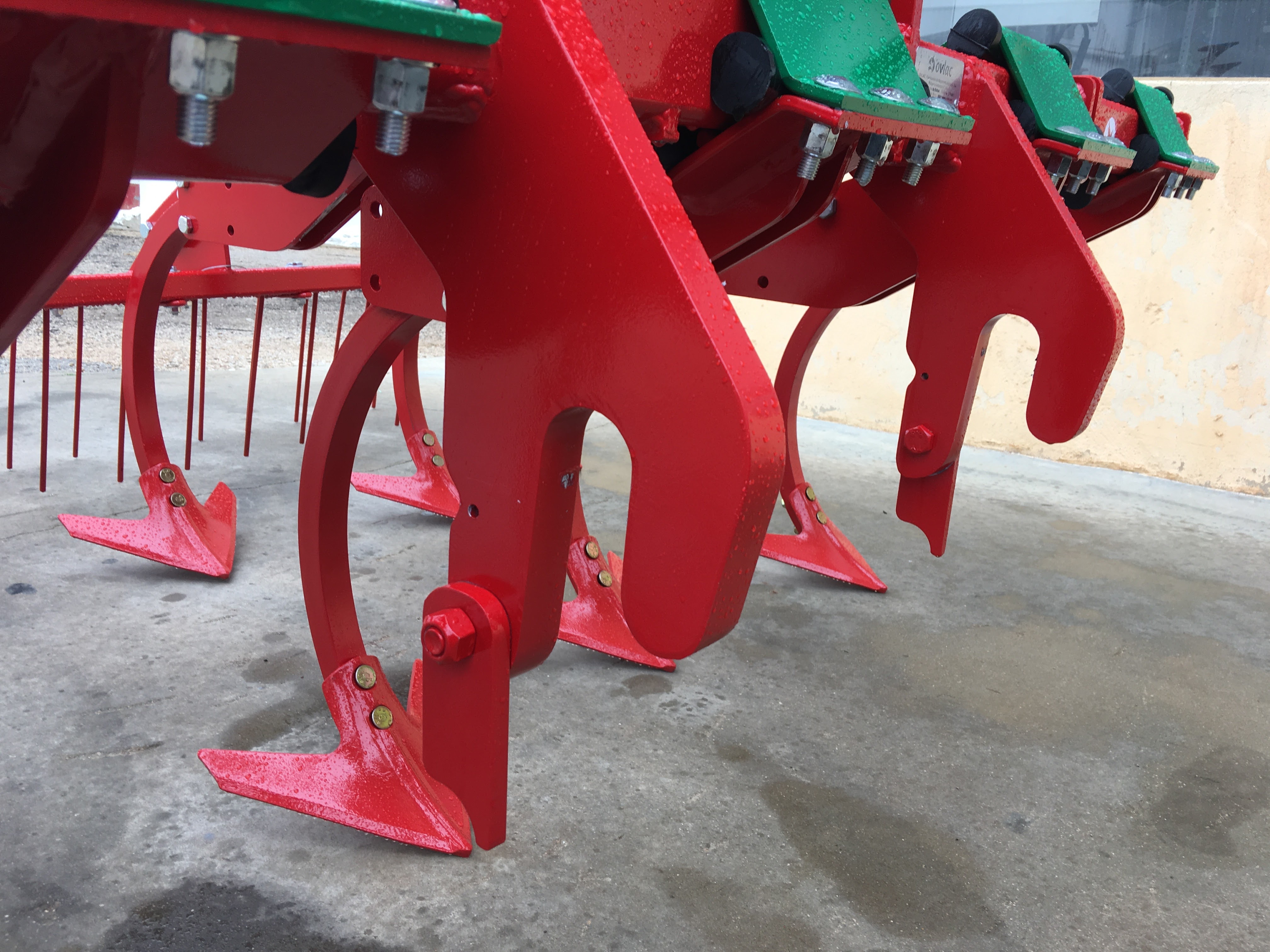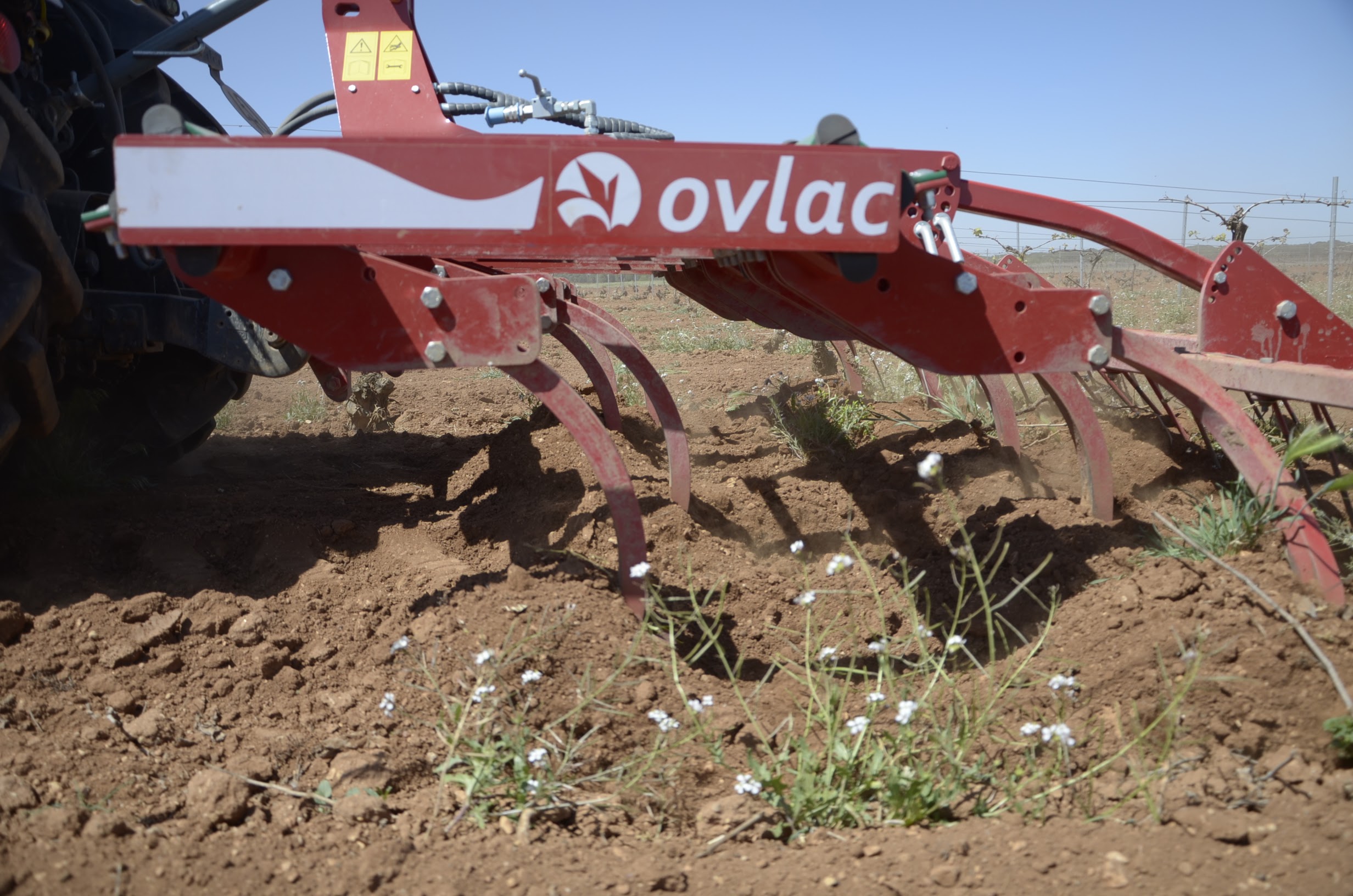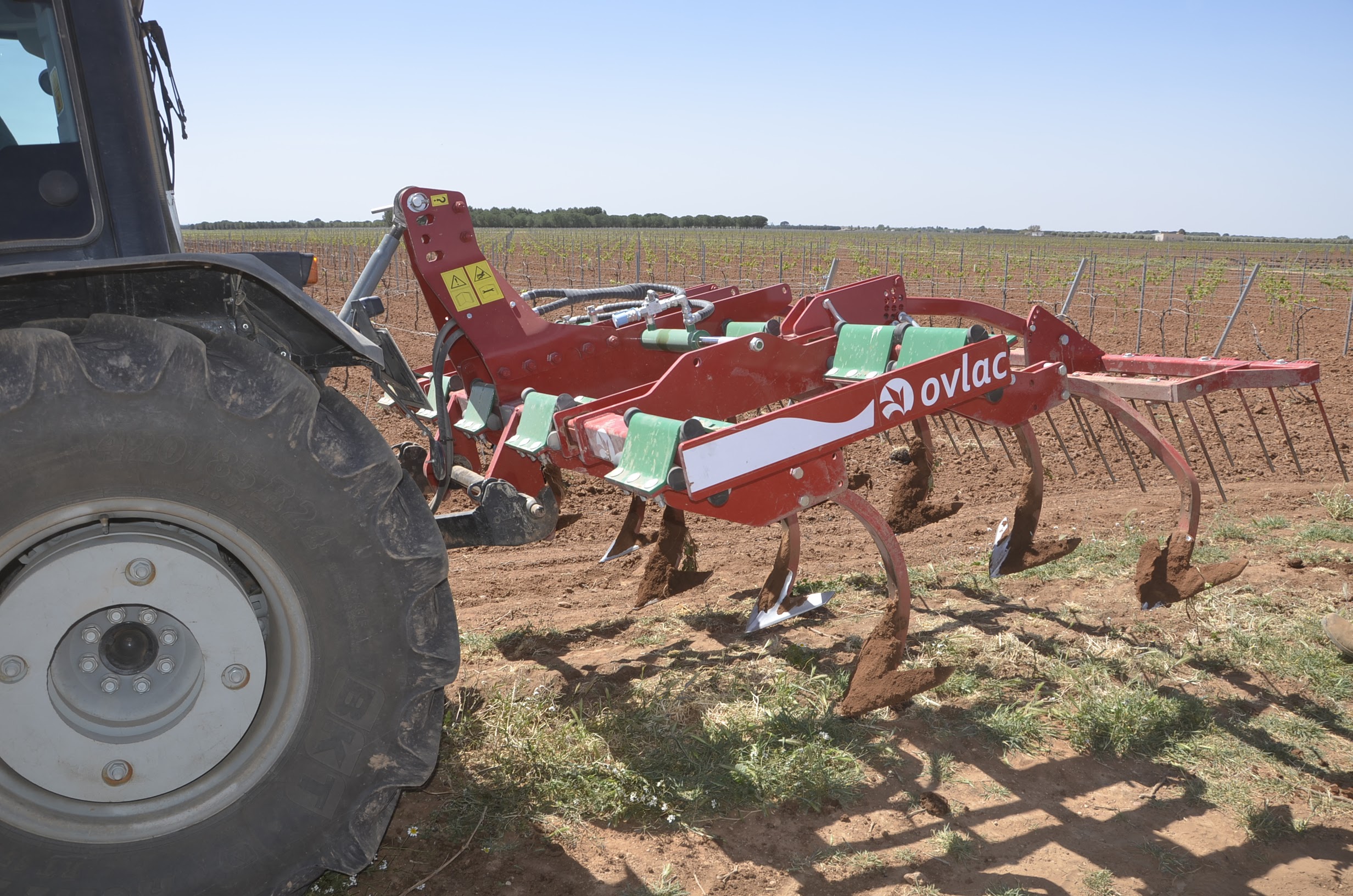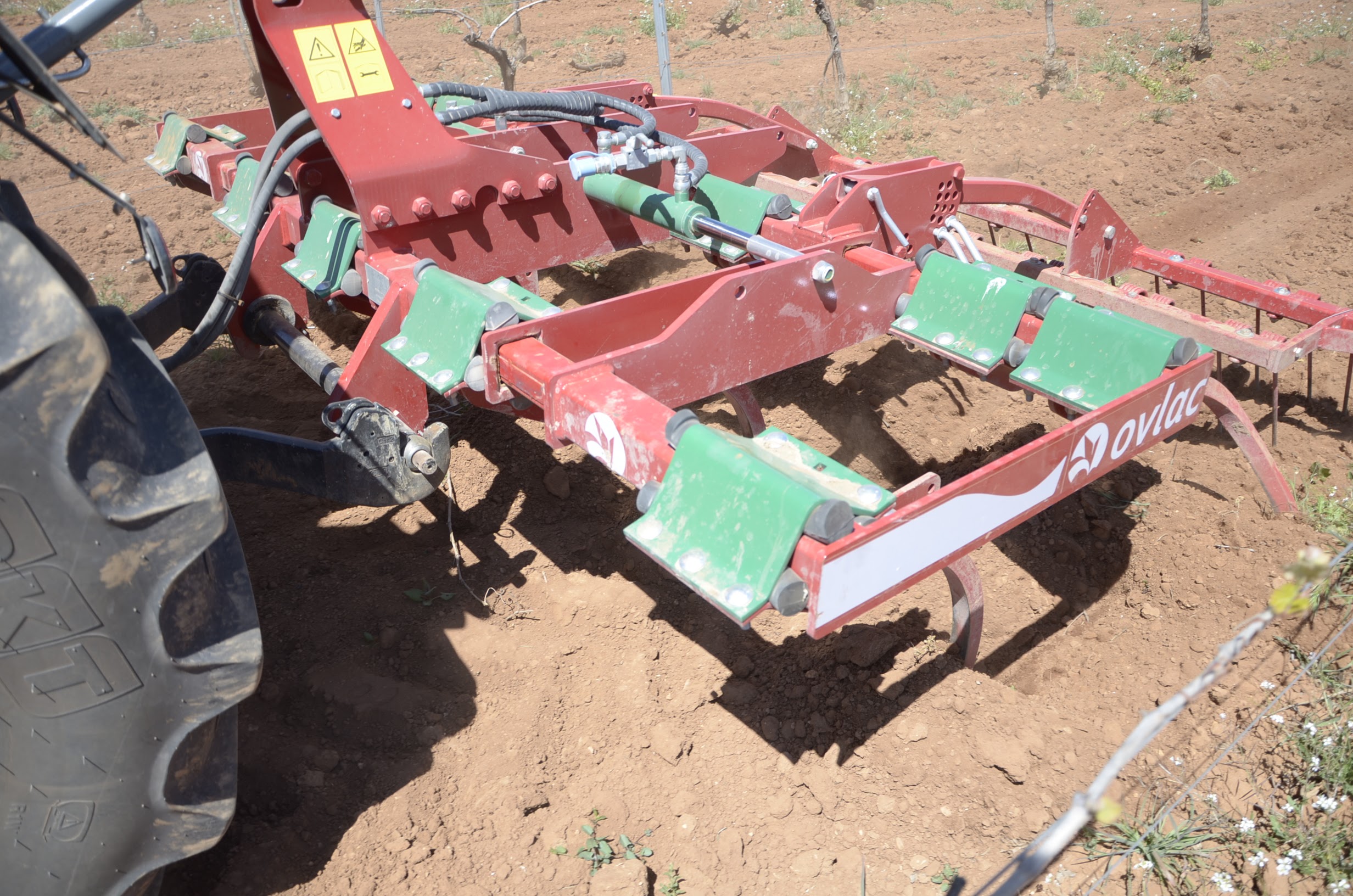 El minichisel viña es una versión del popular Minichisel de Ovlac que cuenta con una configuración muy parecida (brazos de 35x35mm, gran despeje y sistema Non Stop por elastómeros de goma 100% libre de mantenimiento). Los brazos están posicionados en distintas líneas dentro de la misma fila para evitar embozamientos (pensamos que una mejora sería una configuración de cuatro filas de brazos). Suele ser muy común tener viñas con diferente marco de plantación y por tanto con diferentes anchuras entre hileras, por lo que el marco telescópico (hidráulico) es fundamental en este tipo de cultivadores.