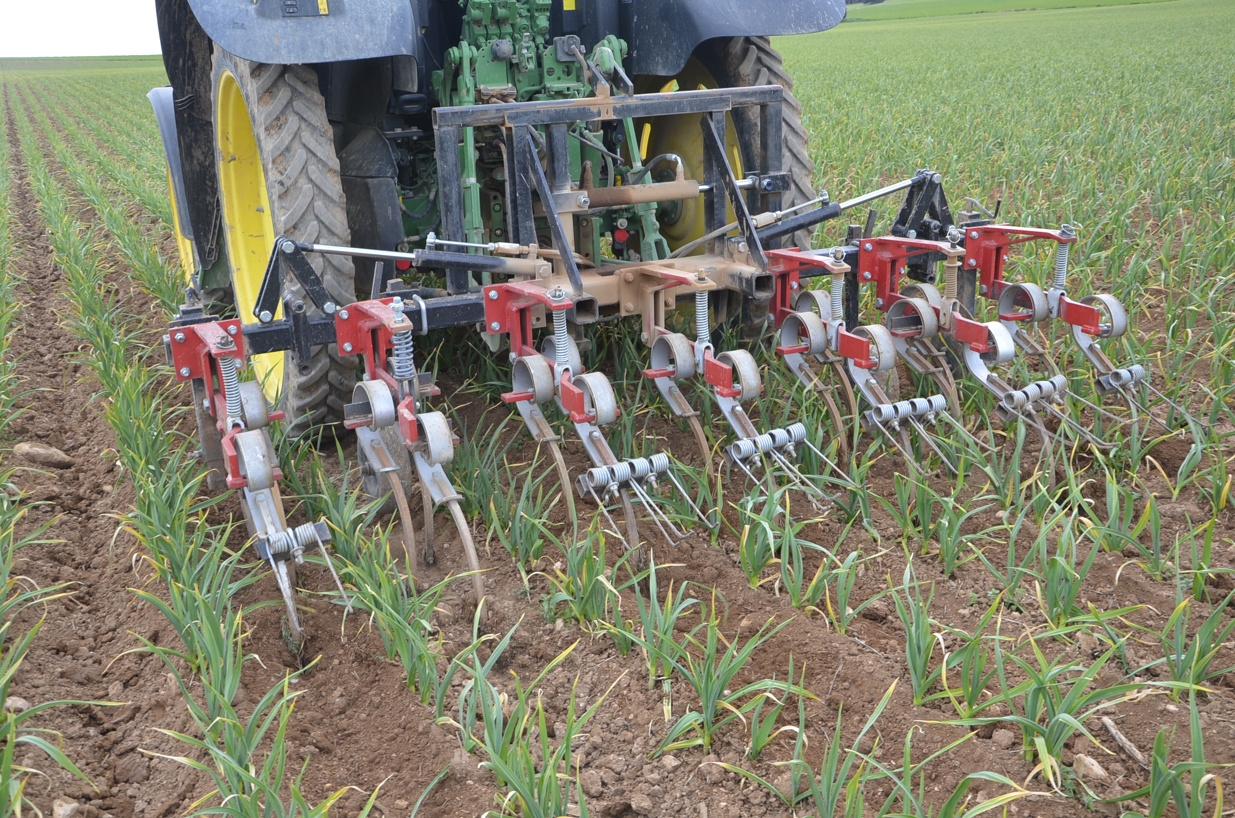 El objetivo de este trabajo es eliminar las malas hierbas de forma mecánica (también se pueden hacer algunos tratamientos fitosanitarios con herbicidas selectivos) y dejar el terreno preparado para que todas las cabezas de los ajos estén bien tapadas. Otros objetivos destacables serían:
