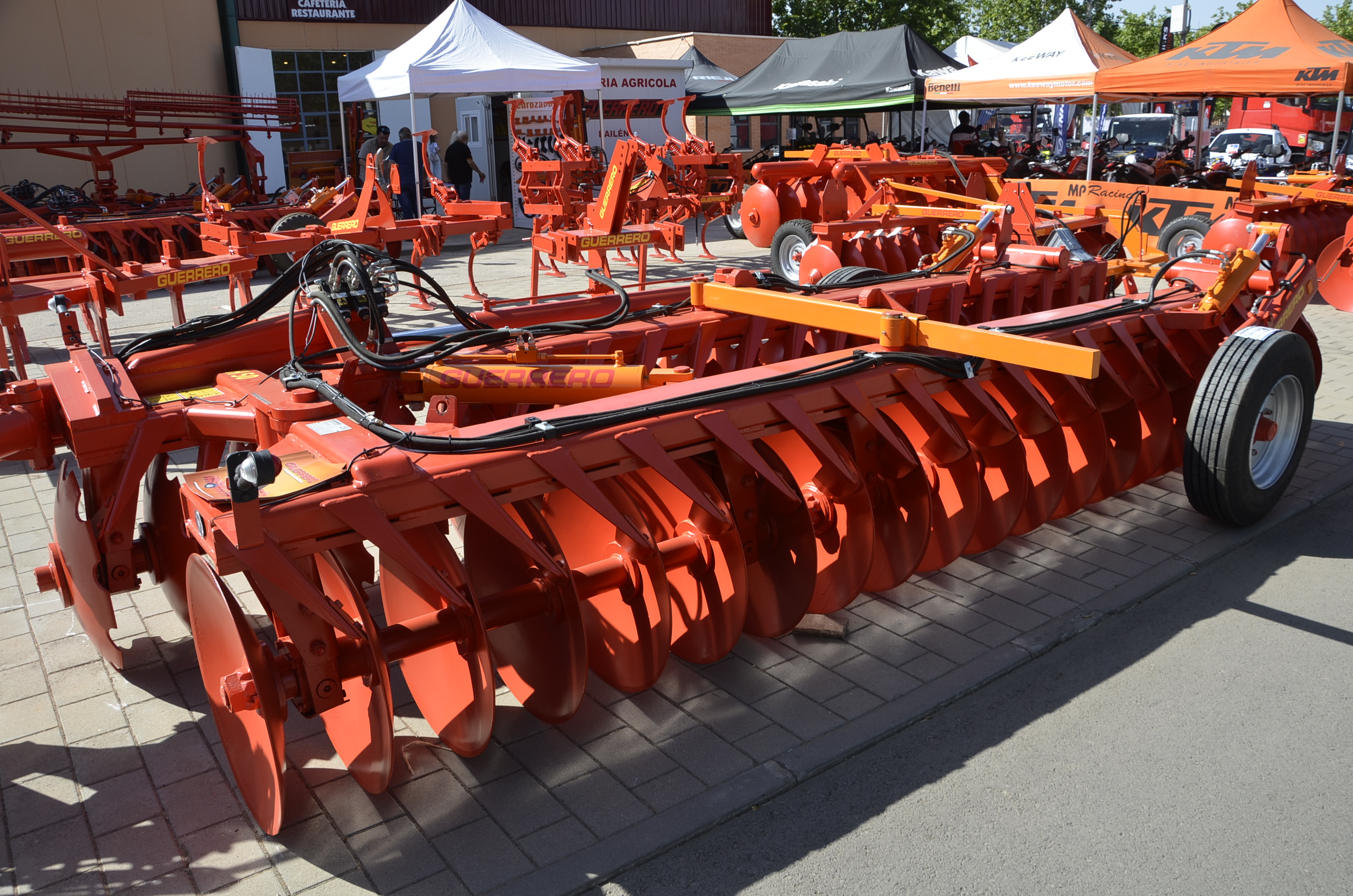 La maquinaria expuesta cubría todo tipo de tractores (especialistas, media y alta potencia) y todo tipo de aperos (preparación de suelo, abonado y cuidado de cultivos, recolección, etc.) por lo que vosotros mismos podéis comprobar en nuestras fotos, pudimos ver de todo un poco. En nuestro caso íbamos buscando rodillos y pudimos ver varios modelos de diferentes fabricantes.