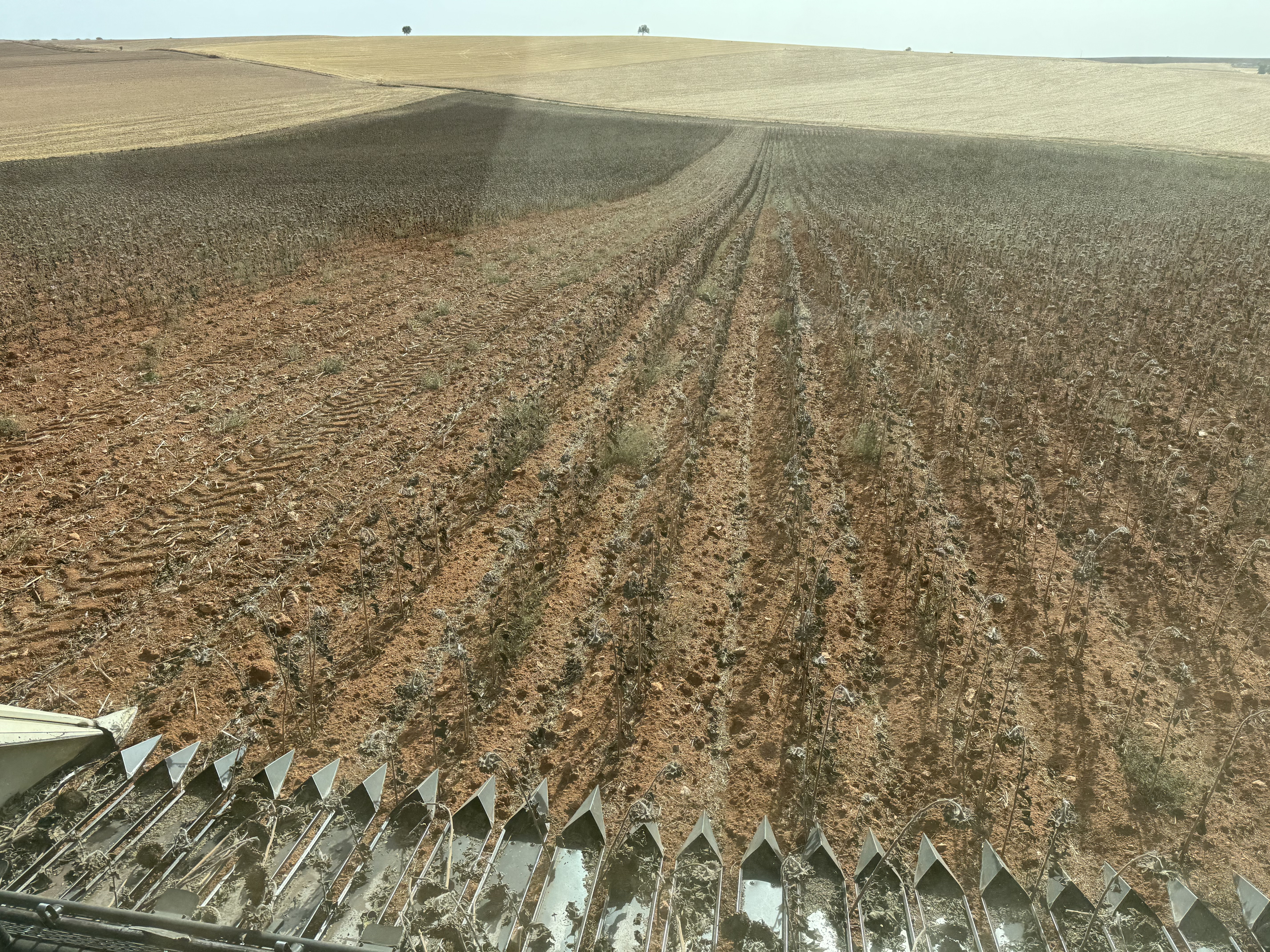Este verano ha sido especialmente duro, con temperaturas extremadamente altas durante todo agosto, lo que provocó un fuerte estrés hídrico en las plantas. Los rendimientos han promediado en torno a 800 kg/ha, y con un precio bastante bajo (unos 450 €/tonelada), se ha convertido en un cultivo poco rentable.