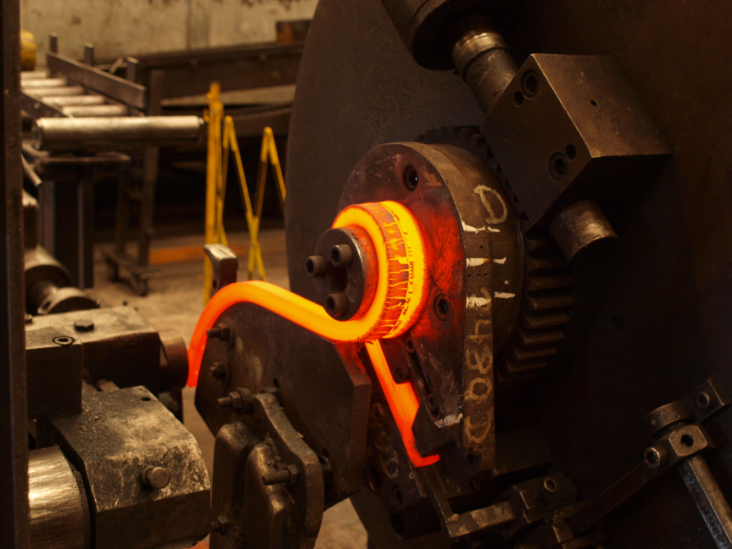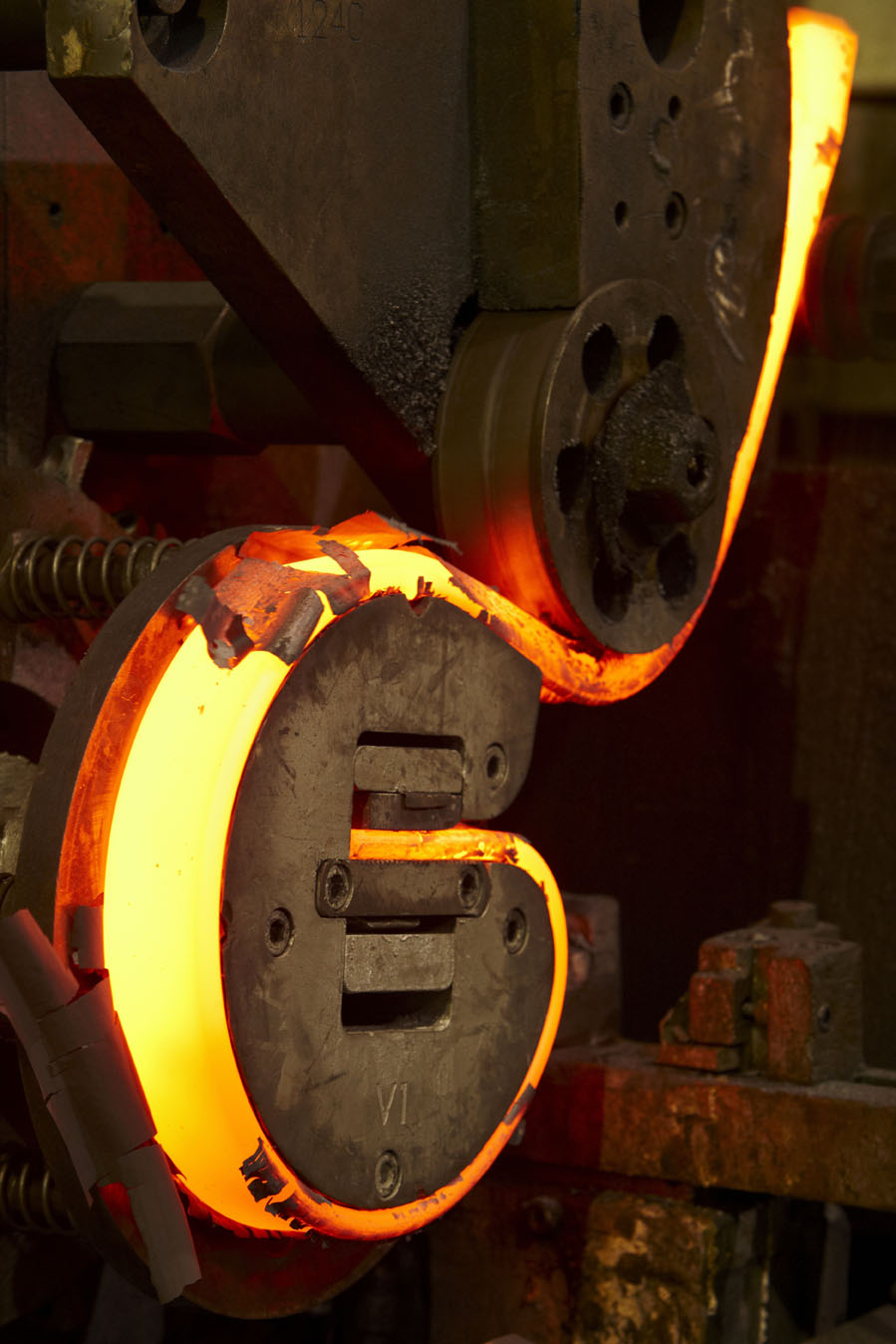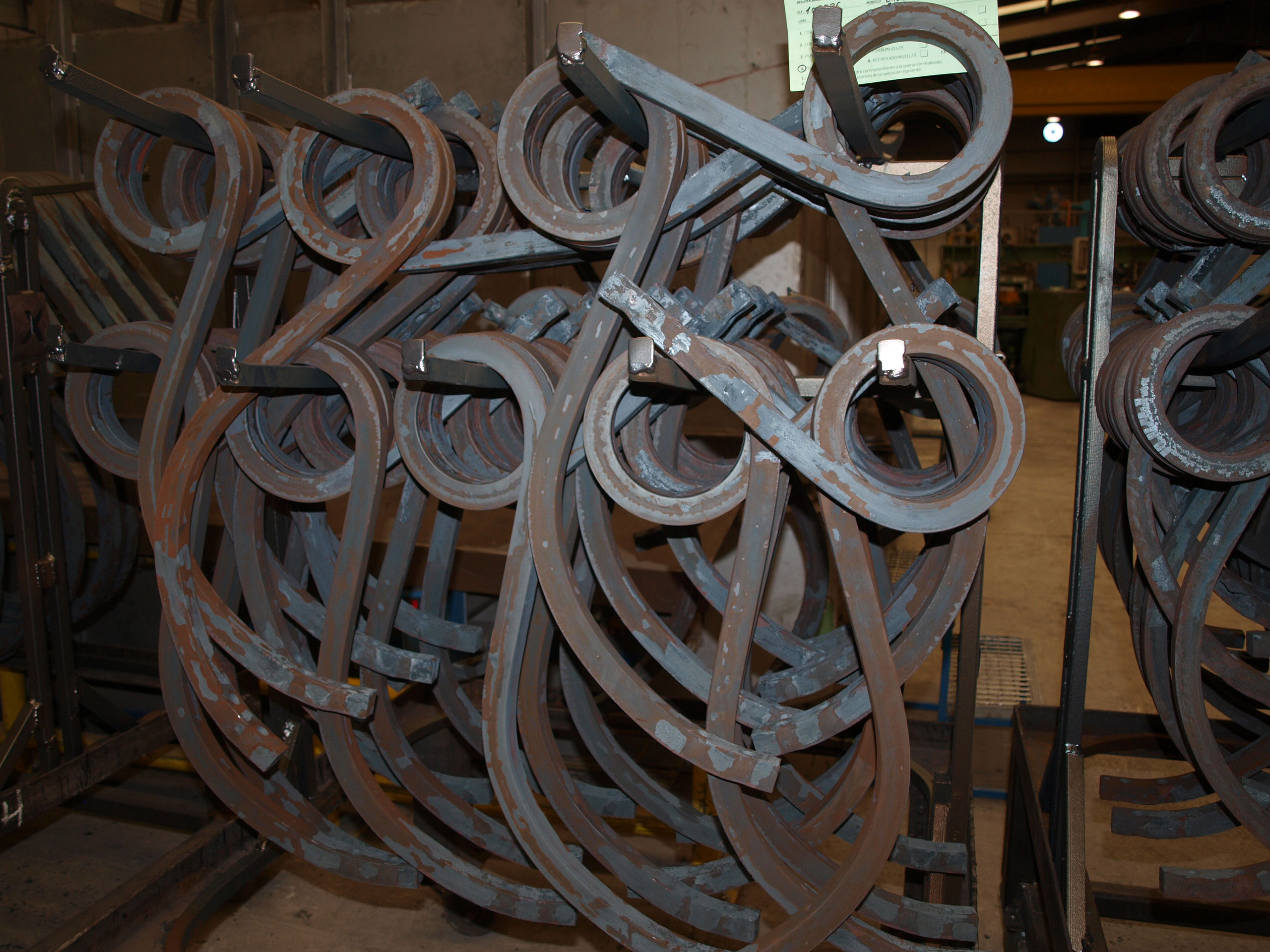 El acero de estos brazos ransome, es un acero para muelles que tiene una gran elasticidad y poder de recuperación de la geometría inicial. Bellota fabrica brazos desde perfiles de 20×20 hasta perfiles de 35×35 aportando un tratamiento térmico adecuado para obtener los mejores resultados. Bellota compra de aceristas europeos el acero de primera calidad que siempre se revisa antes de empezar a fabricar. Según la dimensión del brazo, se corta el acero a la medida requerida. En el siguiente proceso, se punzonan tanto el agujero de amarre al bastidor como los agujeros para las cultivadoras (golondrinas) a la medida requerida por el cliente. A continuación se calienta el acero a unos 900ºC para poder conformar o dar forma al brazo. En este momento es muy importante realizar el tratamiento térmico correctamente para que el acero sea resistente al desgaste, pero a su vez flexible para que no se rompa con los obstáculos que se encuentra en la tierra.