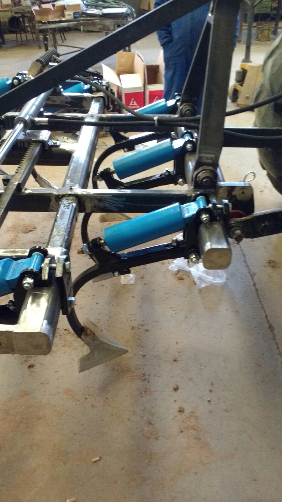 En esta ocasión os mostramos algunas fotos del proceso de fabricación de unos cultivadores extensibles para la viña. El apero permite al viticultor trabajar a diferentes anchuras (desde 1,75m hasta 2,35m o 3,3m si monta intercepas) ya que no todas las viñas tienen el mismo marco de plantación (hablaremos de esto en un futuro artículo), con un despeje de 65cm de altura y la utilización de 9 brazos Bellota libres de mantenimiento (también puede montar de otras marcas más económicas) de 40x30mm permite trabajar en situaciones con gran cantidad de residuos y a una profundidad de entre 10 y 25 cm. Los brazos pueden estar en dos o tres filas y el bastidor normalmente es de 80x80x8mm. Todo esto es configurable a gusto del viticultor, es decir, fabricación a la carta.