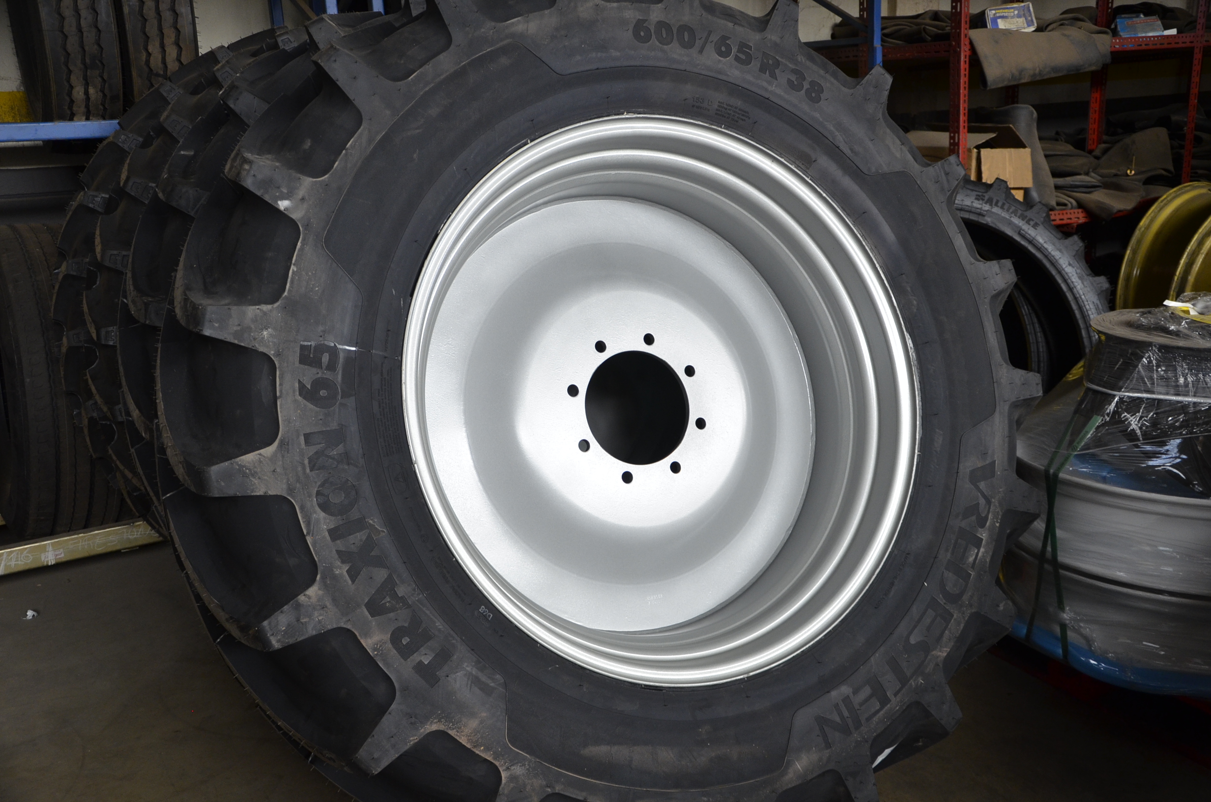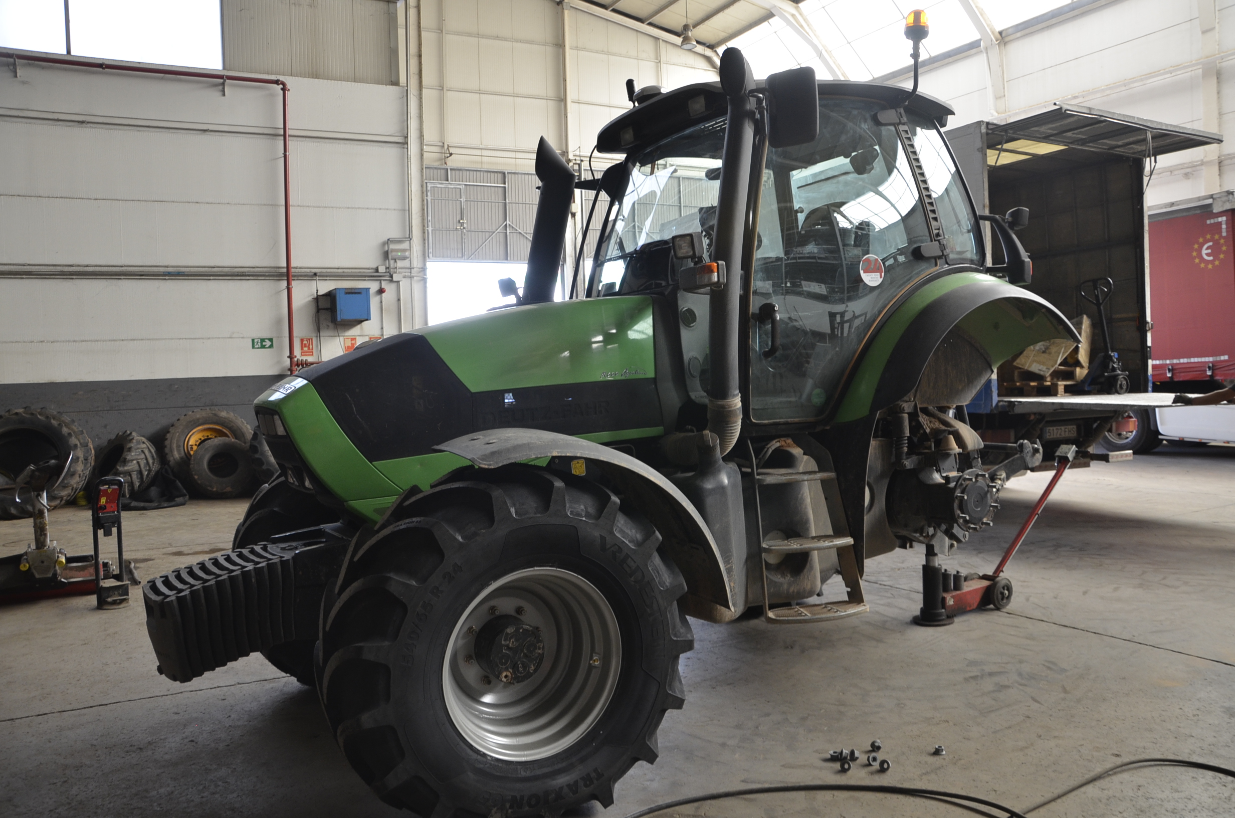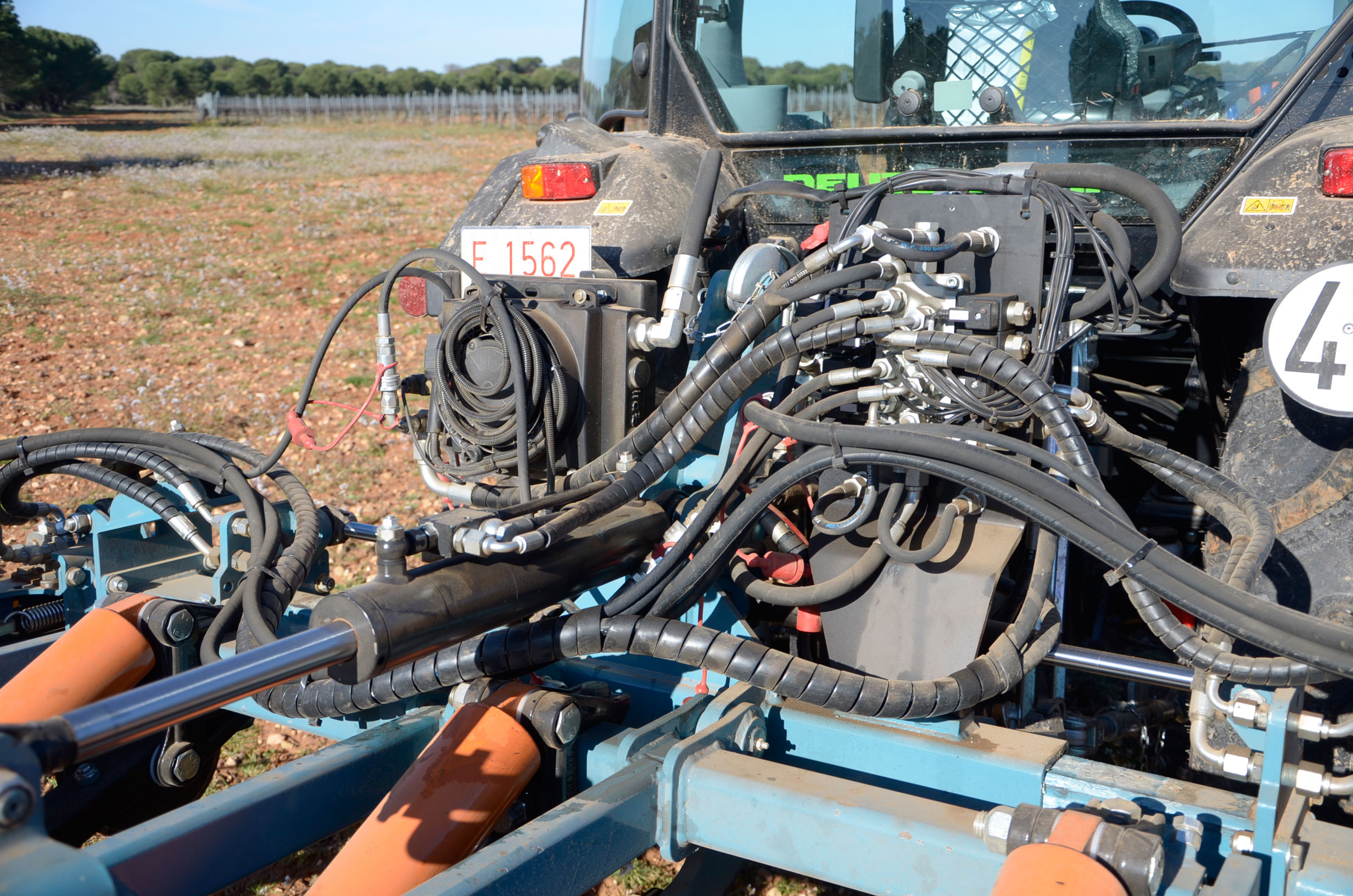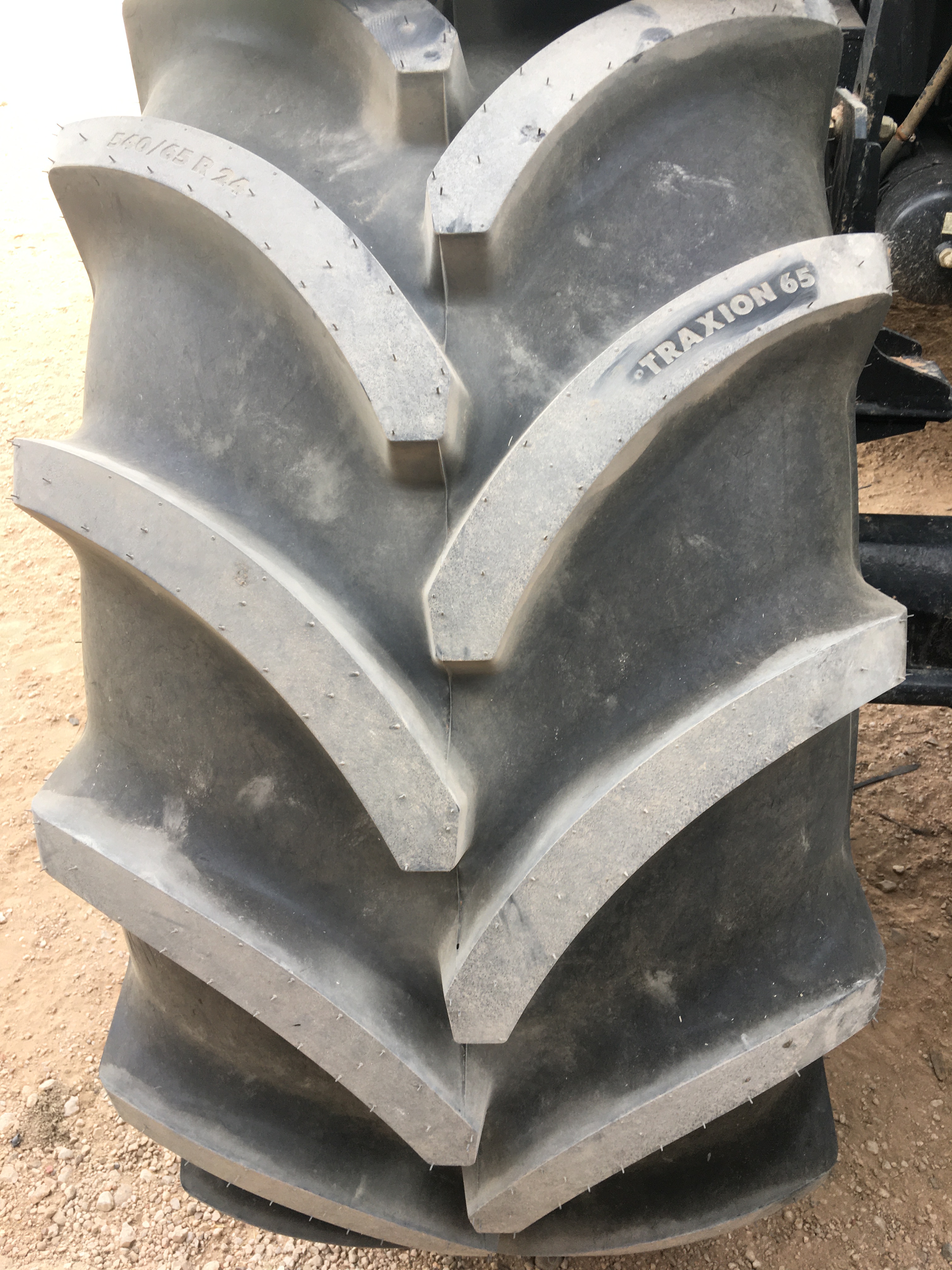 Hace unos meses decidimos cambiar los neumáticos de nuestro tractor. Las ruedas delanteras después de casi 5.000 horas de trabajo ya estaban pidiendo cambio. Nuestra elección fue fácil: neumáticos Vredestein Traxion 65. Además, queríamos pasar a unas medias más anchas para así tener menos compactación de suelo y tuvimos que reemplazar también los neumáticos traseros que estaban a medio uso. Evidentemente también supuso cambio de llantas… Pinchazos Vargas-Esneagri lo hizo sin problemas ya que para ellos son trabajos muy cotidianos. De esta forma, pasamos de unas medidas 480/70R24 y 520/70R38 a 540/65R24 y 600/65R38. Al no tener agua en los neumáticos (antes si llevábamos en los delanteros), hemos aligerado unos 500 kg y hemos mejorado la tracción (las presiones más recomendadas para estos neumáticos es de 1,3 bar para los delanteros y 1,5 bar para los traseros).