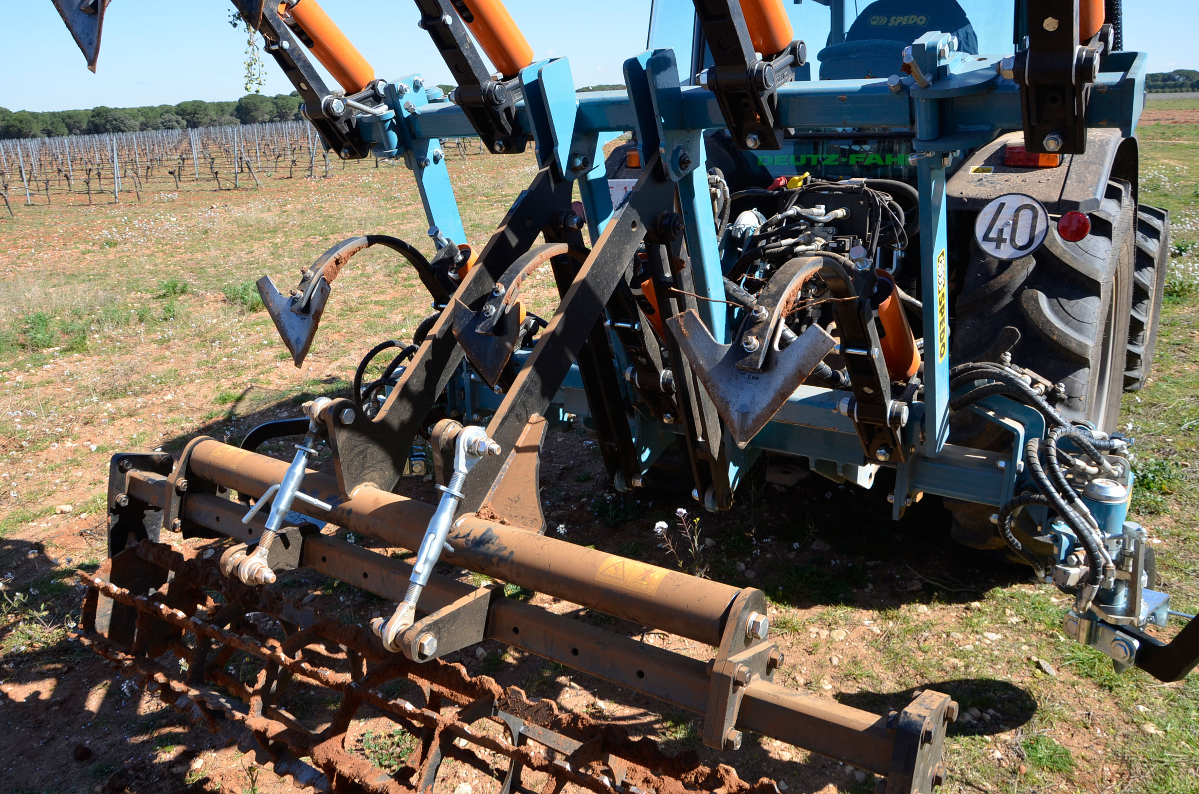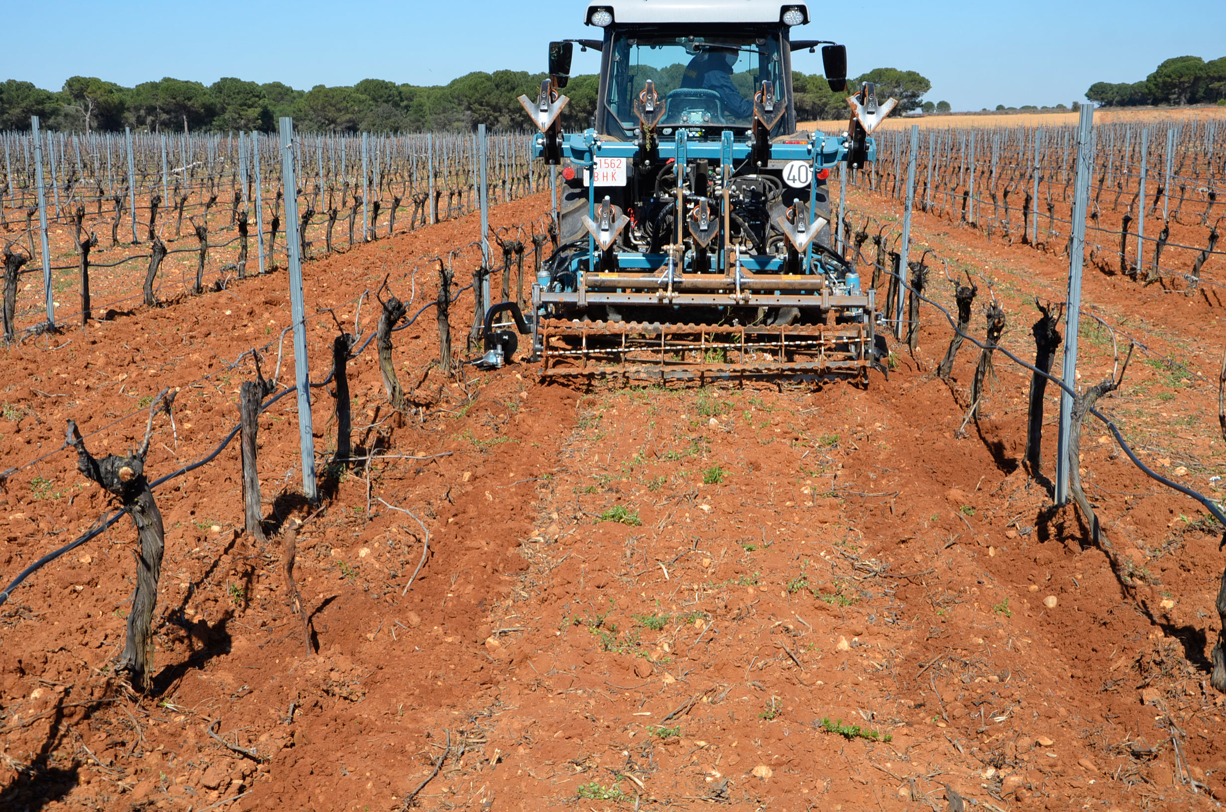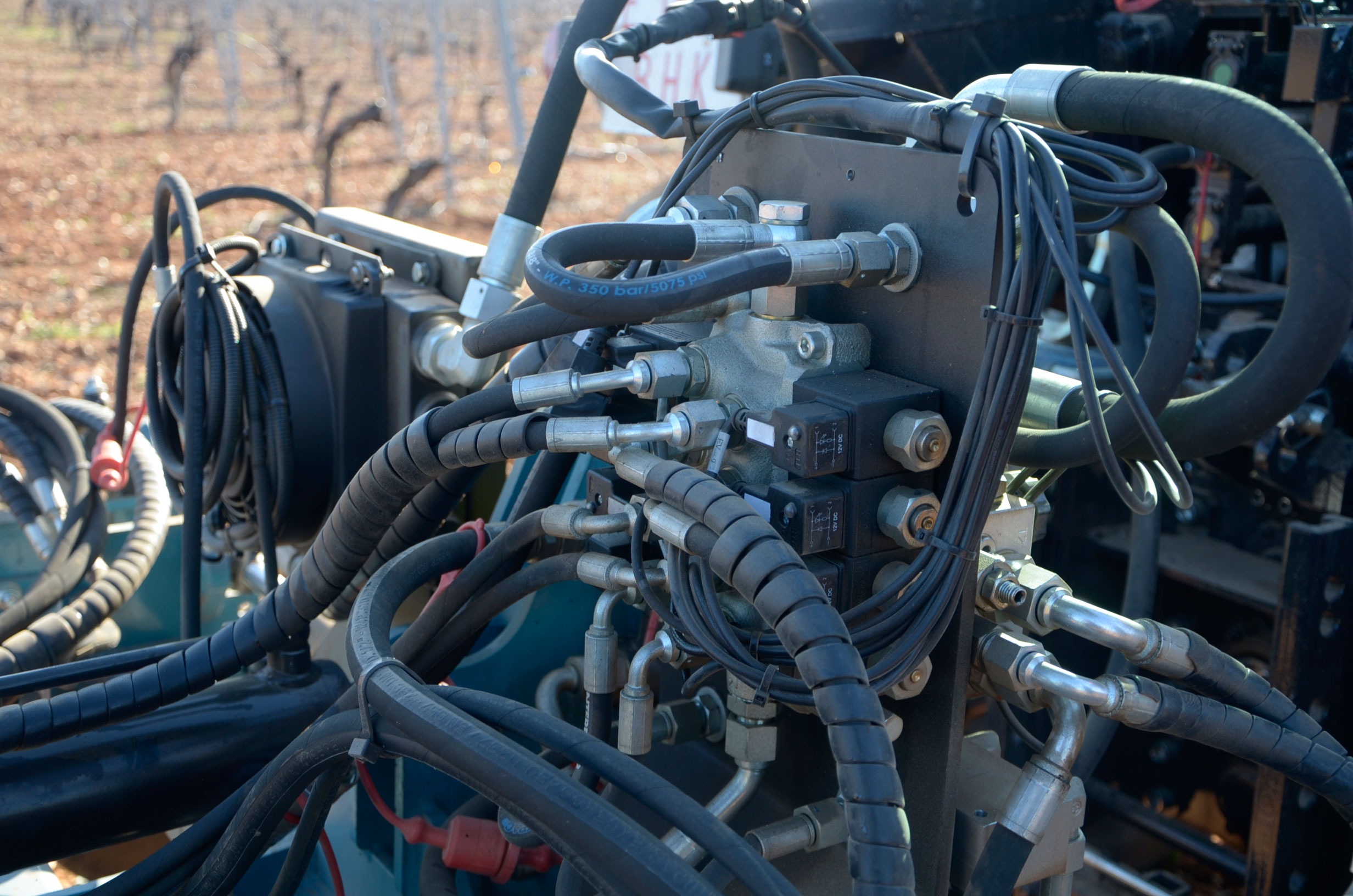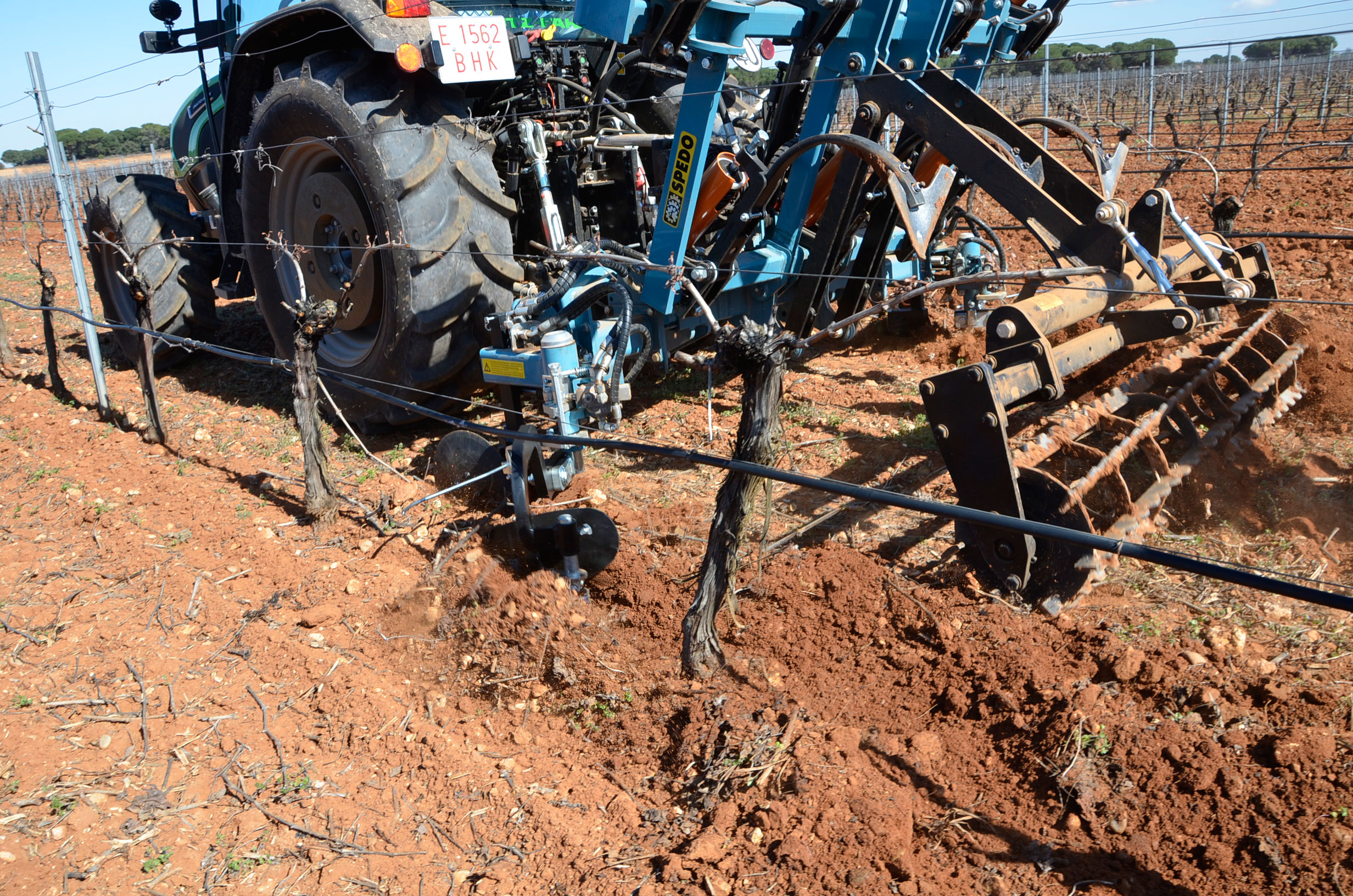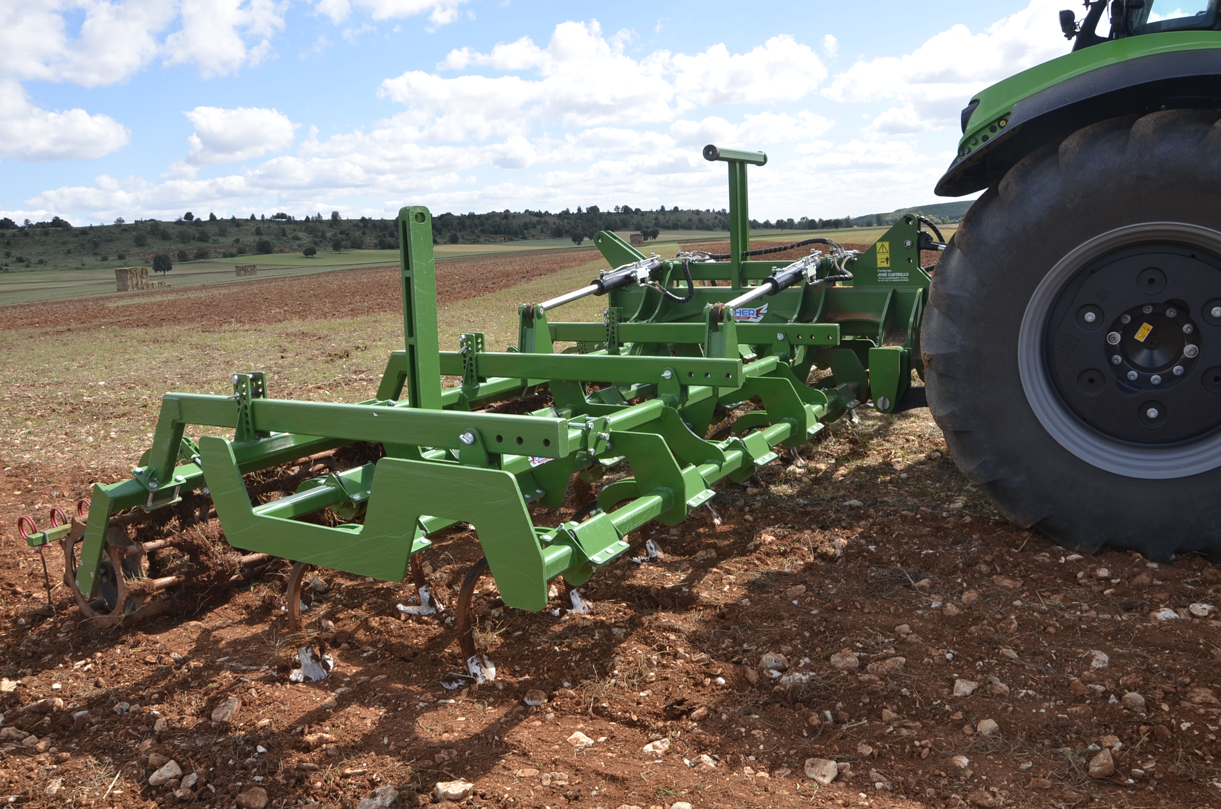 Hace unos meses decidimos cambiar los neumáticos de nuestro tractor. Las ruedas delanteras después de casi 5.000 horas de trabajo ya estaban pidiendo cambio. Nuestra elección fue fácil: neumáticos Vredestein Traxion 65. Además, queríamos pasar a unas medias más anchas para así tener menos compactación de suelo y tuvimos que reemplazar también los neumáticos traseros que estaban a medio uso. Evidentemente también supuso cambio de llantas… Pinchazos Vargas-Esneagri lo hizo sin problemas ya que para ellos son trabajos muy cotidianos. De esta forma, pasamos de unas medidas 480/70R24 y 520/70R38 a 540/65R24 y 600/65R38. Al no tener agua en los neumáticos (antes si llevábamos en los delanteros), hemos aligerado unos 500 kg y hemos mejorado la tracción (las presiones más recomendadas para estos neumáticos es de 1,3 bar para los delanteros y 1,5 bar para los traseros).
