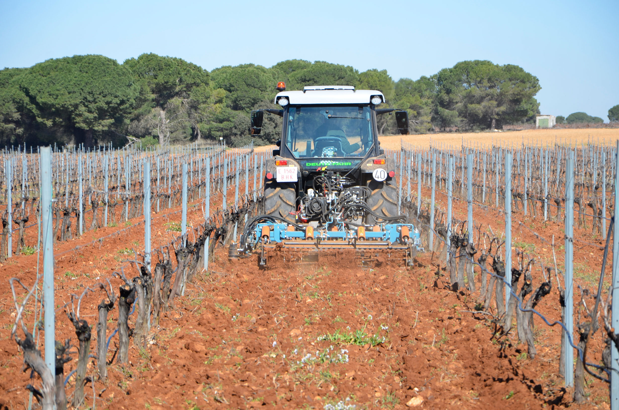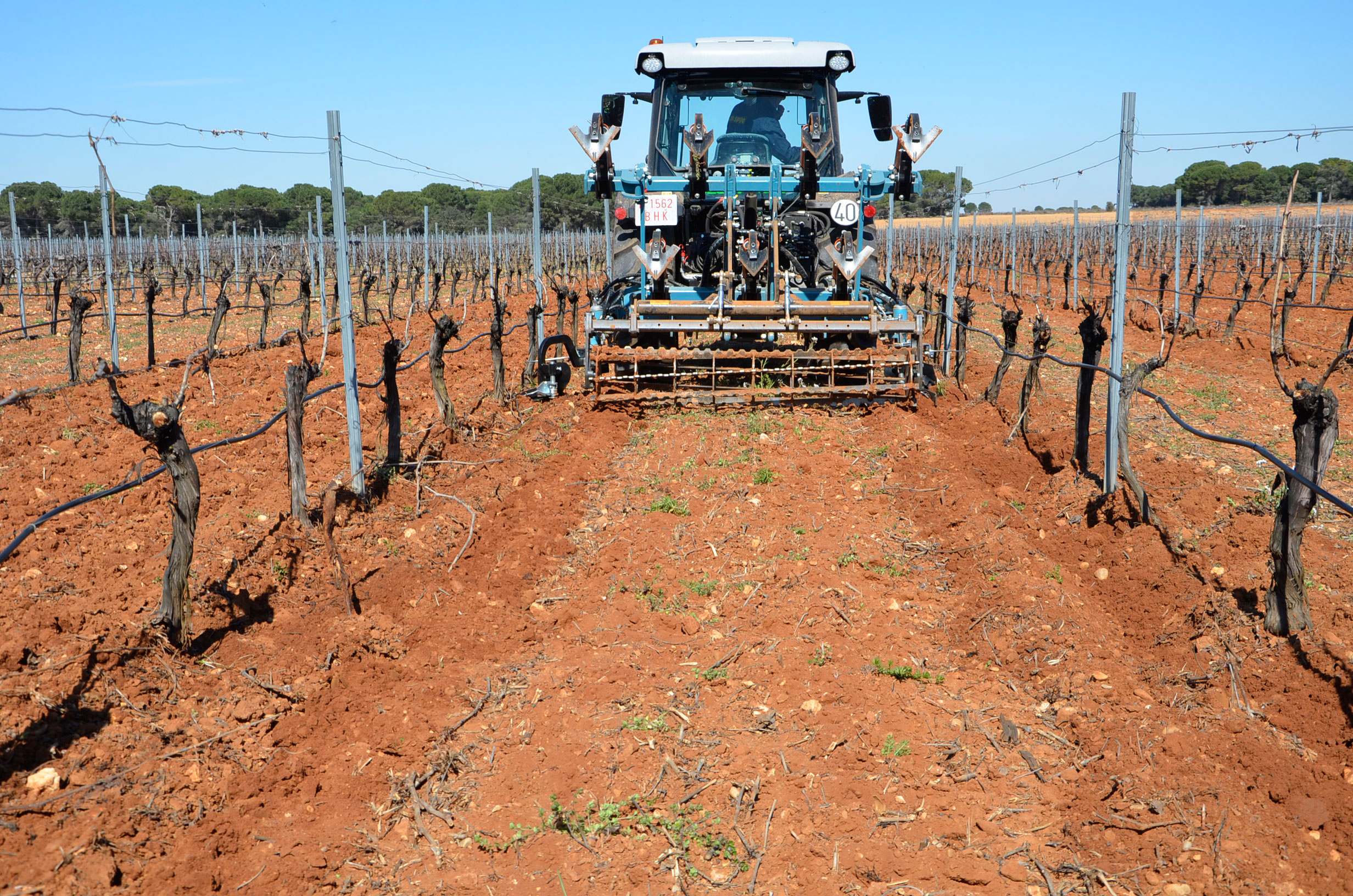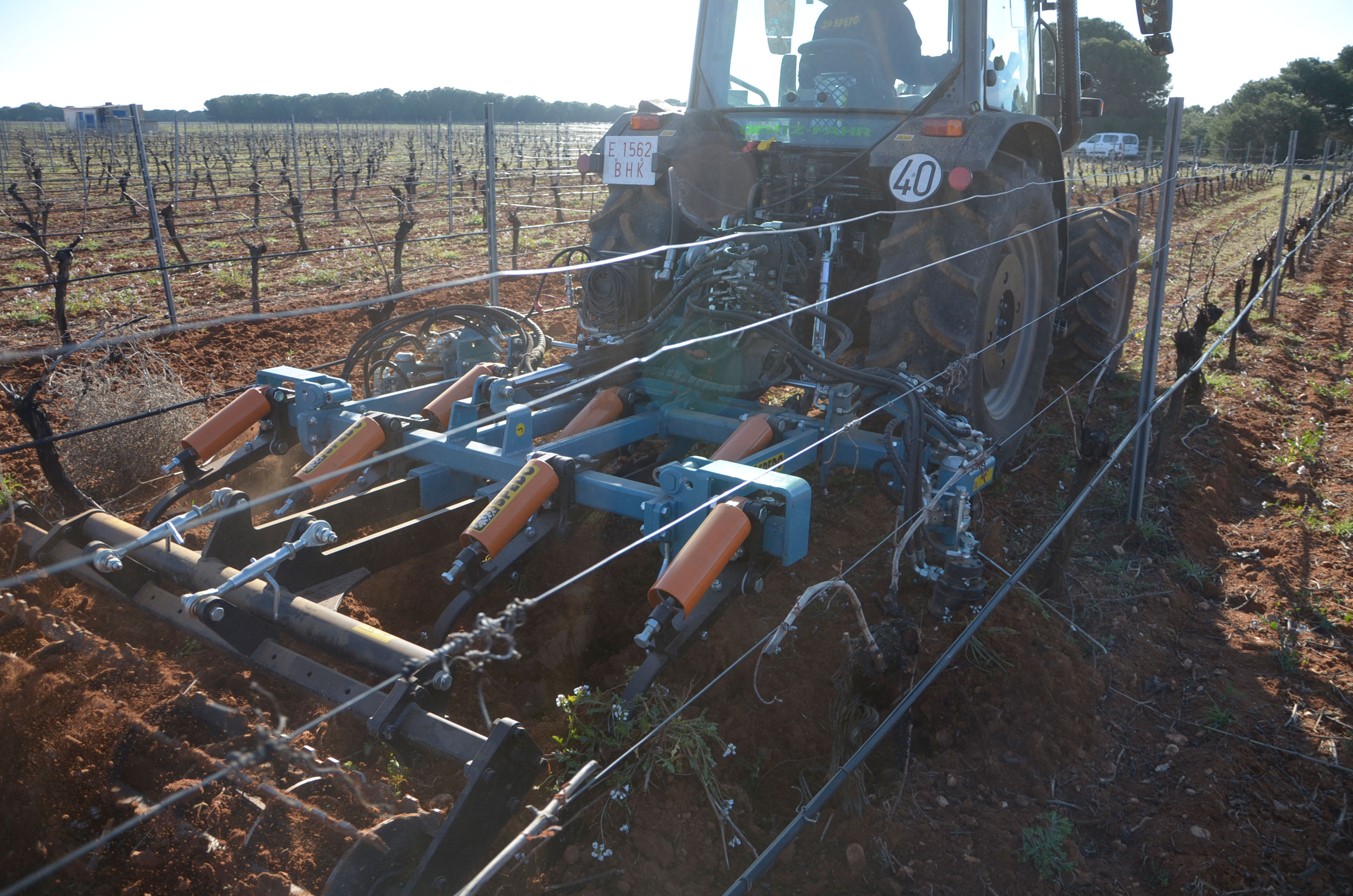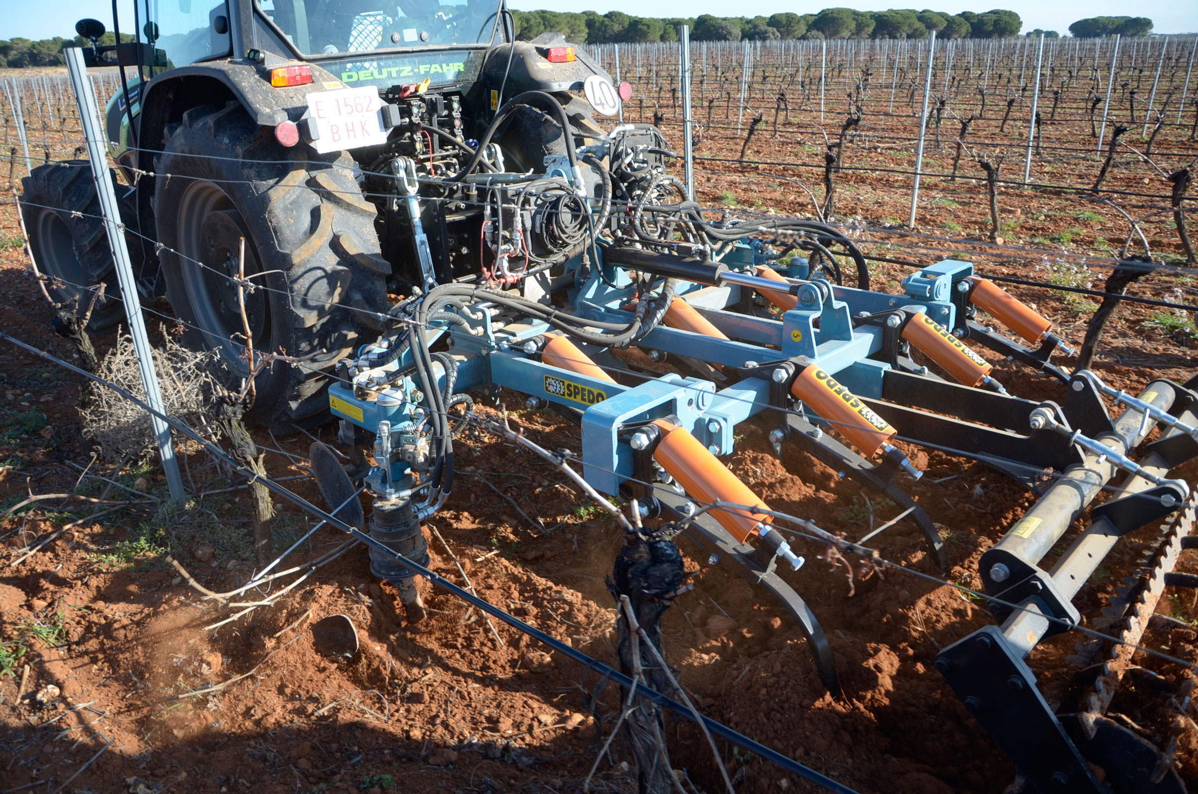 Hace unos meses decidimos cambiar los neumáticos de nuestro tractor. Las ruedas delanteras después de casi 5.000 horas de trabajo ya estaban pidiendo cambio. Nuestra elección fue fácil: neumáticos Vredestein Traxion 65. Además, queríamos pasar a unas medias más anchas para así tener menos compactación de suelo y tuvimos que reemplazar también los neumáticos traseros que estaban a medio uso. Evidentemente también supuso cambio de llantas… Pinchazos Vargas-Esneagri lo hizo sin problemas ya que para ellos son trabajos muy cotidianos. De esta forma, pasamos de unas medidas 480/70R24 y 520/70R38 a 540/65R24 y 600/65R38. Al no tener agua en los neumáticos (antes si llevábamos en los delanteros), hemos aligerado unos 500 kg y hemos mejorado la tracción (las presiones más recomendadas para estos neumáticos es de 1,3 bar para los delanteros y 1,5 bar para los traseros).
