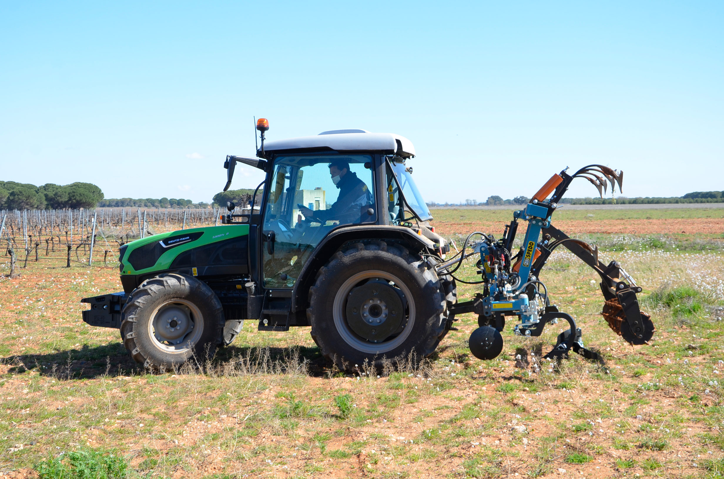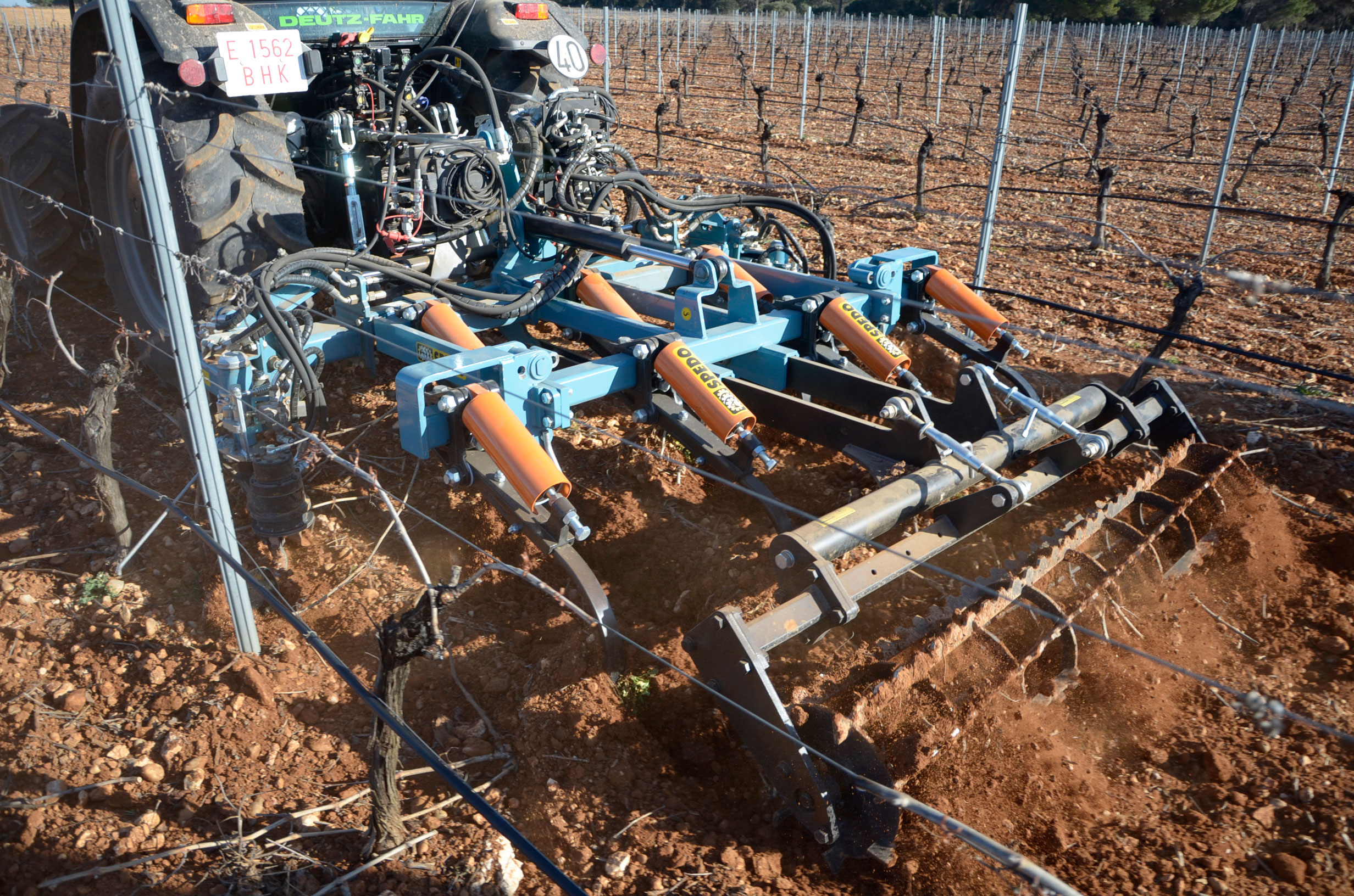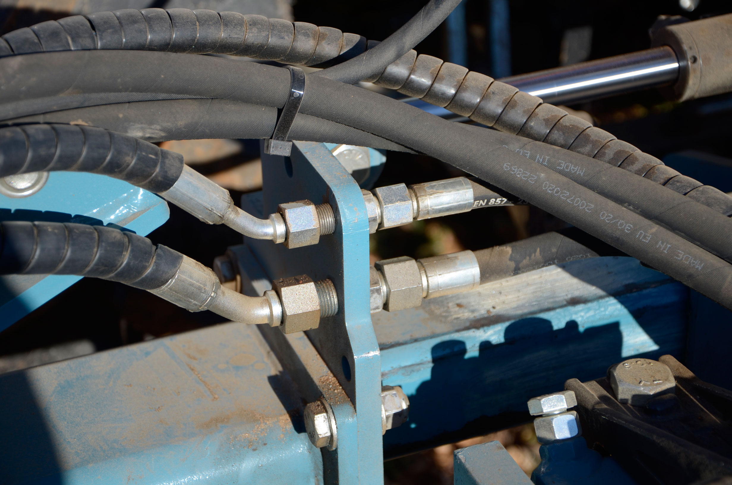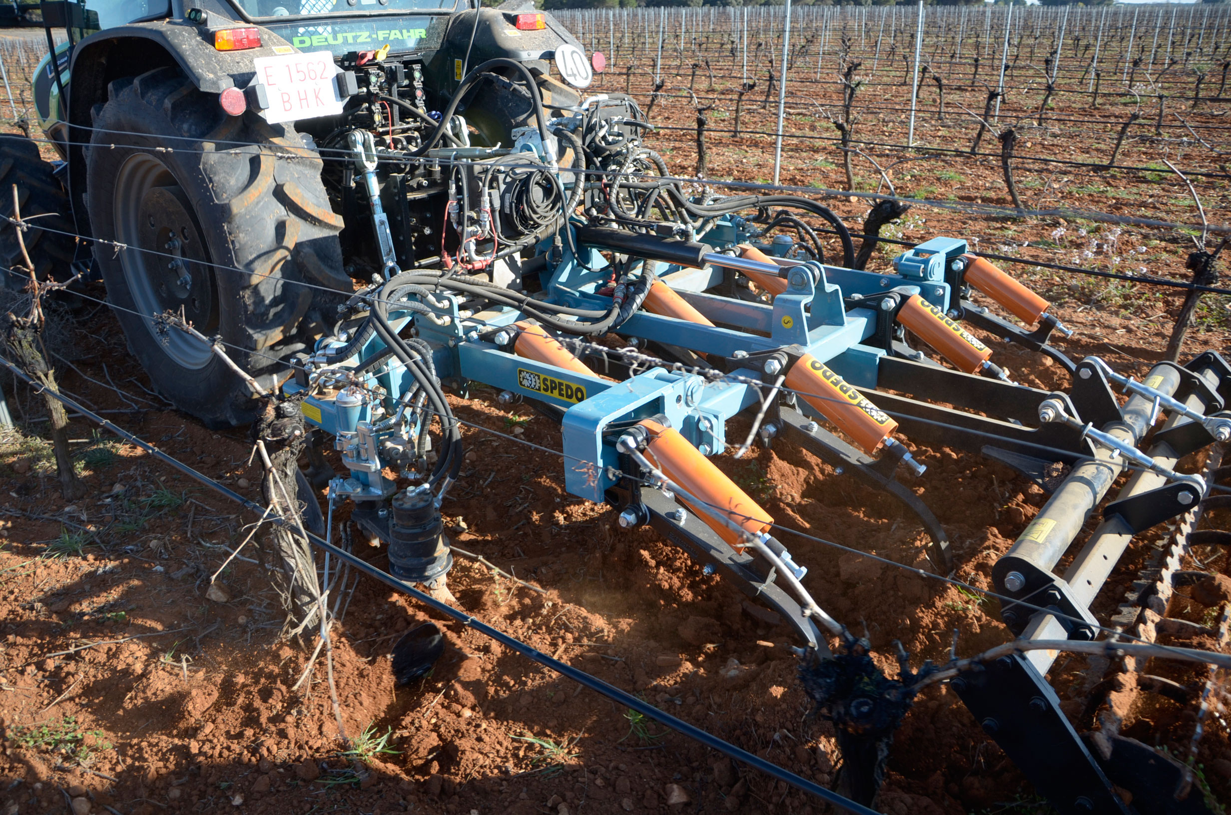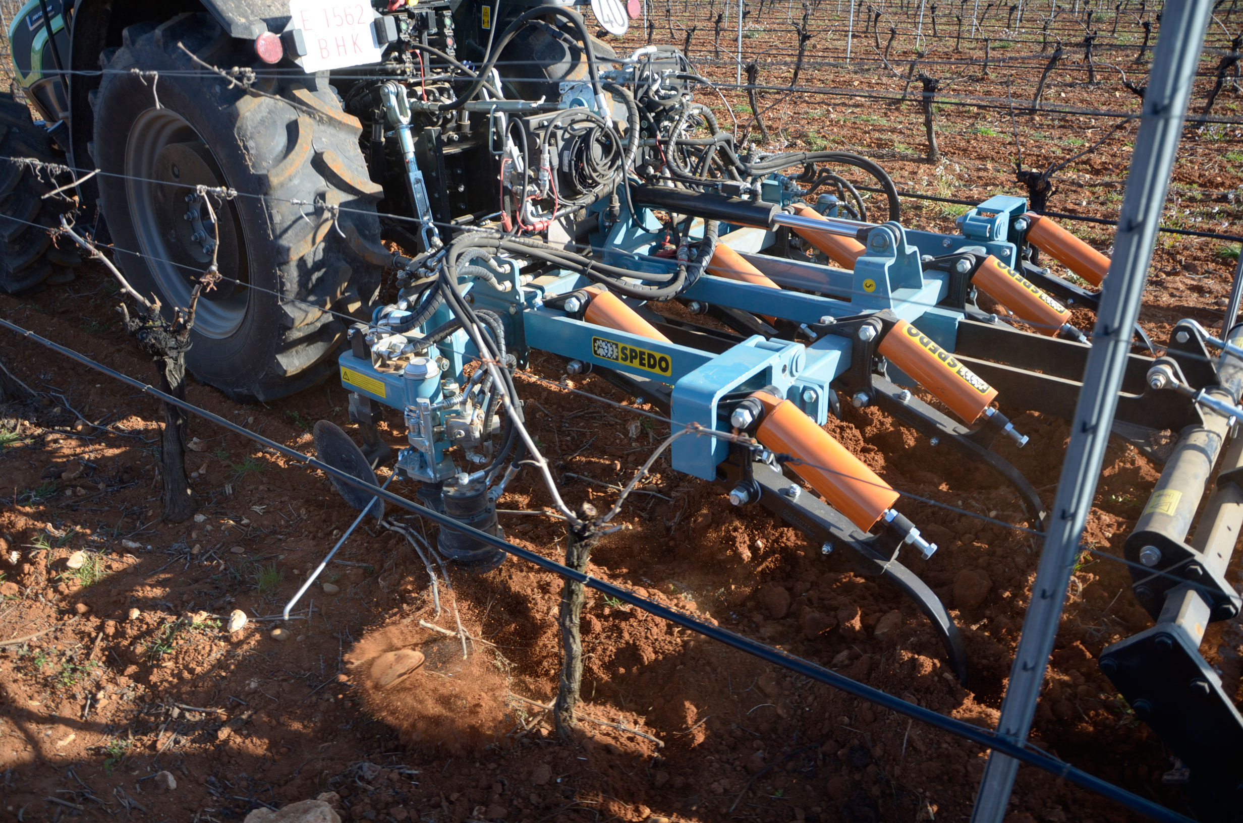 Hace unos meses decidimos cambiar los neumáticos de nuestro tractor. Las ruedas delanteras después de casi 5.000 horas de trabajo ya estaban pidiendo cambio. Nuestra elección fue fácil: neumáticos Vredestein Traxion 65. Además, queríamos pasar a unas medias más anchas para así tener menos compactación de suelo y tuvimos que reemplazar también los neumáticos traseros que estaban a medio uso. Evidentemente también supuso cambio de llantas… Pinchazos Vargas-Esneagri lo hizo sin problemas ya que para ellos son trabajos muy cotidianos. De esta forma, pasamos de unas medidas 480/70R24 y 520/70R38 a 540/65R24 y 600/65R38. Al no tener agua en los neumáticos (antes si llevábamos en los delanteros), hemos aligerado unos 500 kg y hemos mejorado la tracción (las presiones más recomendadas para estos neumáticos es de 1,3 bar para los delanteros y 1,5 bar para los traseros).