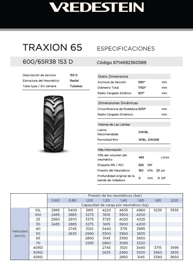 La primera sensación que tuvimos al cambiar los neumáticos fue de silencio y confort. Silencio porque por carretera el ruido ha disminuido notablemente y confort porque se nota que el tractor va mucho más suave a grandes velocidades. Sin duda alguna son las características que el neumático Vredestein garantiza. Vredestein ofrece un neumático de gran calidad que normalmente suele tener coeficientes de carga y velocidad superiores a otros neumáticos para la misma medida.