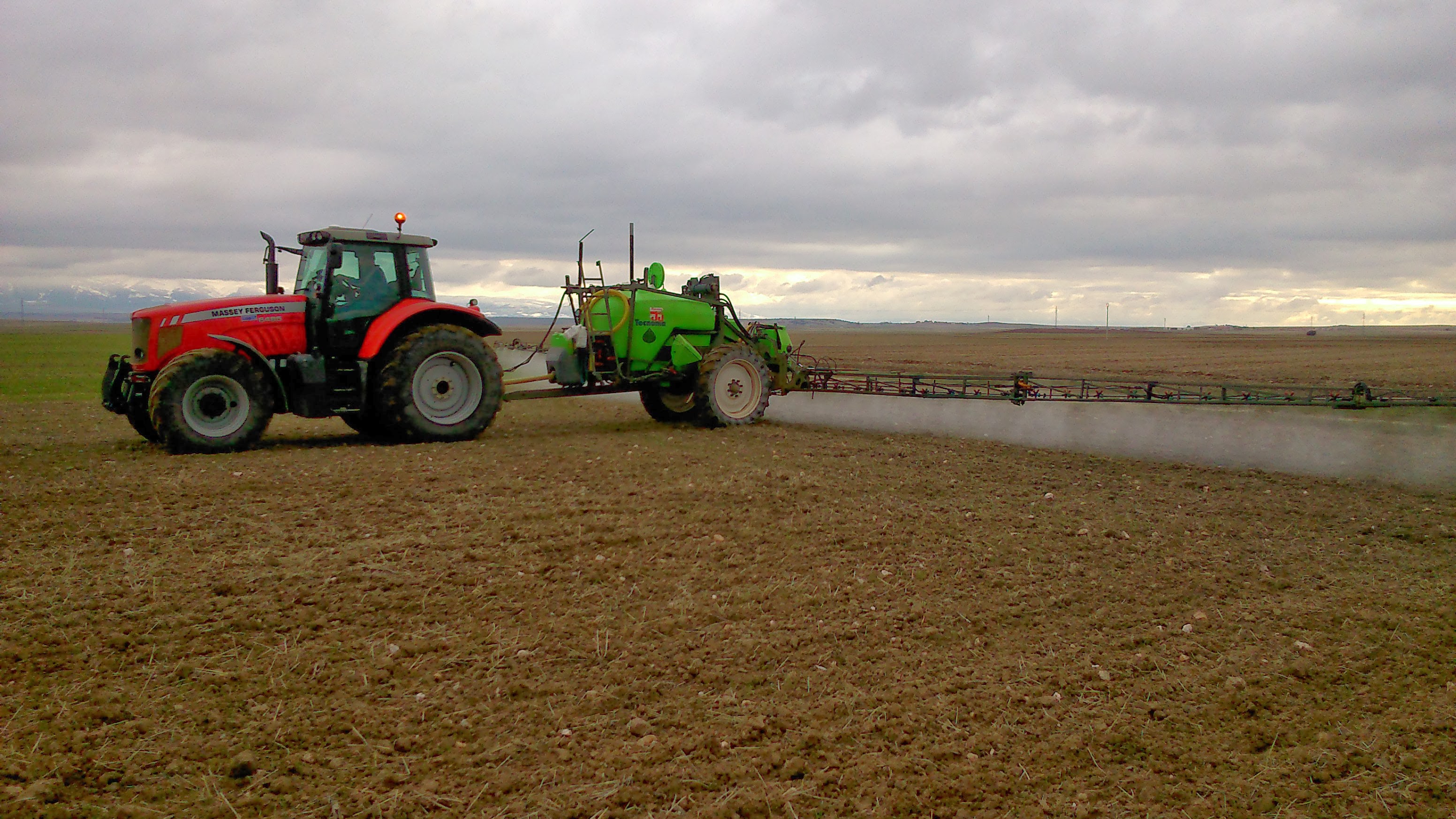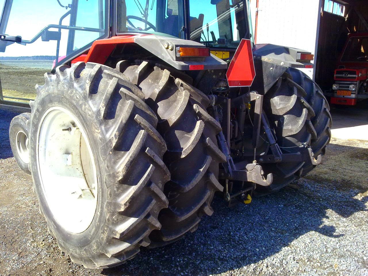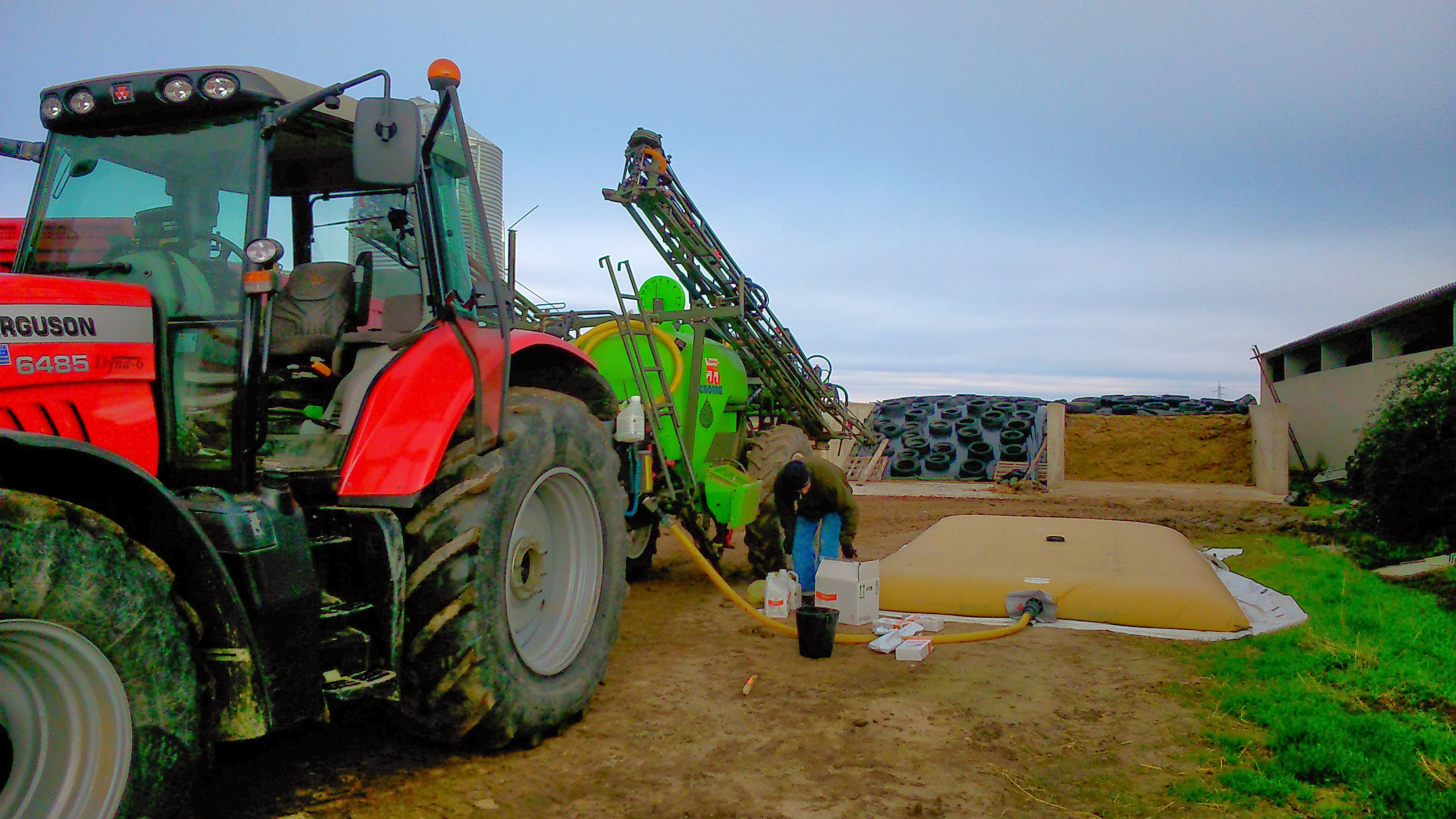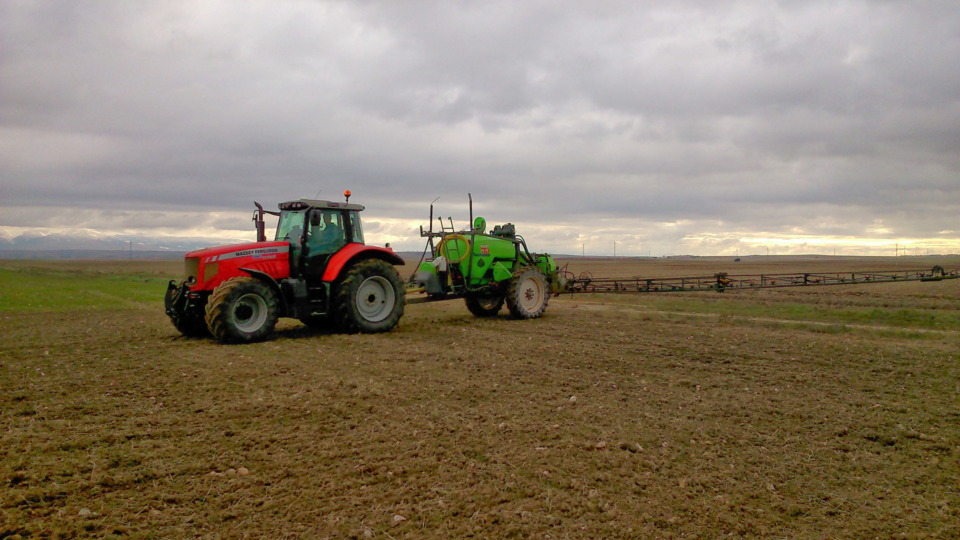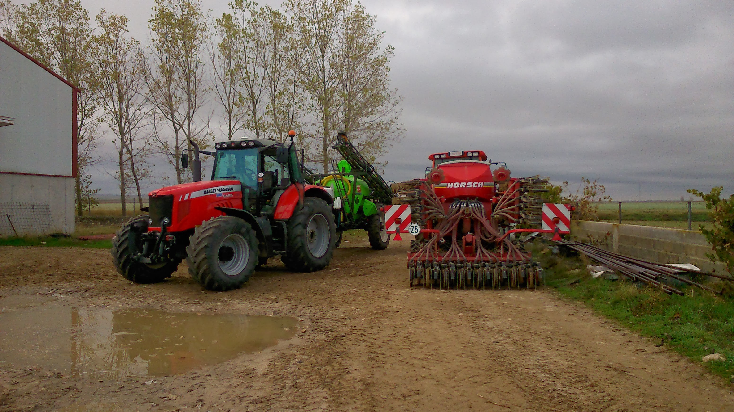 Para las tareas de siembra, normalmente utiliza su Massey-Ferguson 6130 (simple tracción) ya que tiene un mayor radio de giro. Tiene suficiente fuerza para arrastrar la sembradora sin problemas… a pesar de esto, los 300kg de los contrapesos delanteros no es suficiente en alguna ocasión. El MF 6470 trabaja también muy bien… sobre todo en parcelas grandes, aunque necesita más espacio para girar.