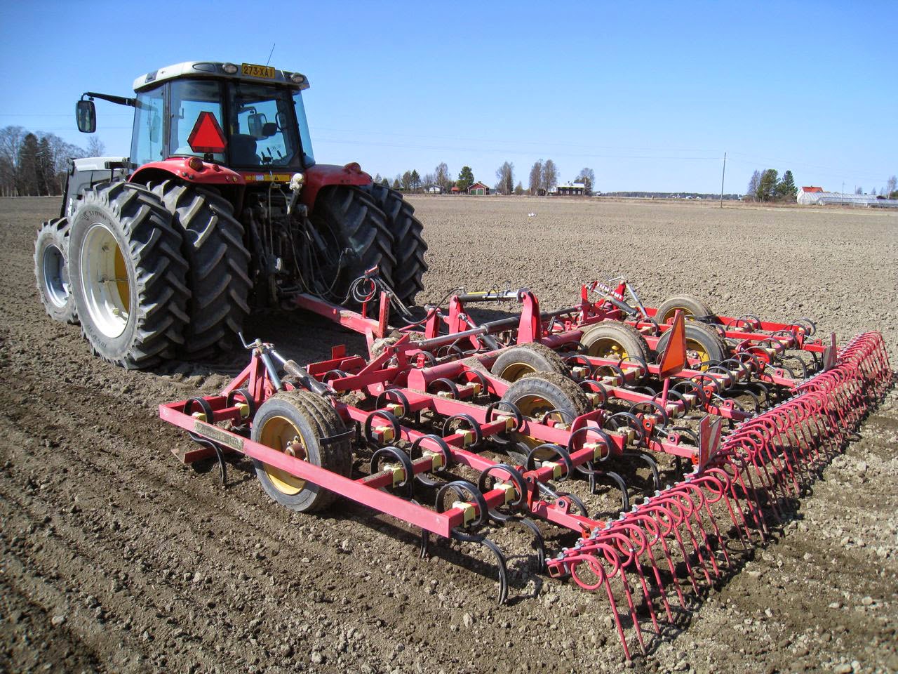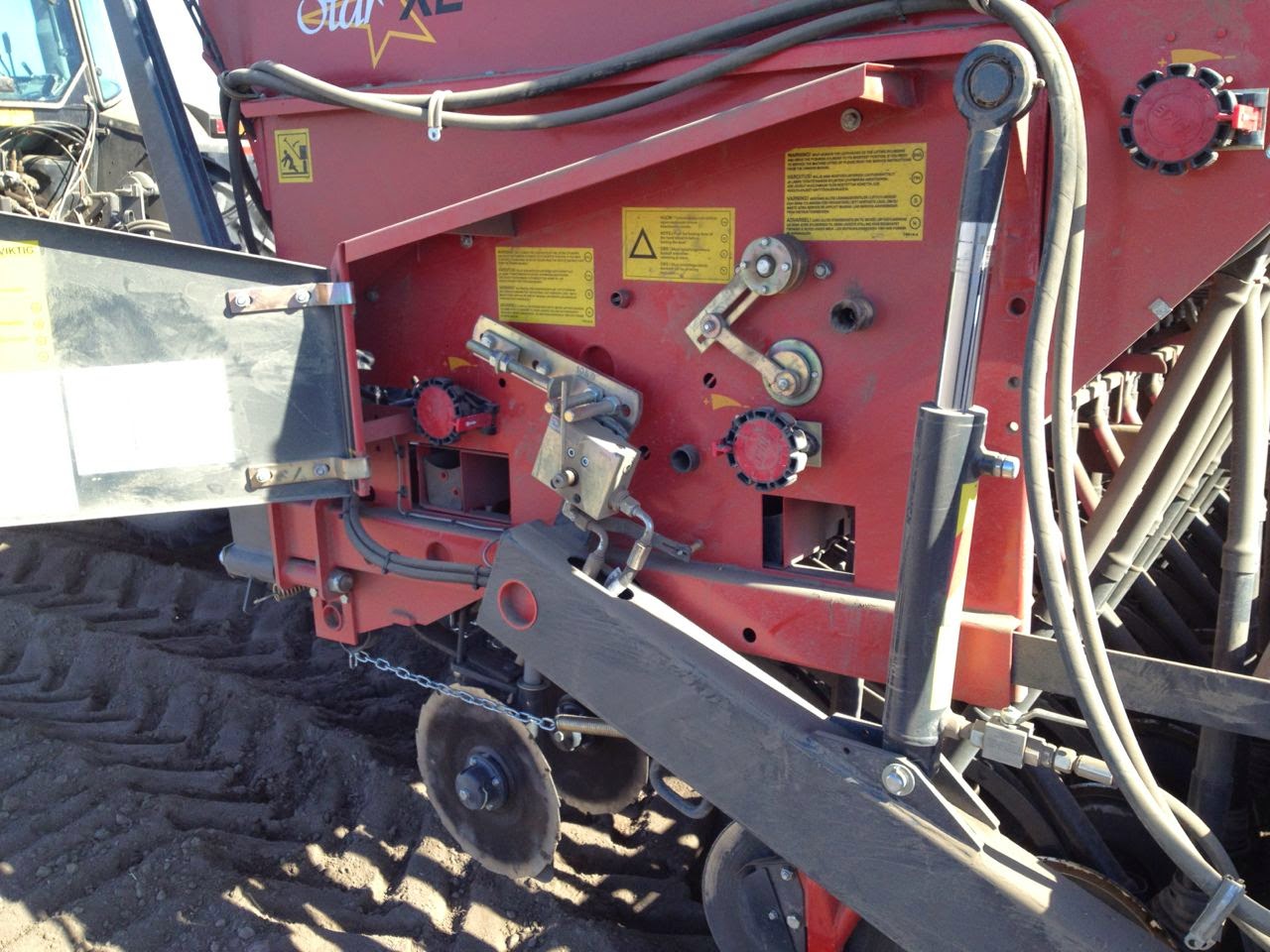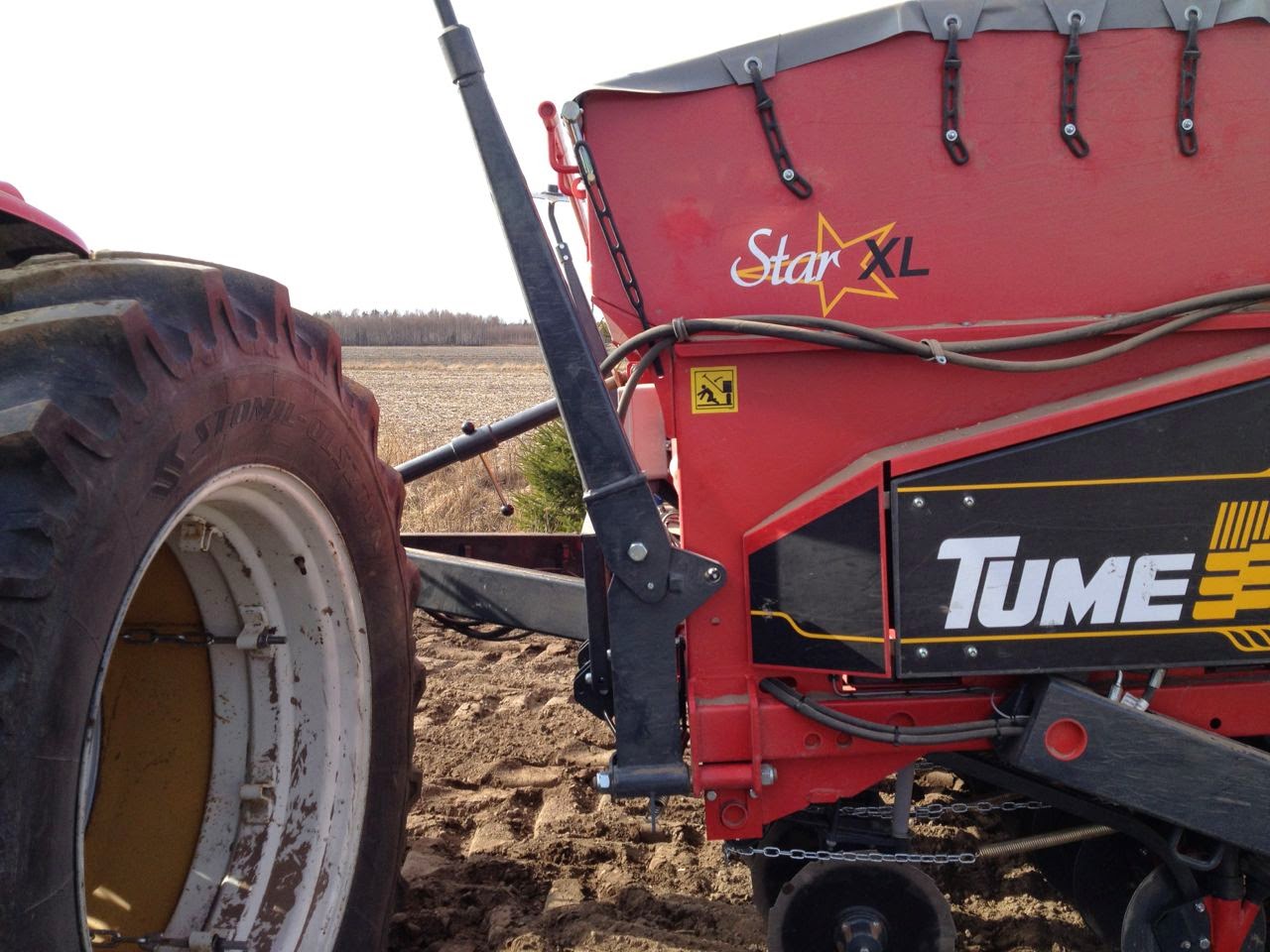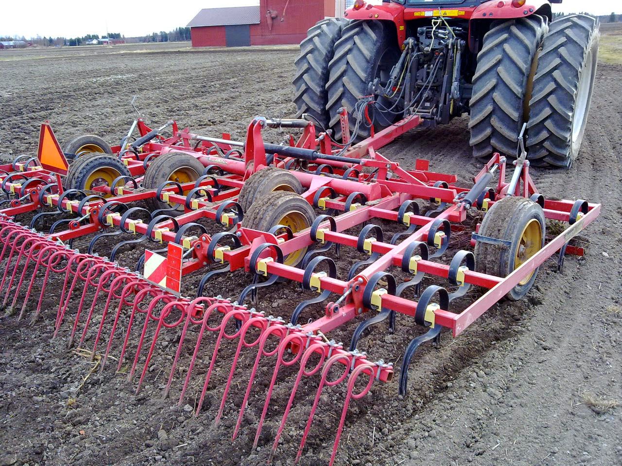 Su nueva sembrador es la Tume JC Star XL 3000 (fabricada en Finlandia). Es básicamente muy similar a su antigua sembradora la cual ha estado trabajando sin problemas durante los últimos 17 años. Esta tiene una tolva para semilla y otra para abono (el cual es puesto a unos 2-3cm por debajo de la semilla). Además tiene otra pequeña tolva para abono que es puesto al mismo nivel que la semilla. La capacidad total de la tolva es de 3.700 litros y esta se puede configurar para semilla y abono según las cantidades que se utilicen. La sembradora está diseñada para sembrar tanto en laboreo tradicional como en mínimo laboreo. Como el verano allí es muy corto (el tiempo para que se desarrolle el cultivo es de unos 3-4 meses) el mejor método de siembra es poner el abono debajo de la semilla. La pequeña cantidad de abono que se pone al mismo nivel es para ayudar a la planta a nacer (esto no es muy obligatorio). Muchos agricultores de su zona, tampoco hacen esta técnica de sembrado, pero a él le da muy buenos resultados.