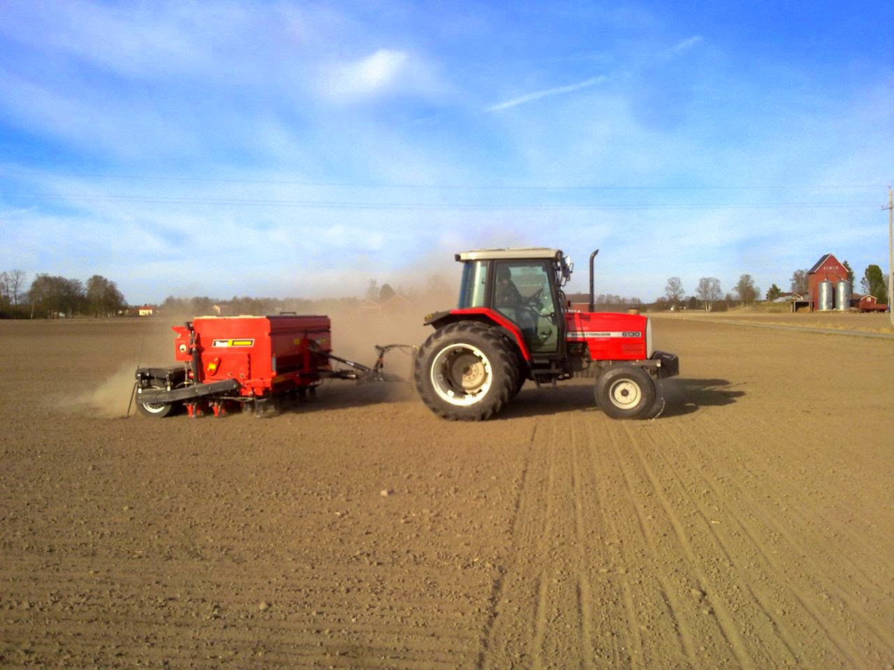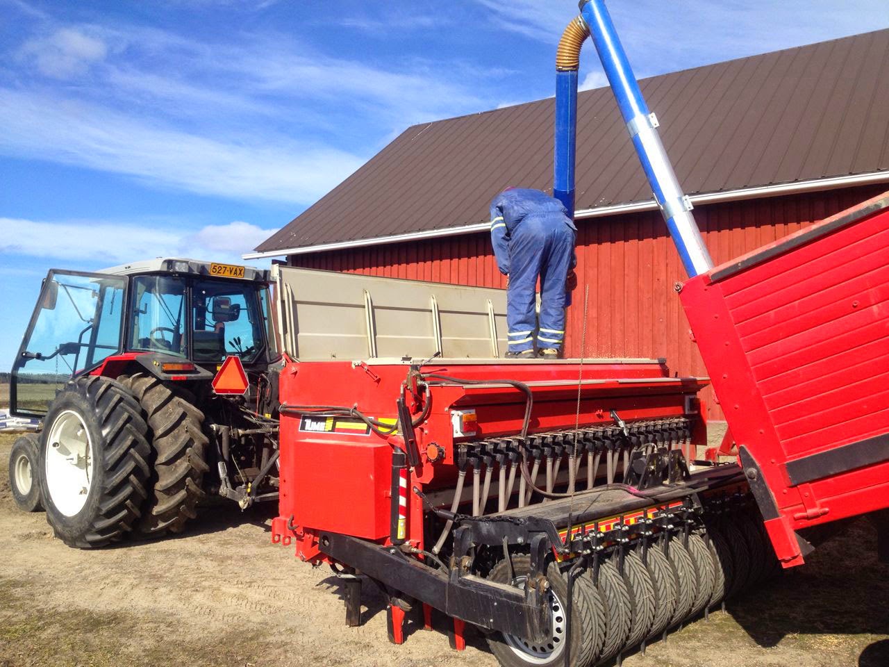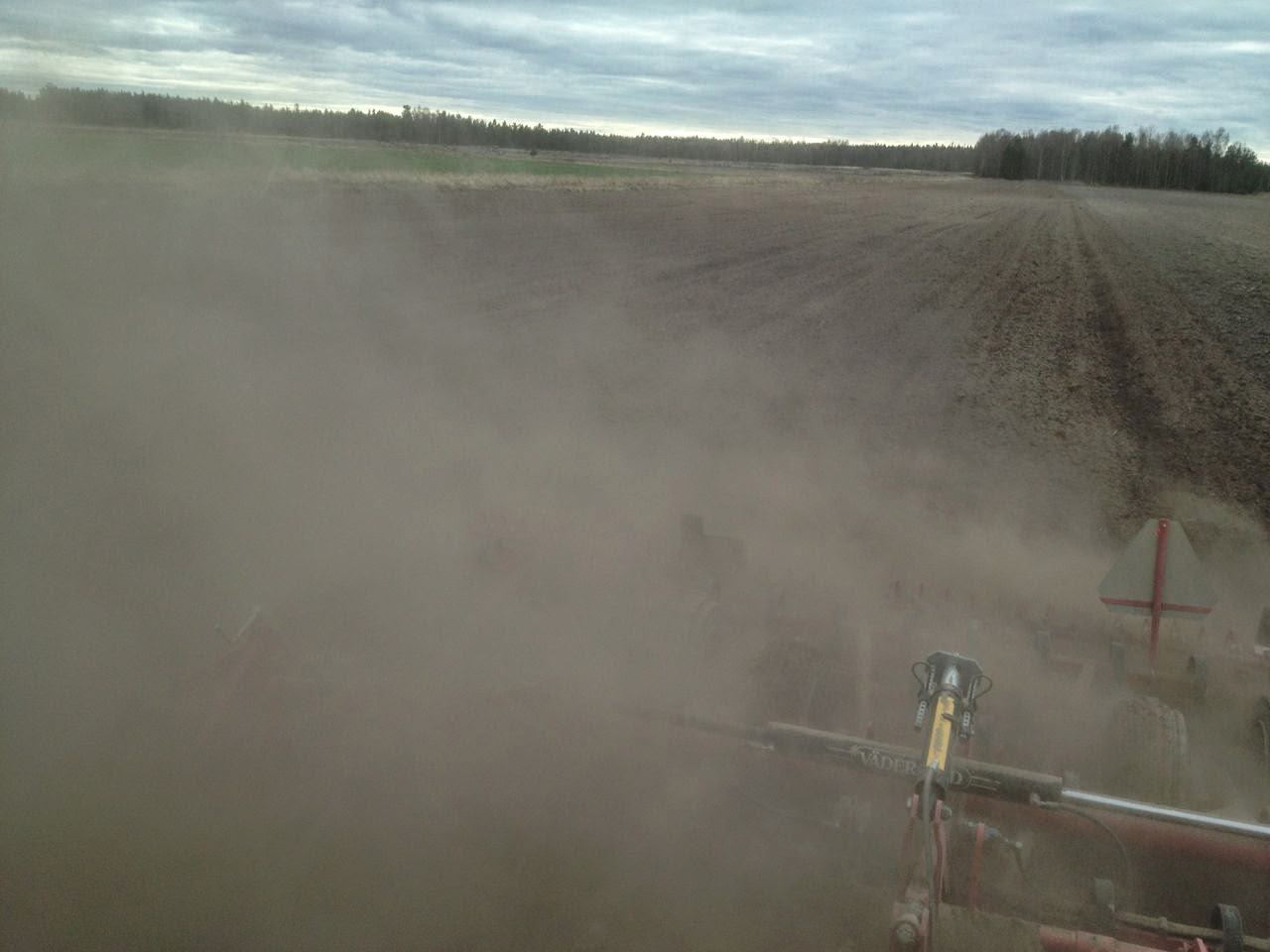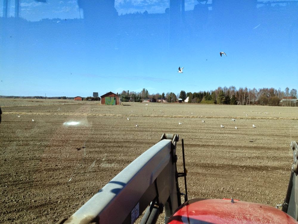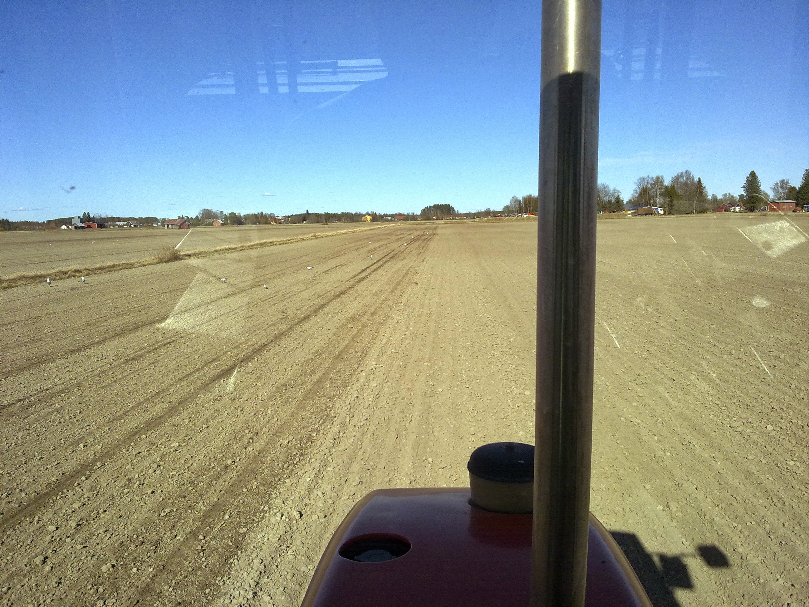 Nuestro gran amigo Timo (de Laihia – Finlandia) terminó de sembrar este año el 1 de mayo (ha sembrado cebada y avena). Normalmente el puede comenzar a primeros de mayo, pero la cebada es sensible a los hielos aún en Mayo, por lo que es un riesgo el sembrar tan pronto. Esta primavera, los campos están muy secos (no es normal allí) y el polvo es un problema… algo que no es normal, ya que el mayor problema en la época de siembra son las lluvias.