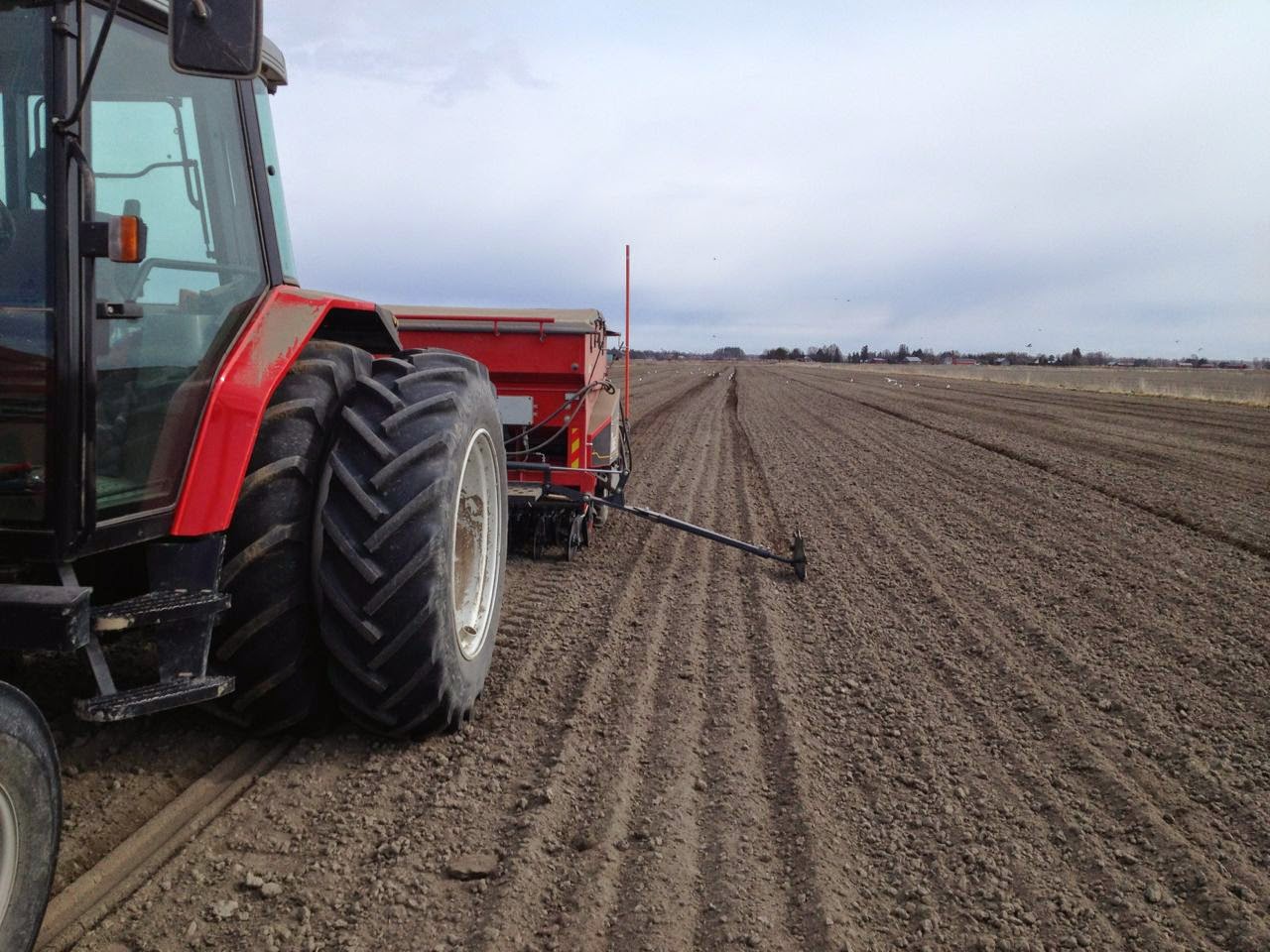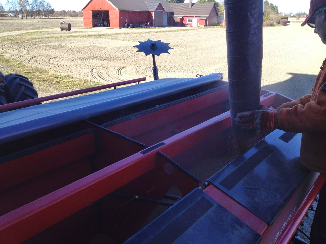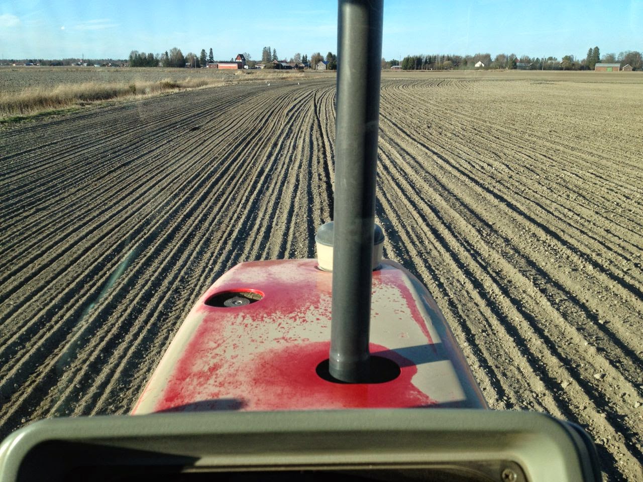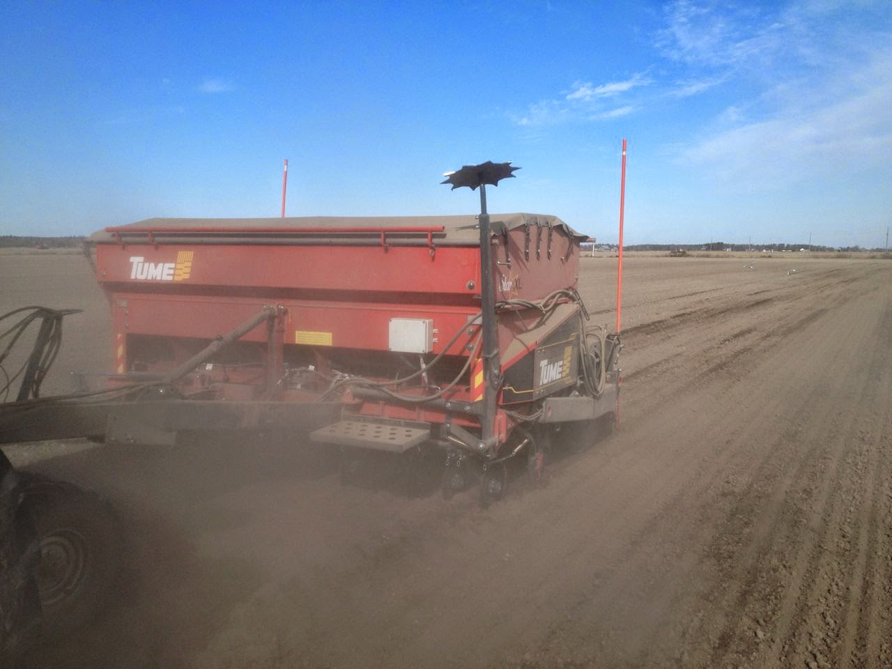 Nuestro gran amigo Timo (de Laihia – Finlandia) terminó de sembrar este año el 1 de mayo (ha sembrado cebada y avena). Normalmente el puede comenzar a primeros de mayo, pero la cebada es sensible a los hielos aún en Mayo, por lo que es un riesgo el sembrar tan pronto. Esta primavera, los campos están muy secos (no es normal allí) y el polvo es un problema… algo que no es normal, ya que el mayor problema en la época de siembra son las lluvias.