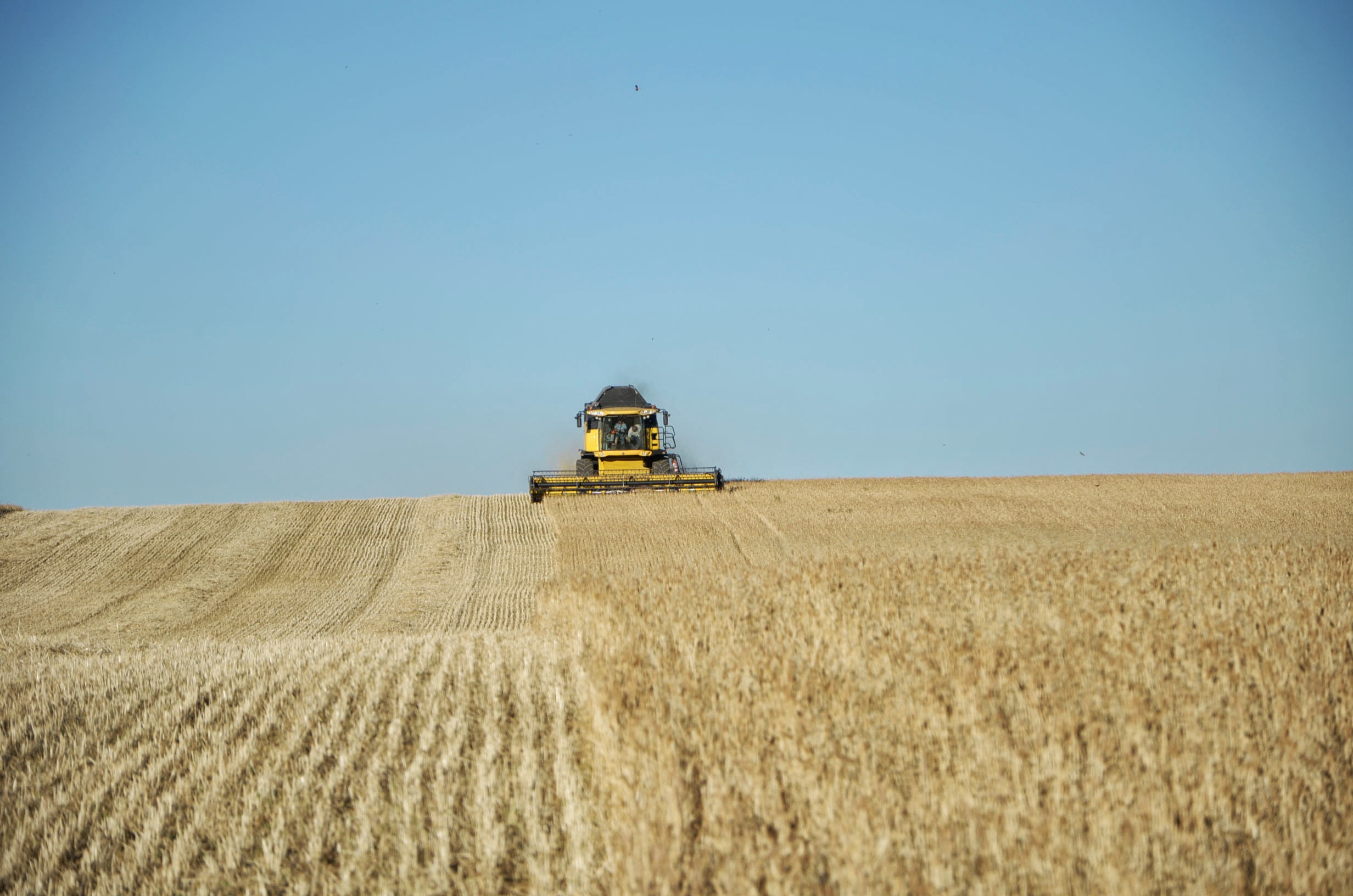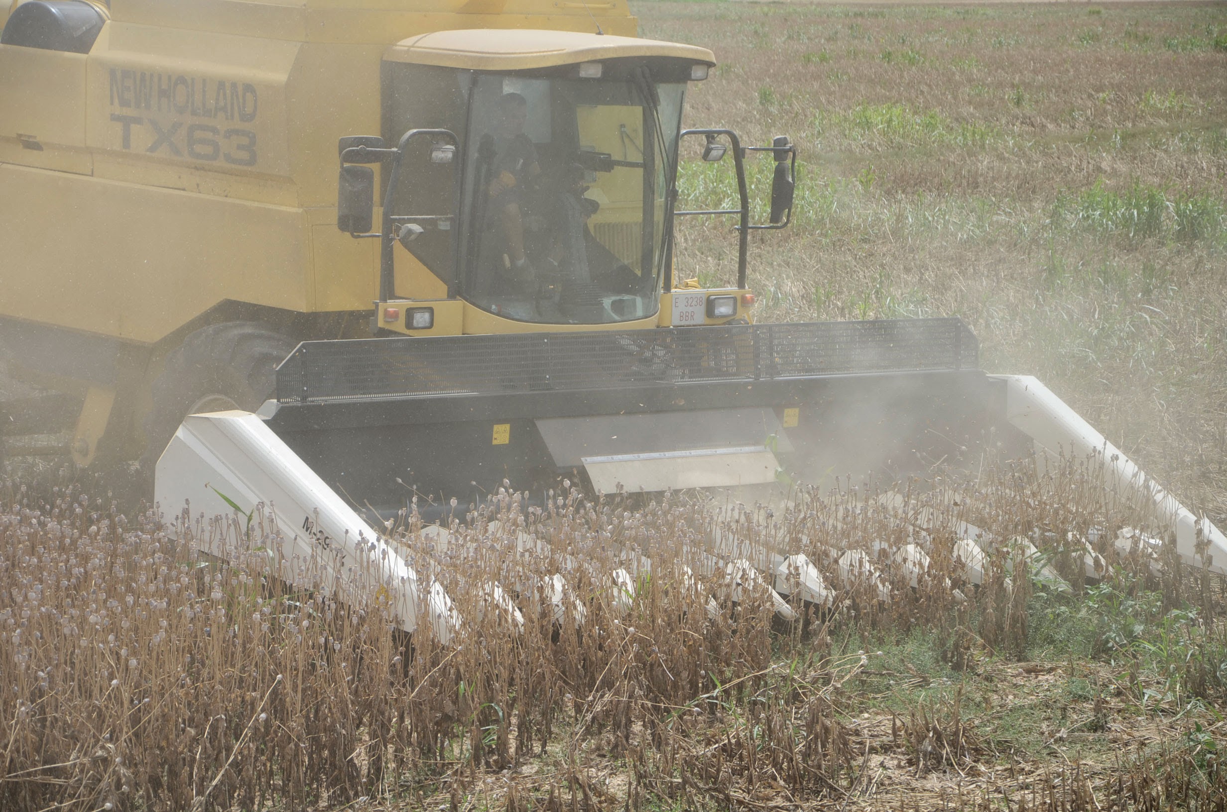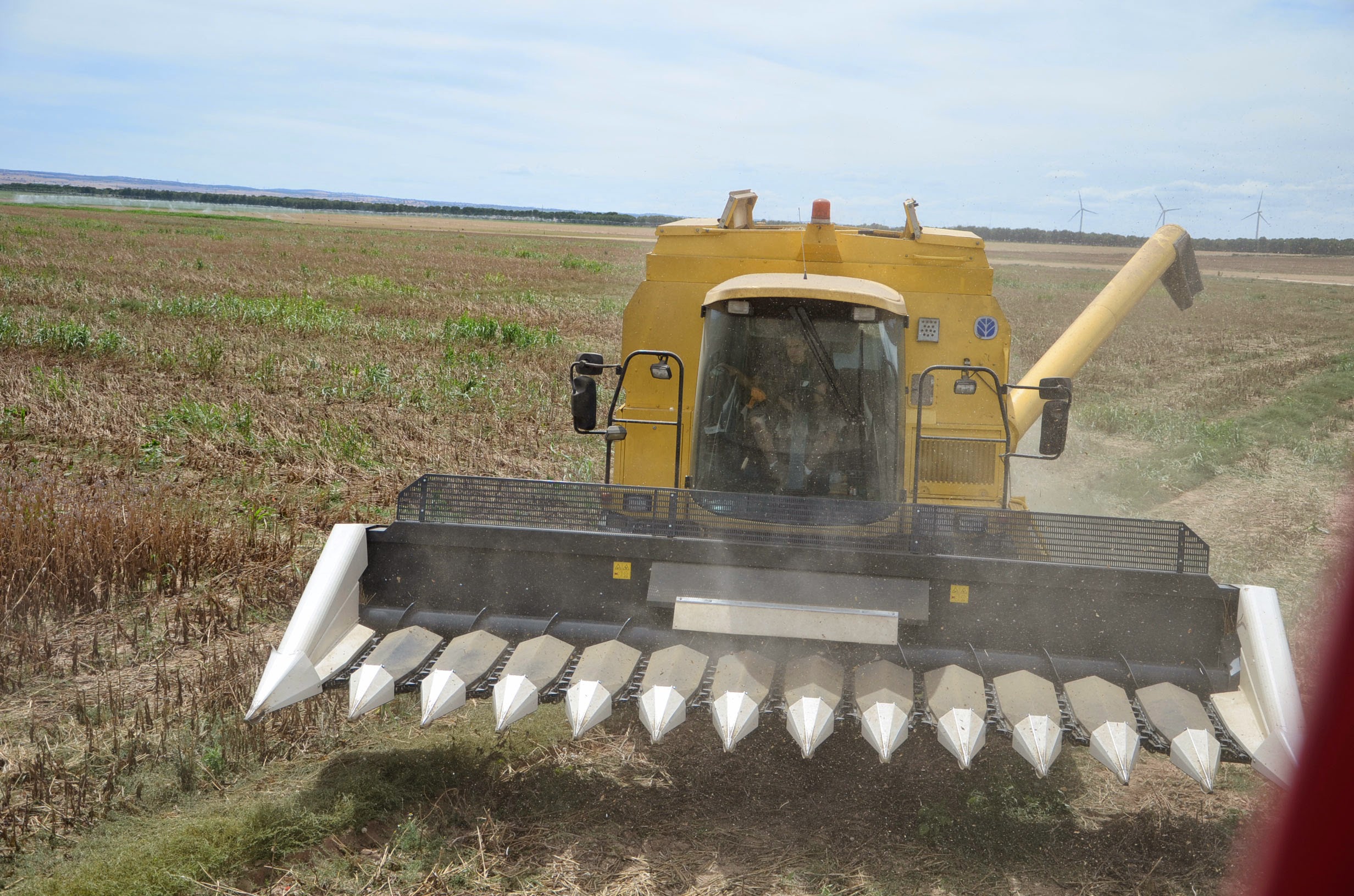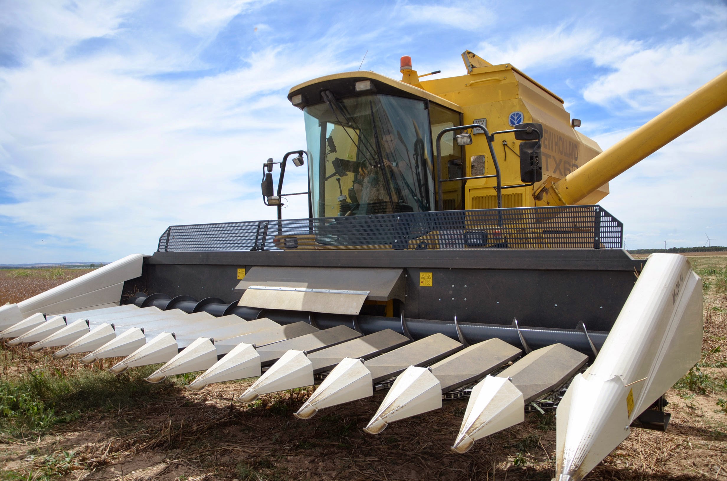 Una cosechadora CR10.90 con el cabezal de corte 840CD de 13,7 metros