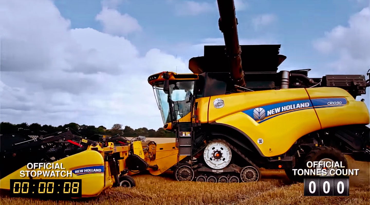 Hace unas semanas, encontramos navegando por YouTube, el vídeo que podéis ver a continuación … la noticia nos resultó muy interesante. New Holland vuelve a recuperar el récord Guinness™ al cosechar casi 800 toneladas de trigo en ocho horas usando la cosechadora CR10.90 y cinco tractores T7 cada uno con un remolque de 14 toneladas, superando la marca anterior en más de 120 toneladas. Este récord demuestra la capacidad y productividad de la cosechadora CR10.90, en especial porque el récord anterior de 675,84 toneladas que fue superado en apenas seis horas y 36 minutos.