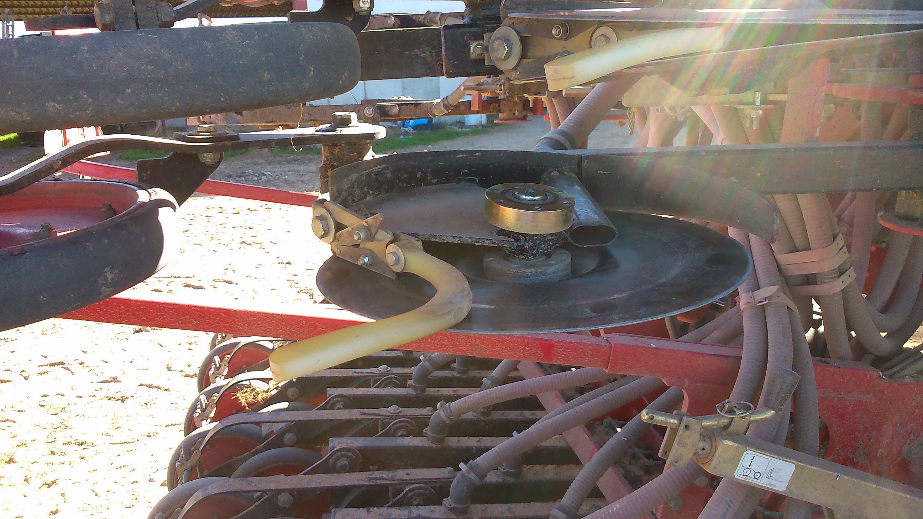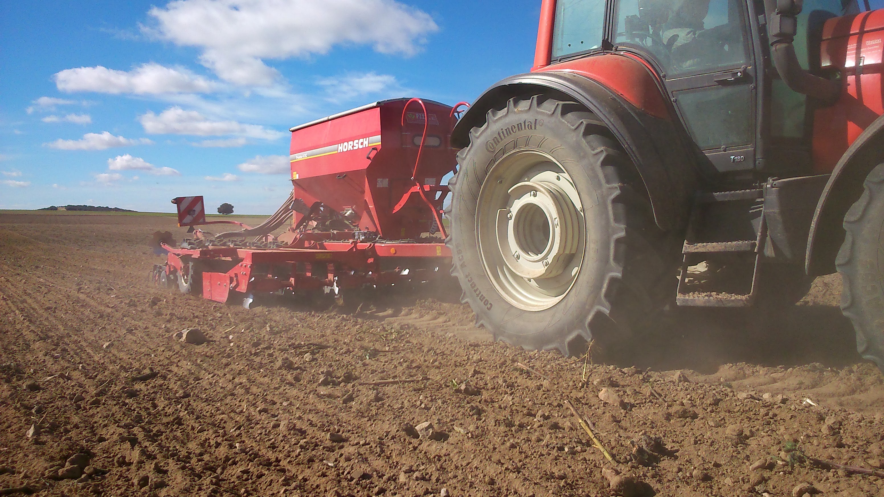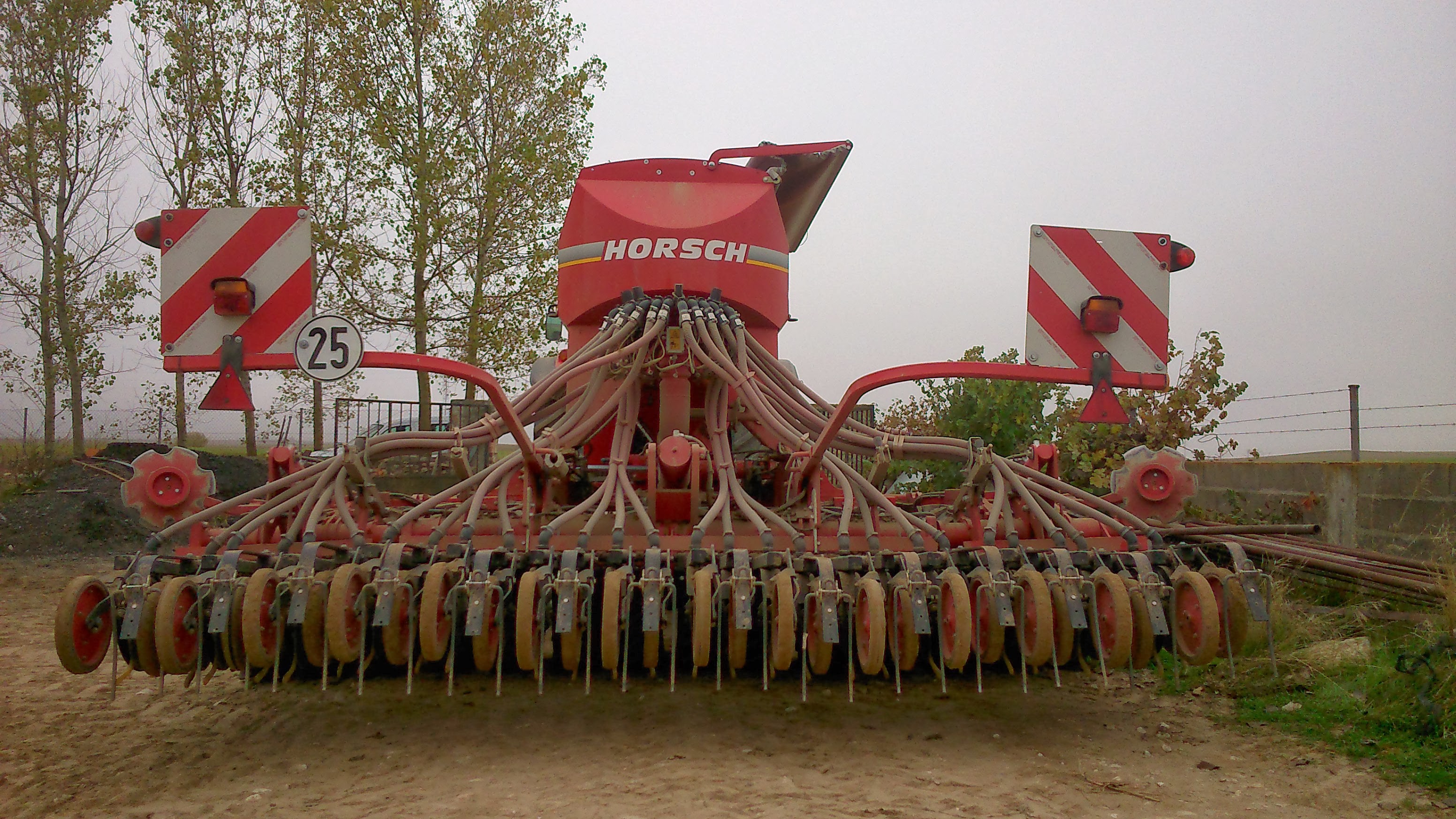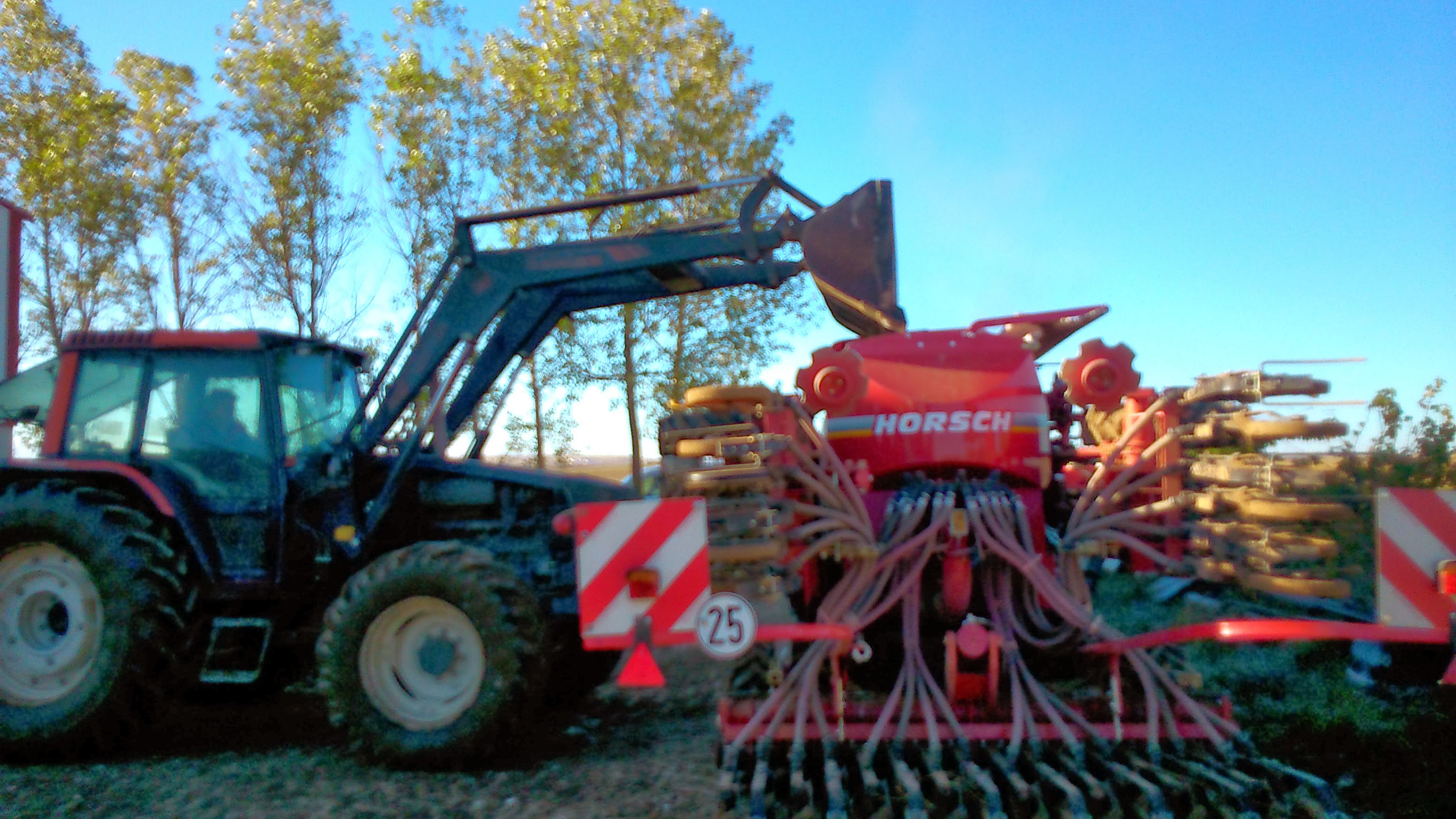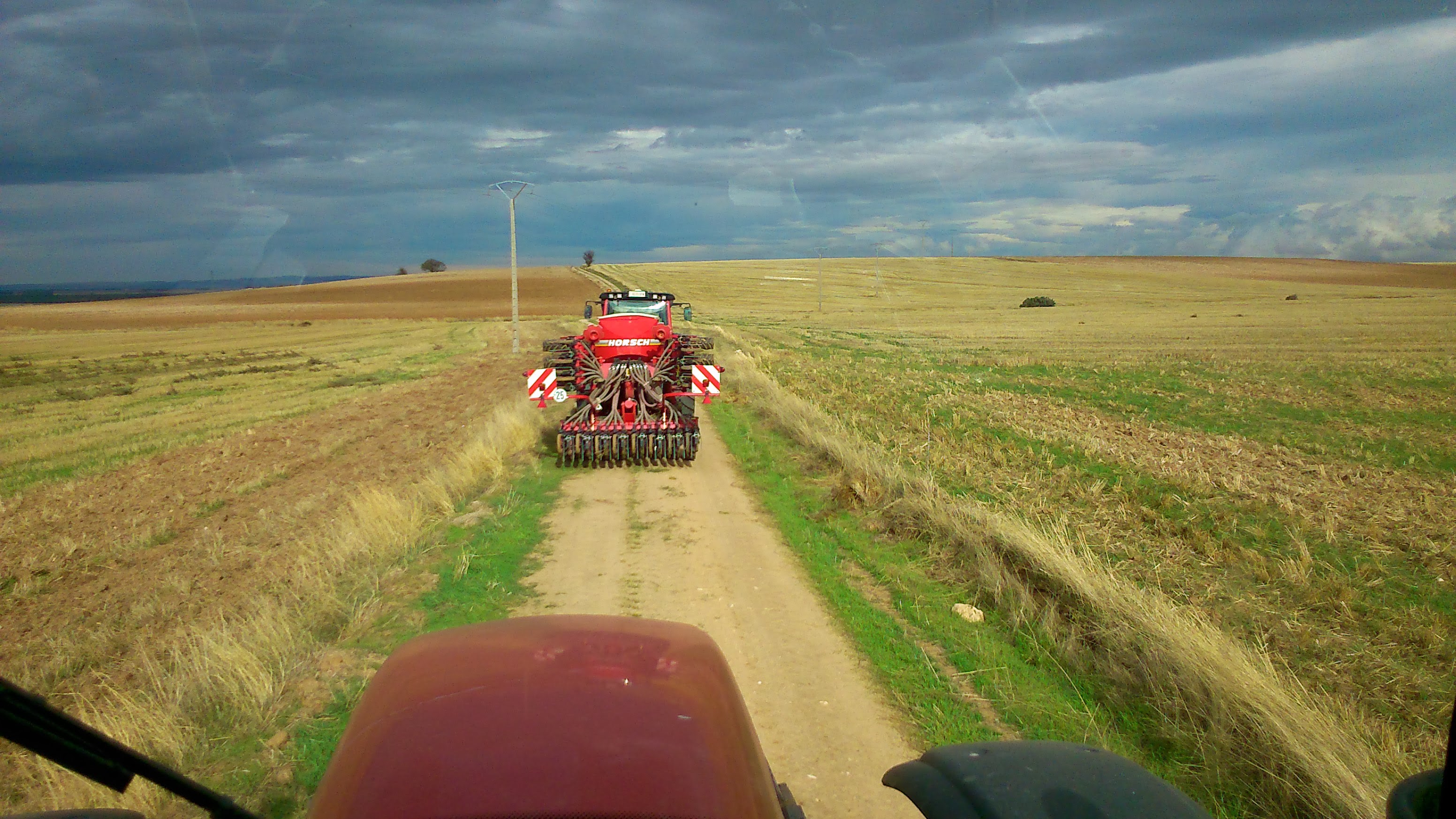 Esta semana, nuestro amigo Alberto nos vuelve a enviar fotos. Esta vez el objetivo principal es hablar de sus tareas de sementera. Está estrenando su nueva sembradora, una Horsch Pronto DC 4. Es una máquina ideal para el mínimo laboreo, por lo que según nos comenta este año ha podido sembrar en rastrojo de girasol sin problemas (con la sembradora Solá que tenía, la cual nos vendió a nosotros, no era posible sembrar en este rastrojo sin antes recoger las cañas). Con la nueva, esto es posible gracias al preparador delantero que incorpora el cual está compuesto por una grada rápida de discos de 46 cm.