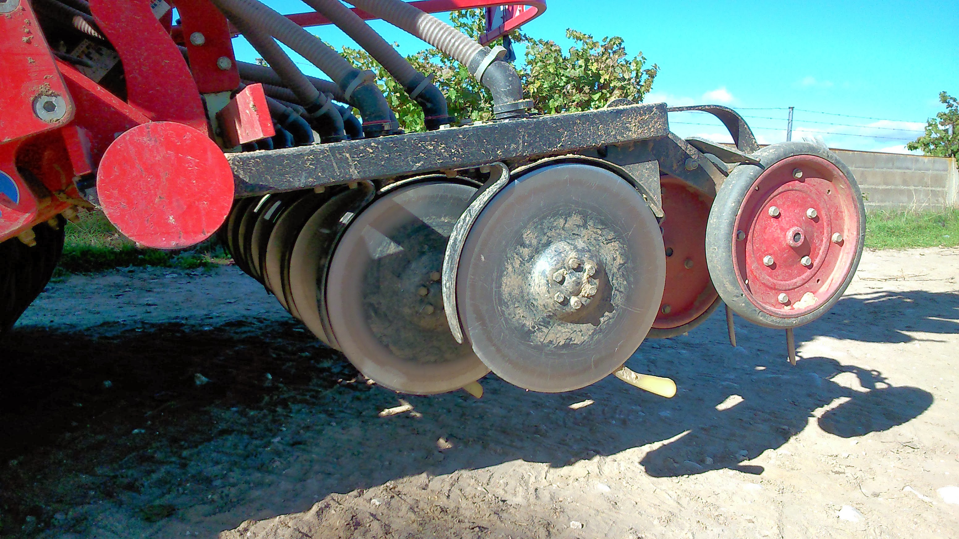 Como todas las máquinas, siempre hay algún punto débil. Esta vez son las piedras. Según nos comenta, a la sembradora le cuesta trabajar en un campo con muchas piedras.