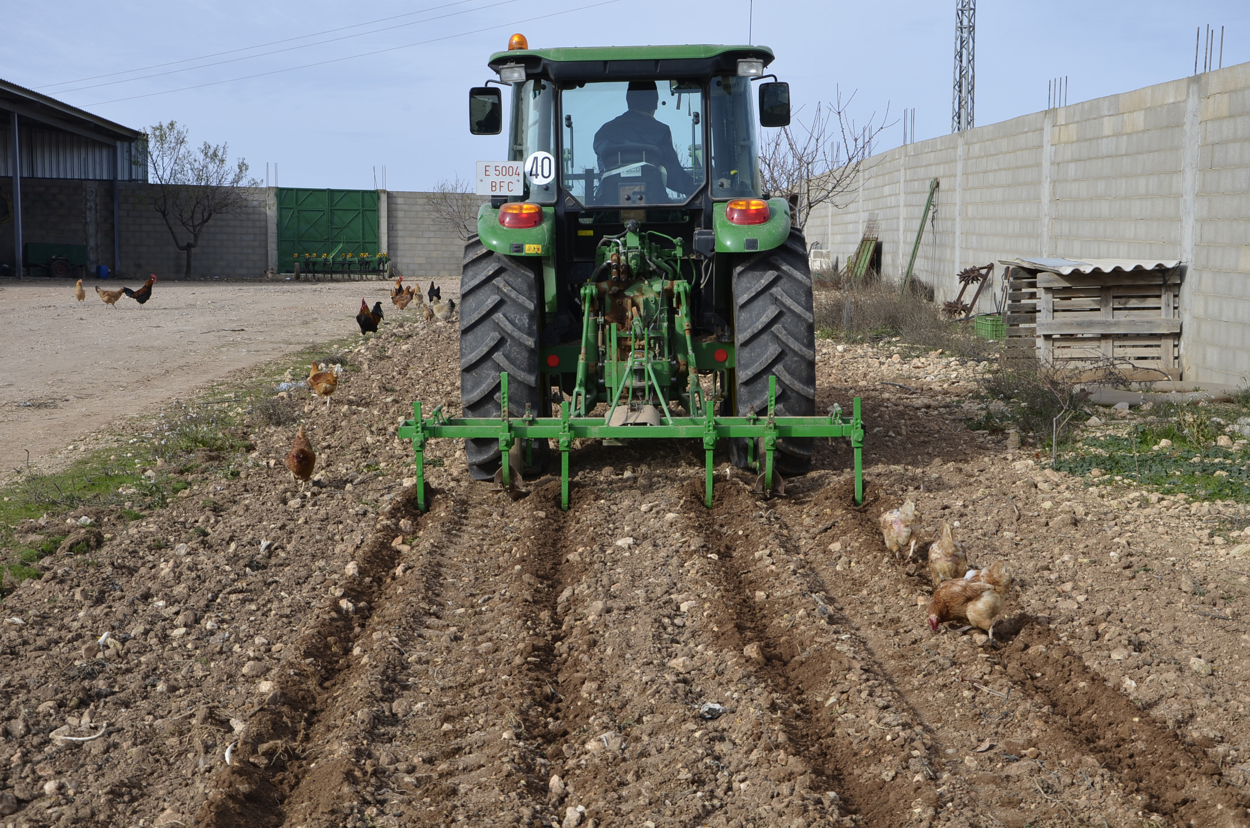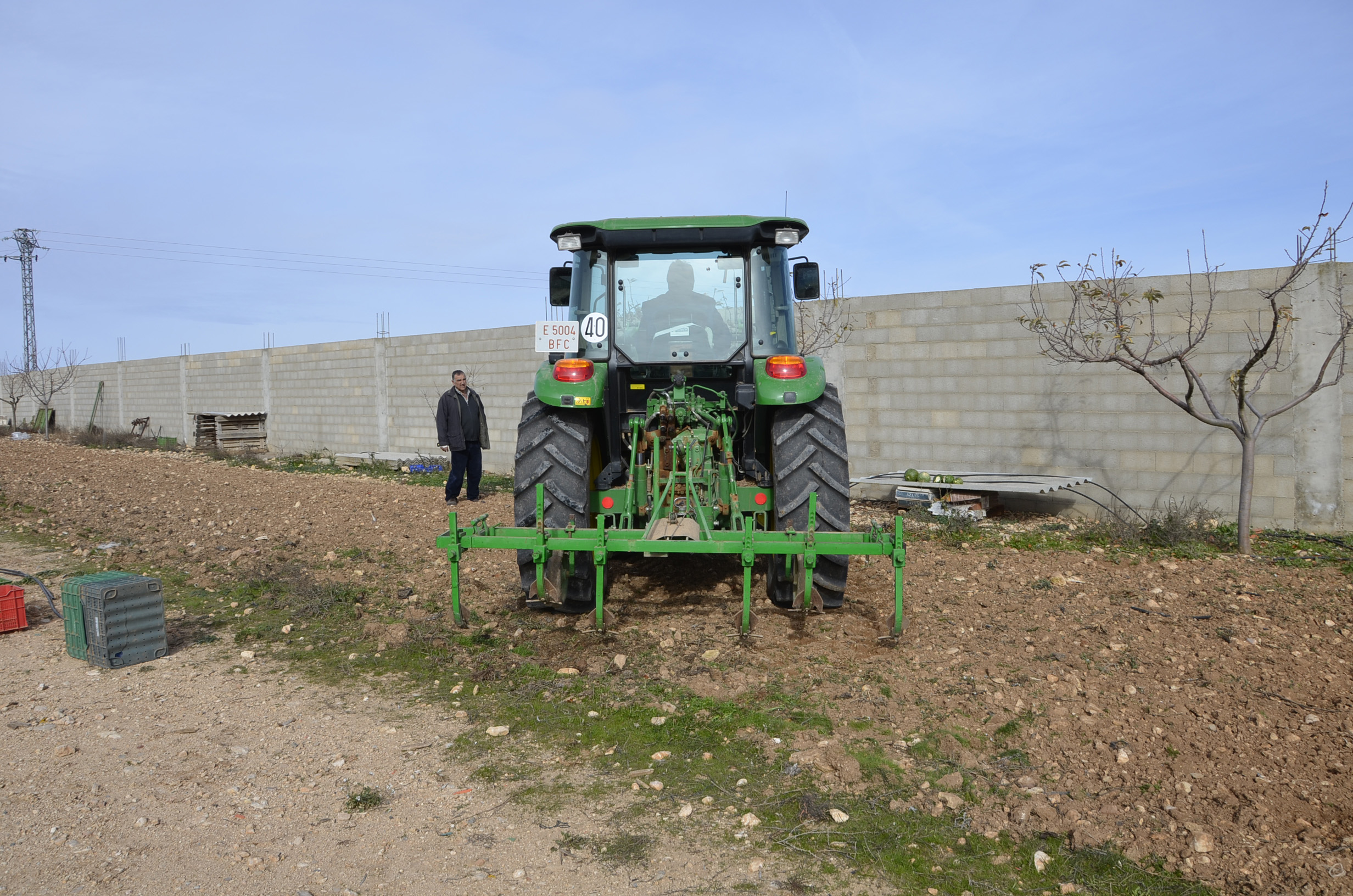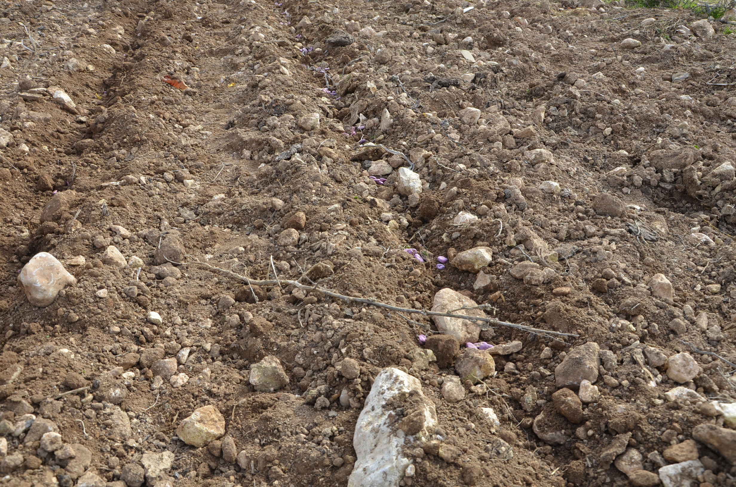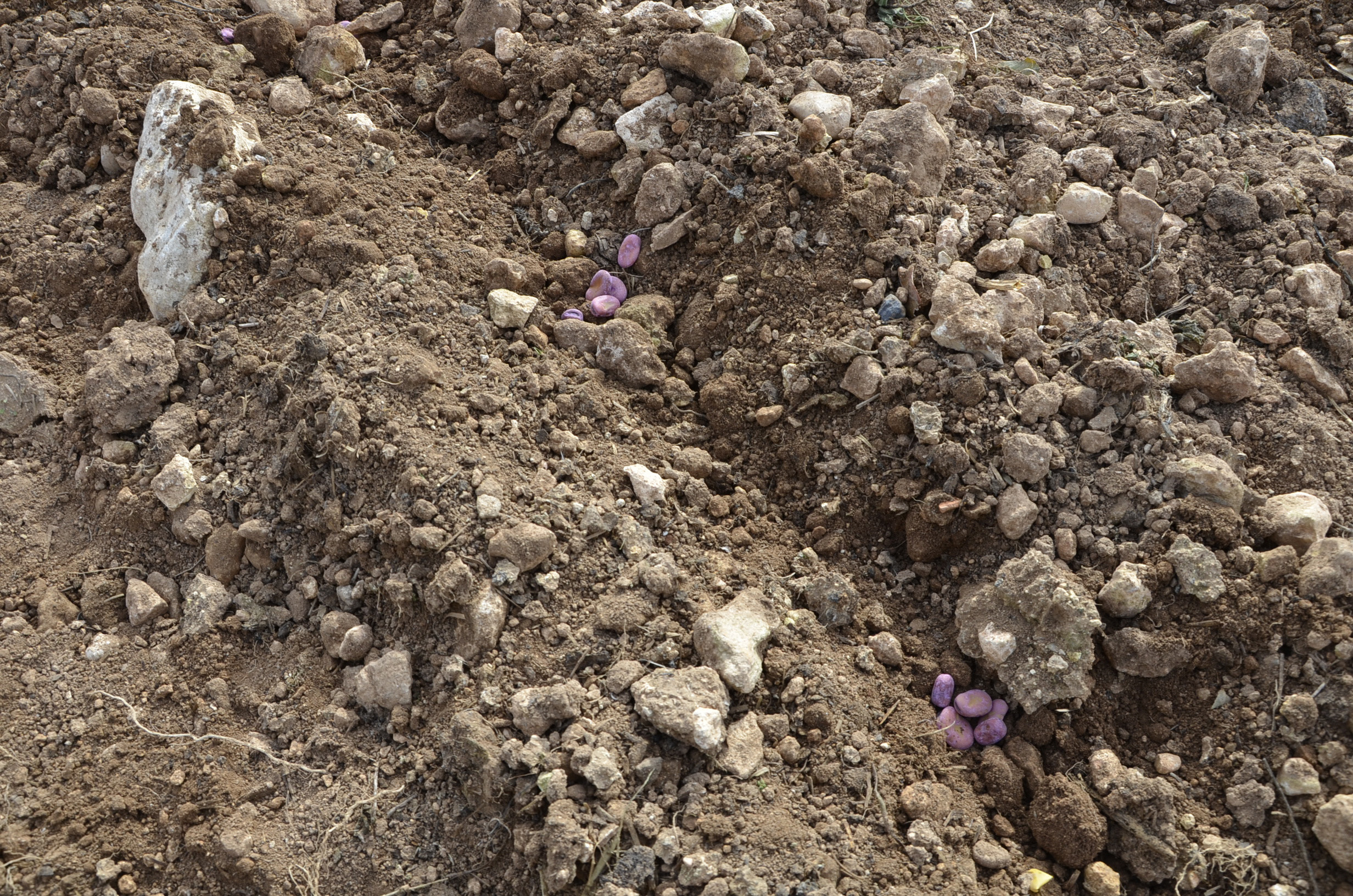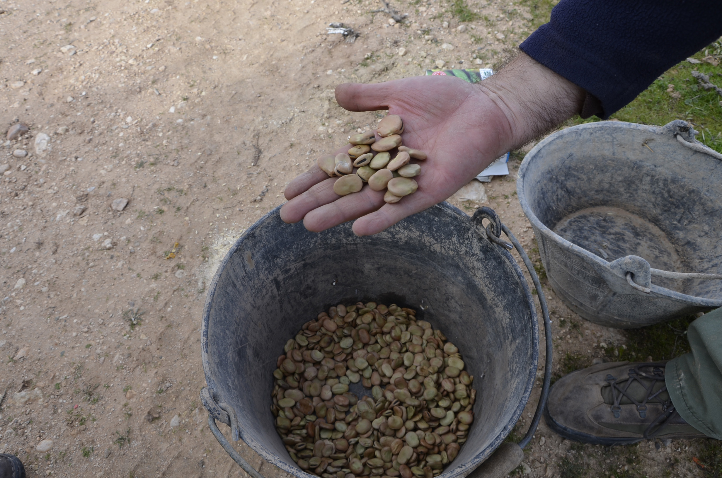 Para sembrarlas hemos utilizado los arados de los ajos. Con ellos hemos marcado los surcos y después las hemos sembrado manualmente. Como podéis ver en las fotos, las hemos echado en grupos de unas 5 habas y separados entre ellos unos 15 cm.