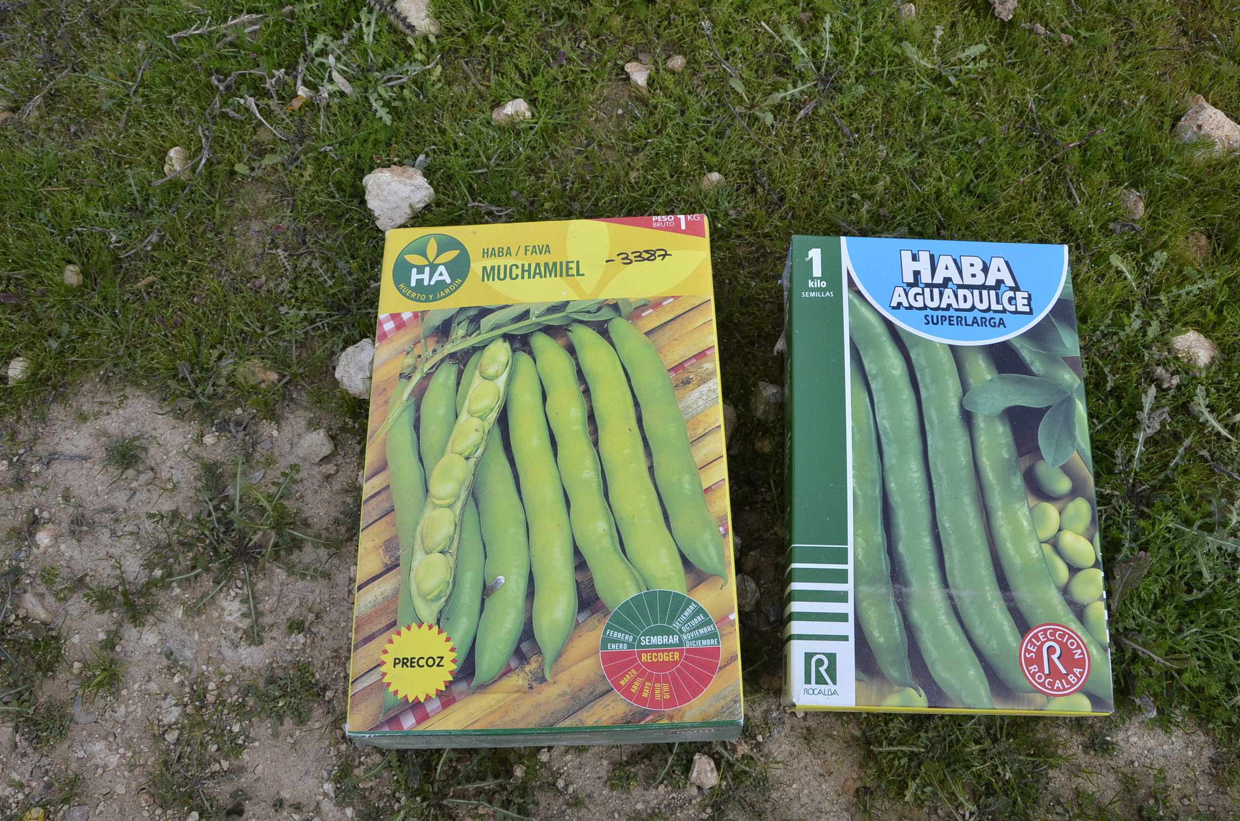 Esta vez hemos utilizado dos variedades de habas: muchamiel y superlargas. Pensamos que principalmente la gran diferencia es que las primeras tendrán las vainas con 6 habas y las otras las tendrán con unas 12.