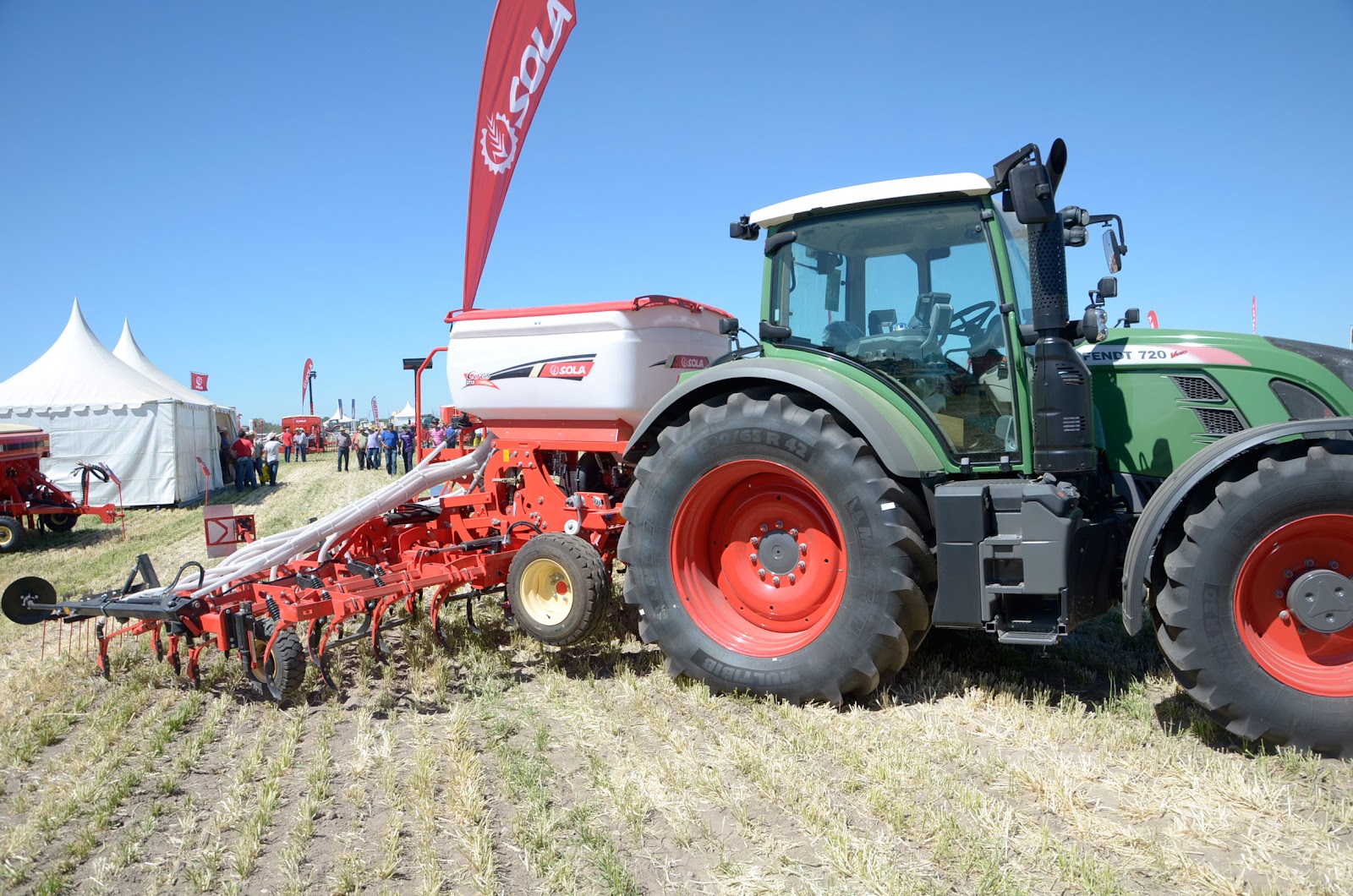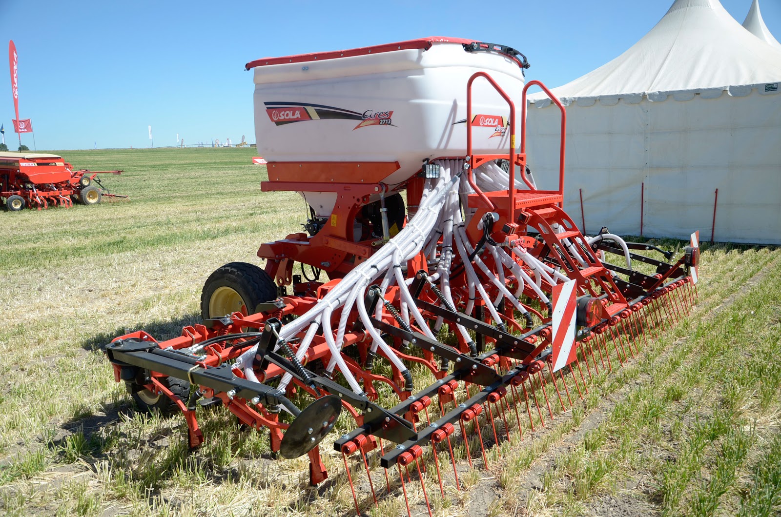 Como ya sabéis, nosotros tenemos la Neumasem 779. Es una sembradora que siempre cumple con su trabajo… Allí pudimos ver la nueva sembradora Ares 2713, que es la evolución de la Neumasem. Realmente Solá ha evolucionado con esta sembradora y el resultado ha sido magnífico… nos gustó muchísimo.